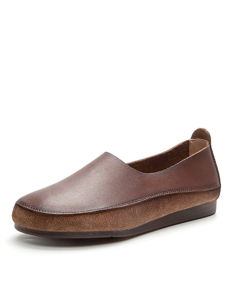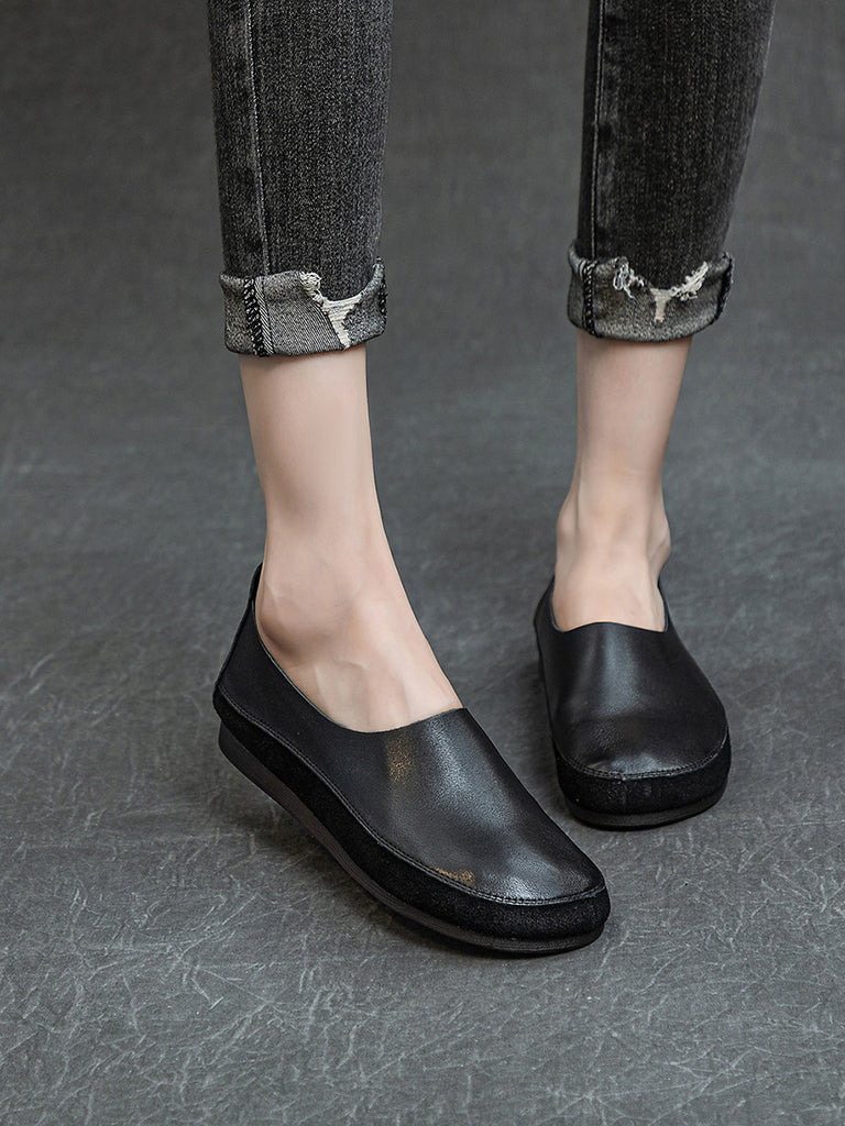女士春季復古皮革拼接平底鞋