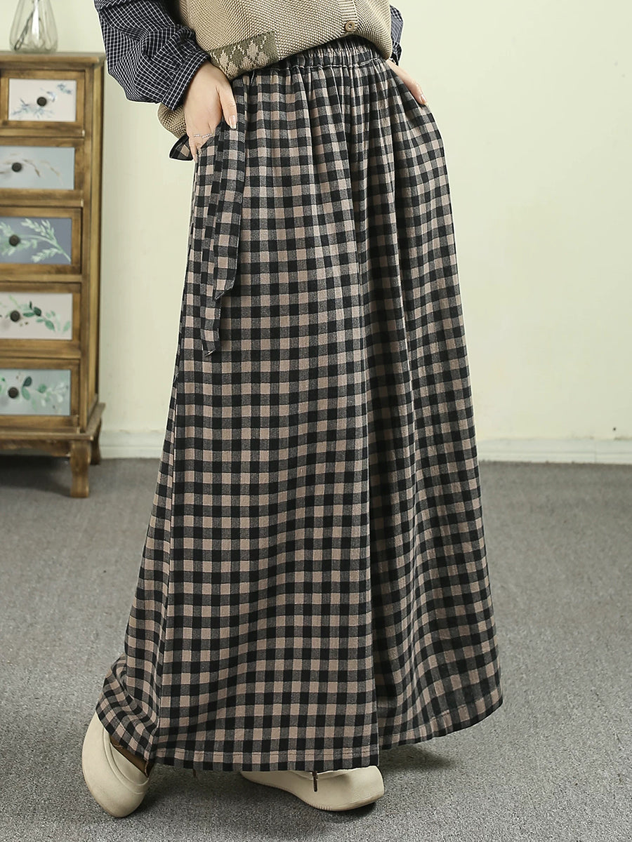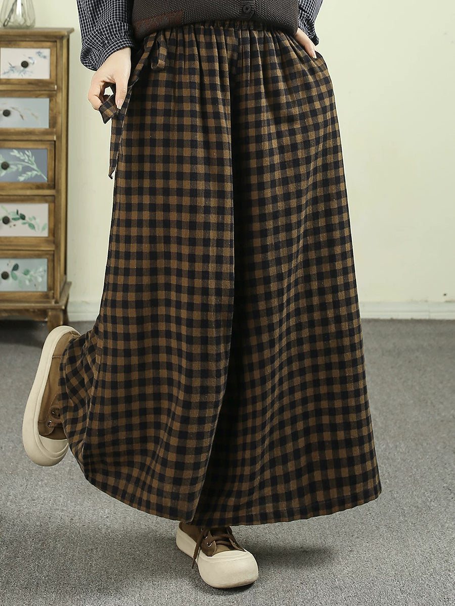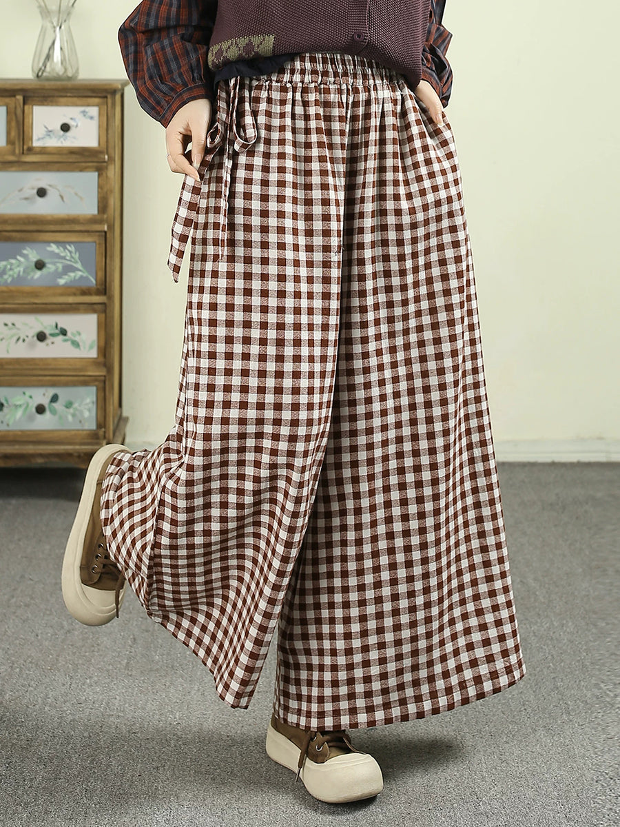 女士春季復古格紋寬褲
