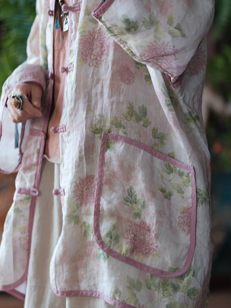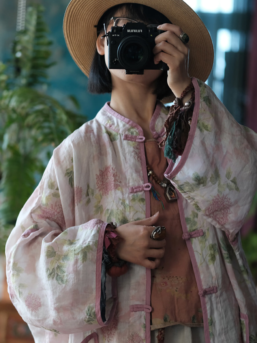 專家觀點:這款復古風格的襯衫由 100% 苧麻布料製成,具有美麗的花朵圖案。立領和全插肩袖營造出經典永恆的外觀。非常適合春季和夏季。