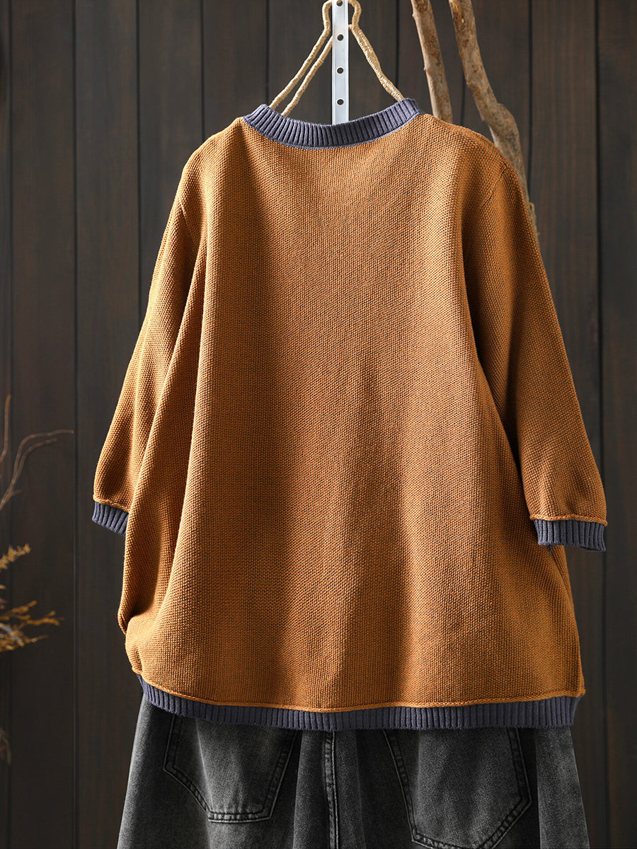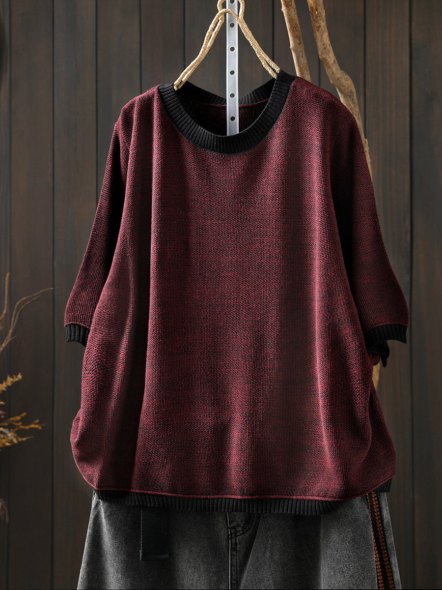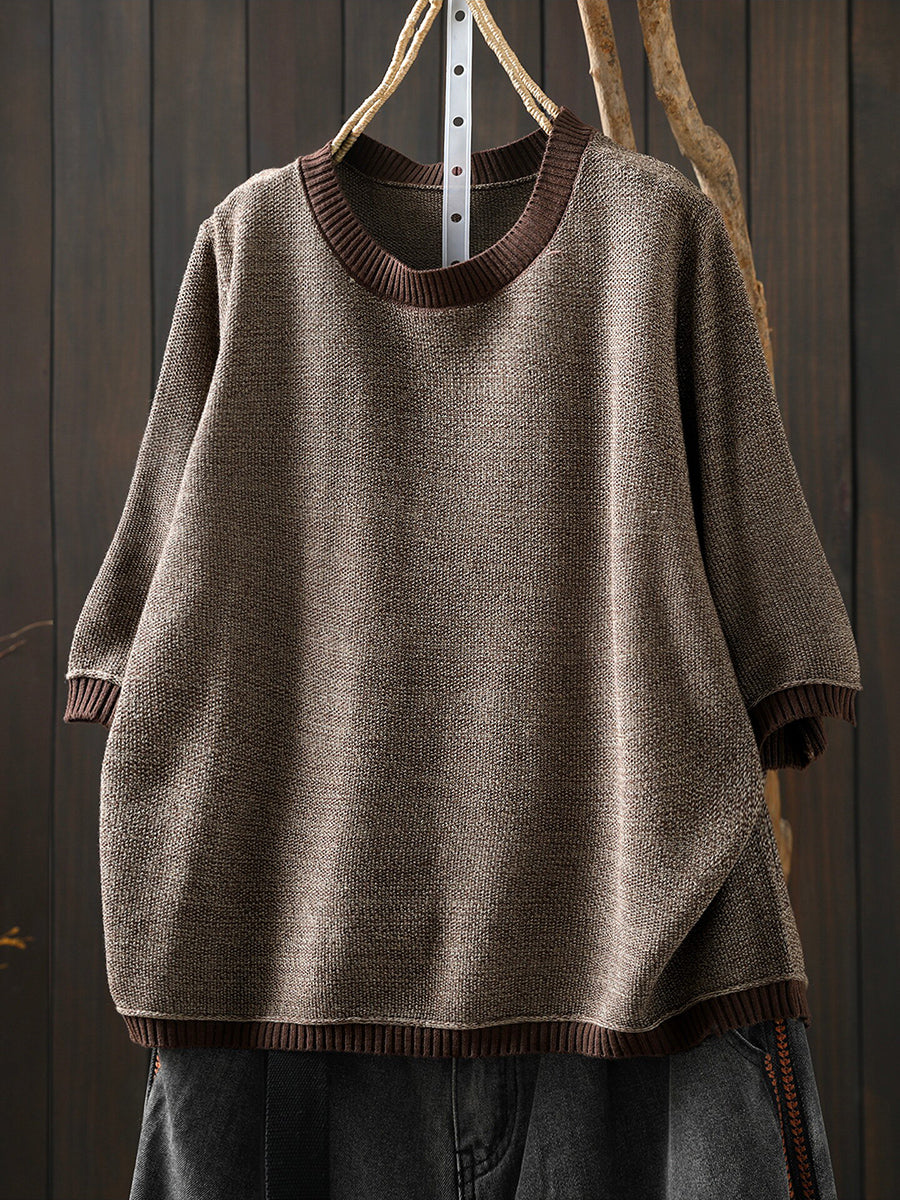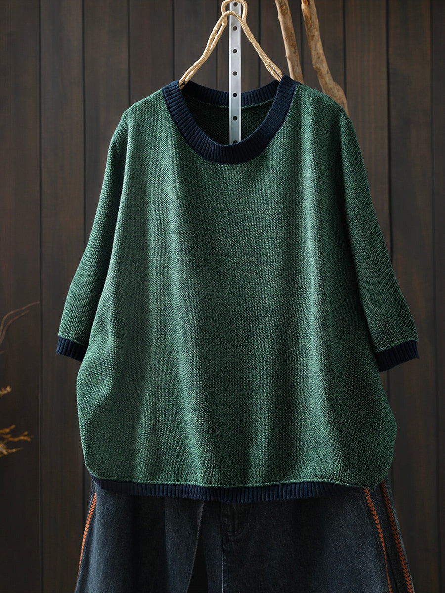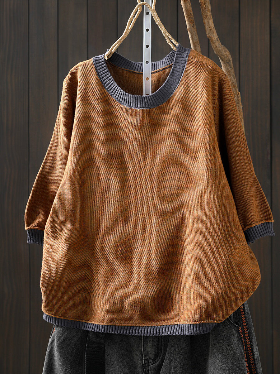 女士夏季藝術拼色棉質格紋圓領襯衫