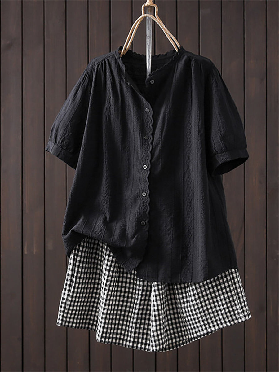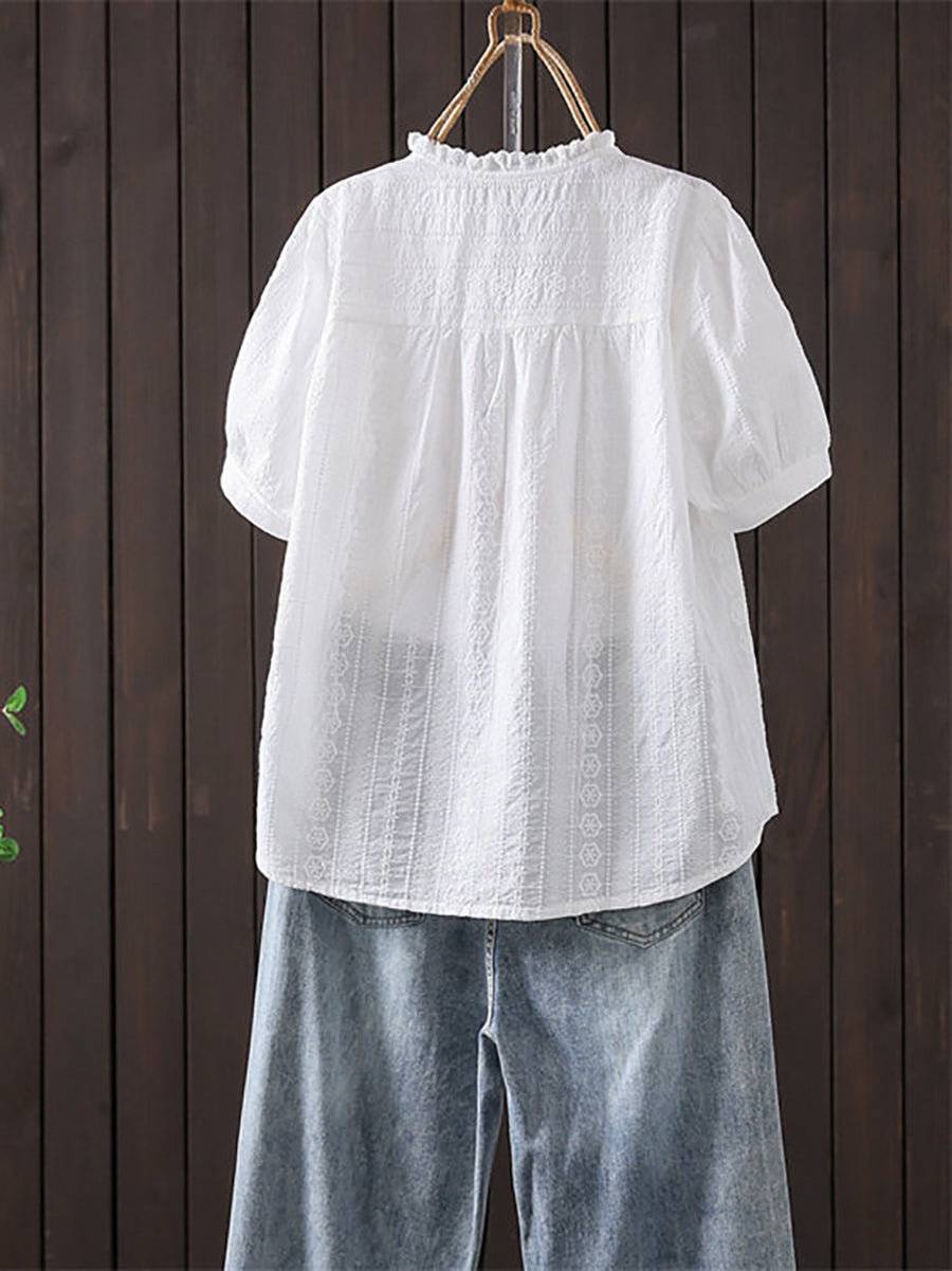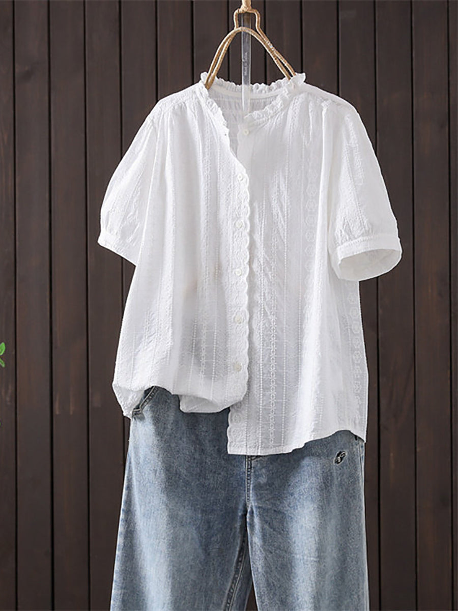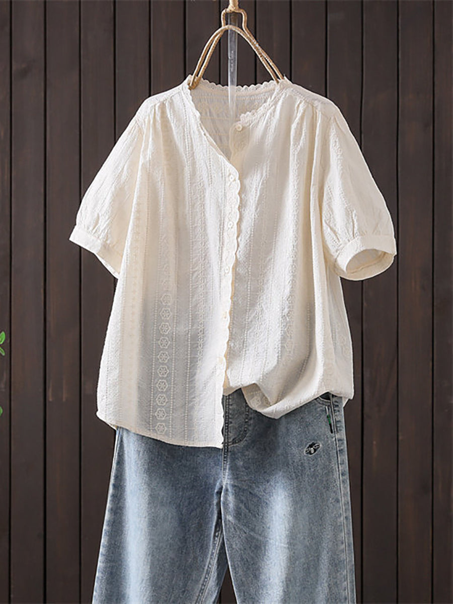 女士夏季藝術刺繡100%純棉襯衫