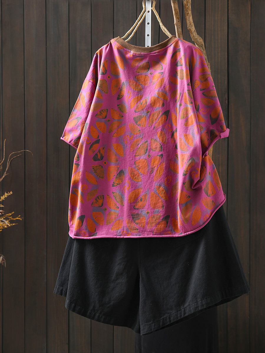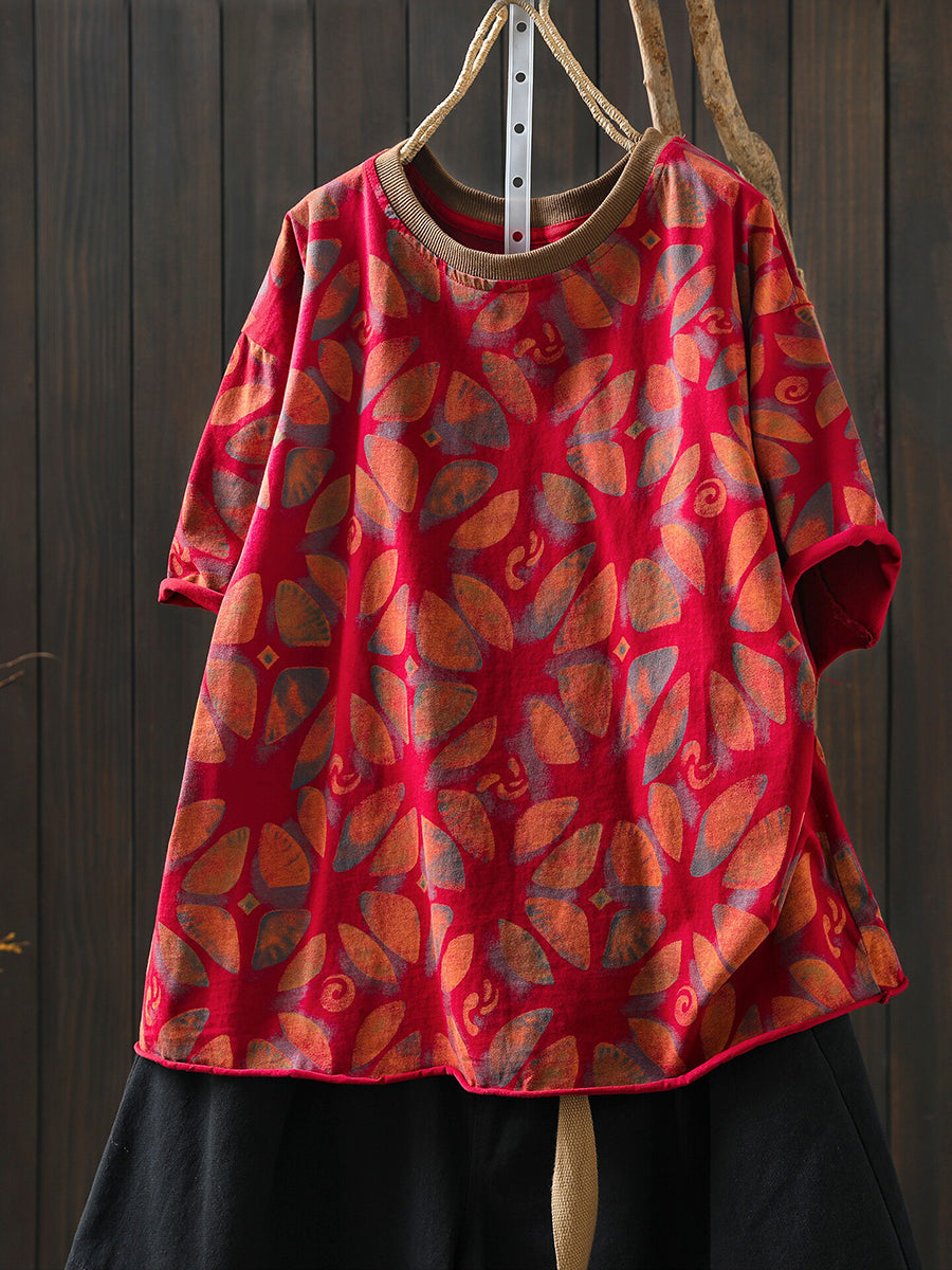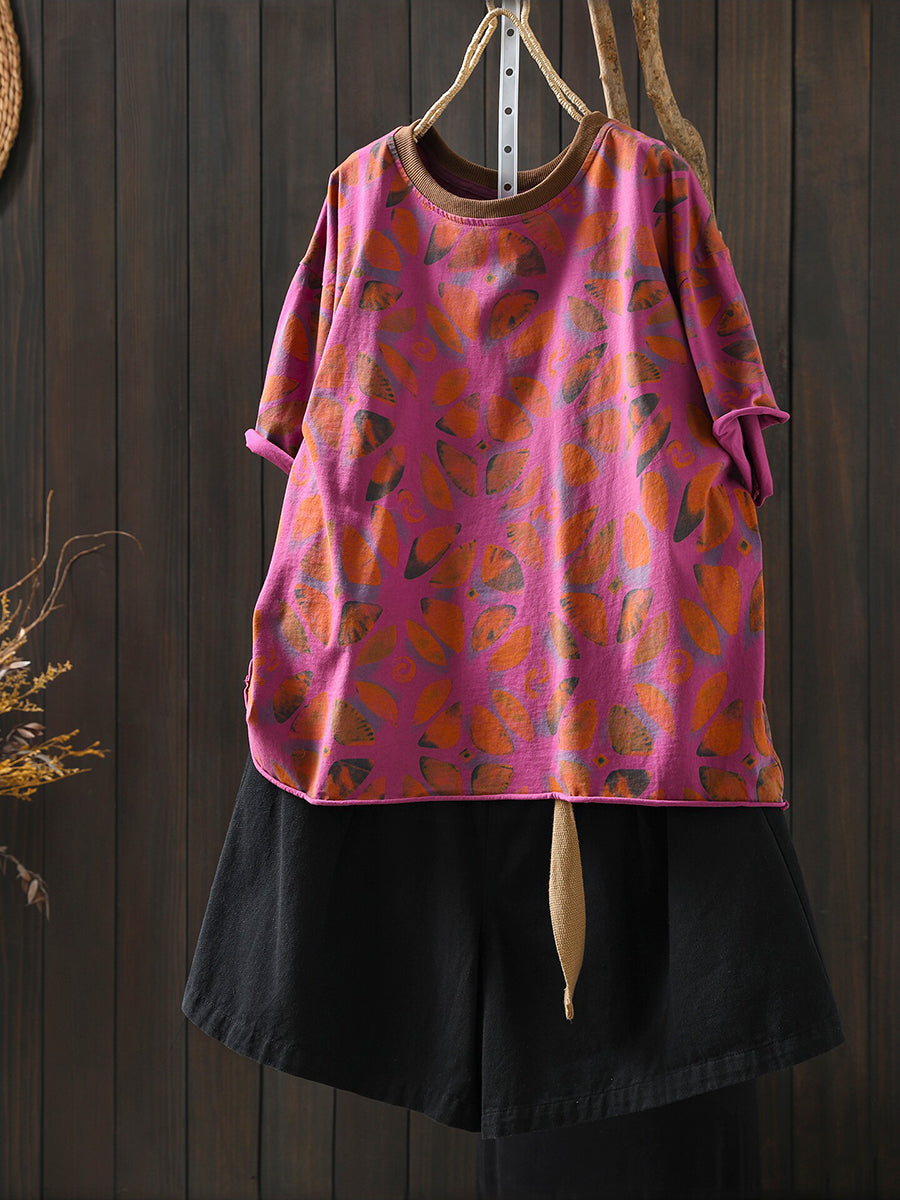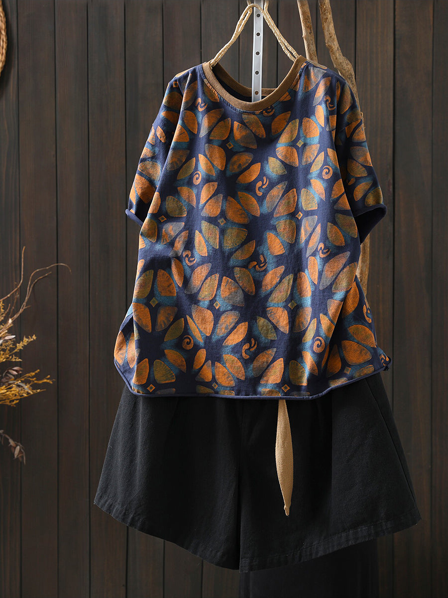 女士夏季藝術花卉棉質襯衫
