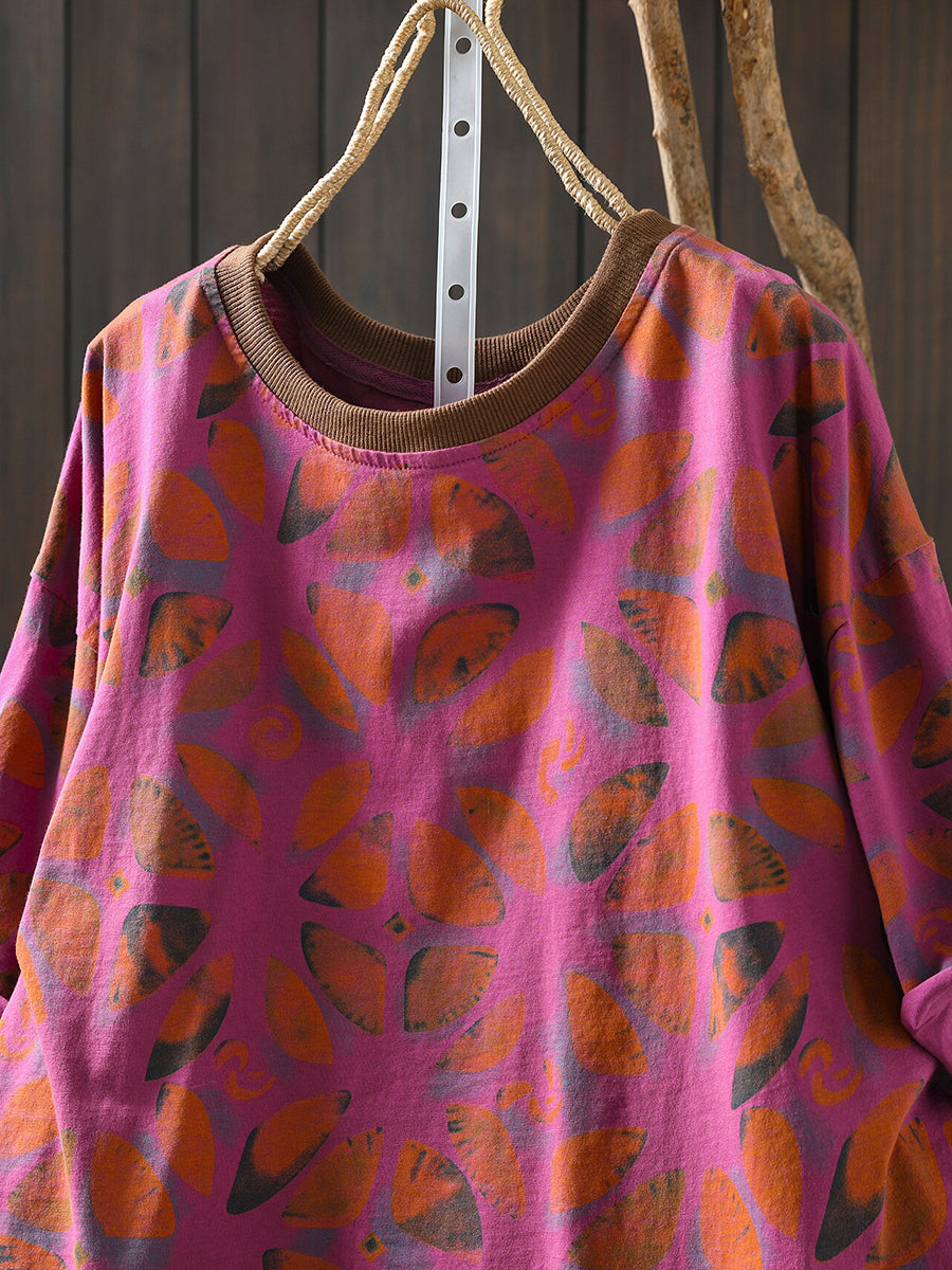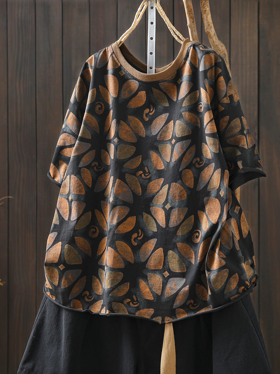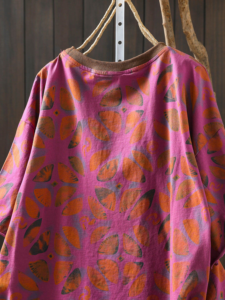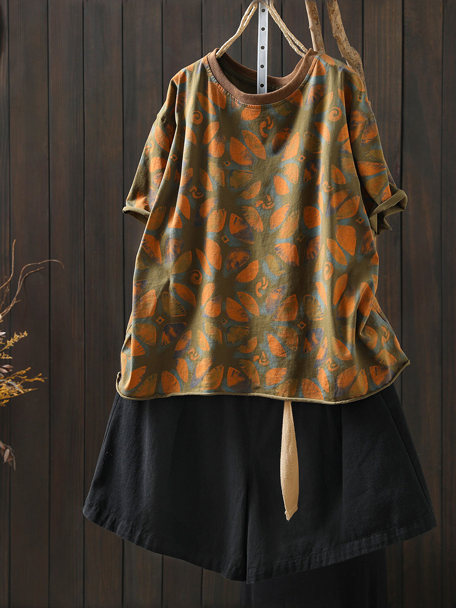女士夏季藝術花卉棉質襯衫