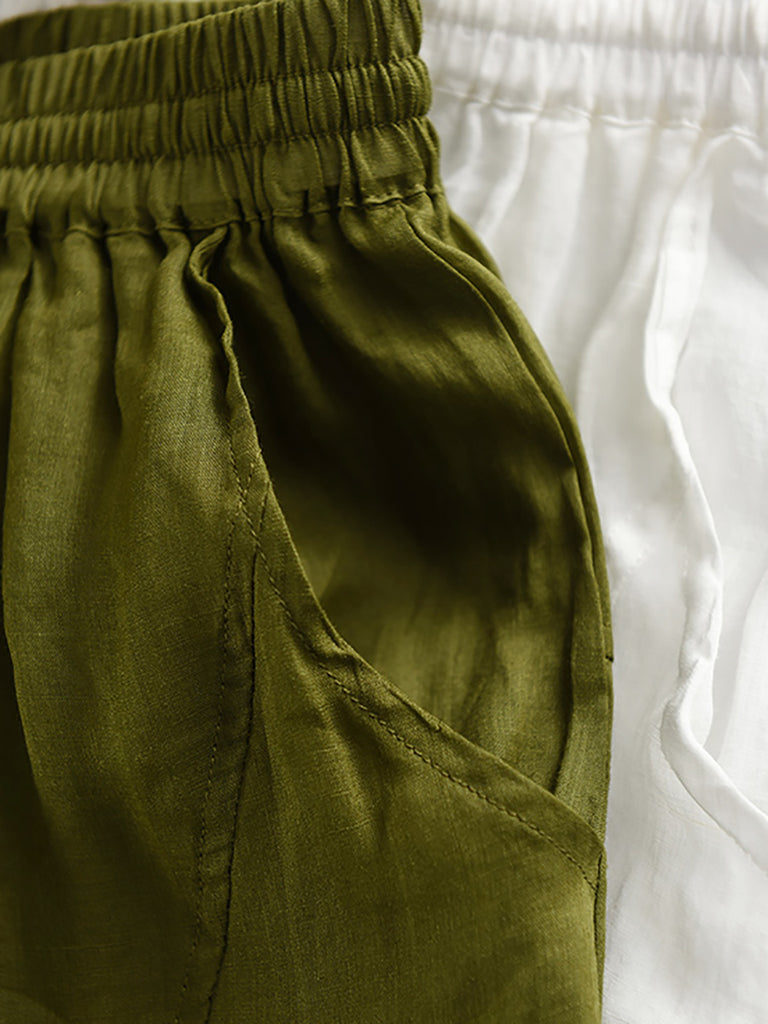 女士夏季純色藝術感100%苧麻寬鬆燈籠褲