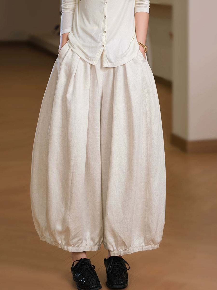 女士夏季休閒純色亞麻燈籠褲
