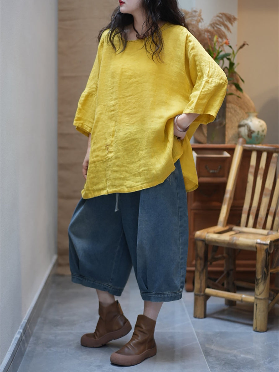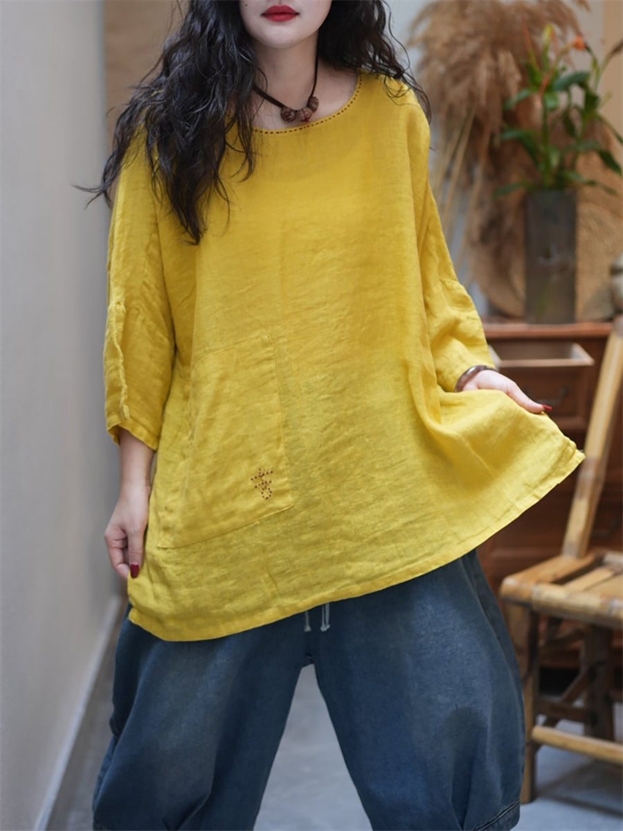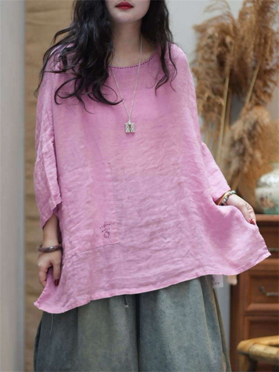 女士夏季休閒純色圓領襯衫