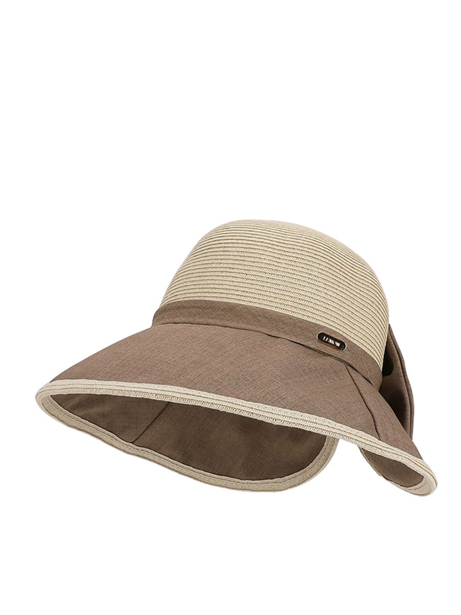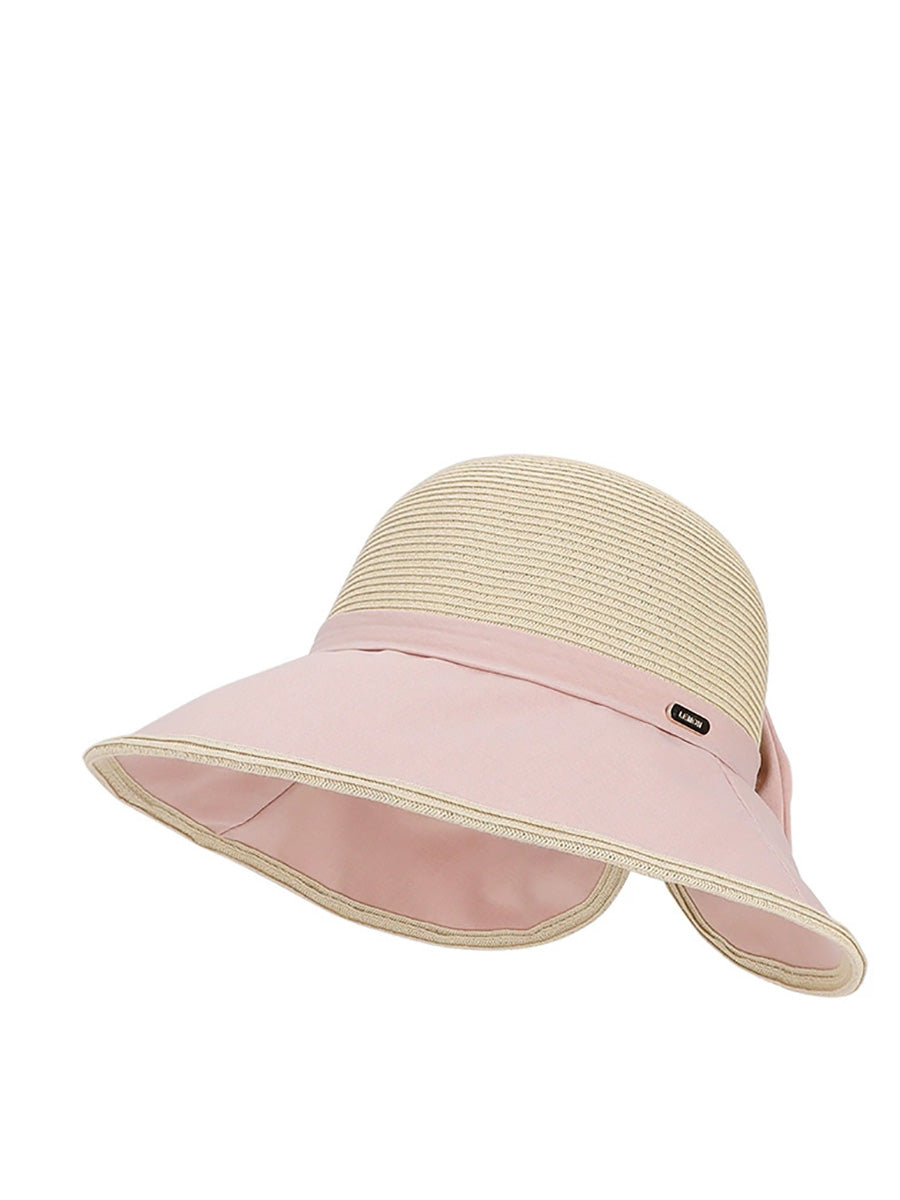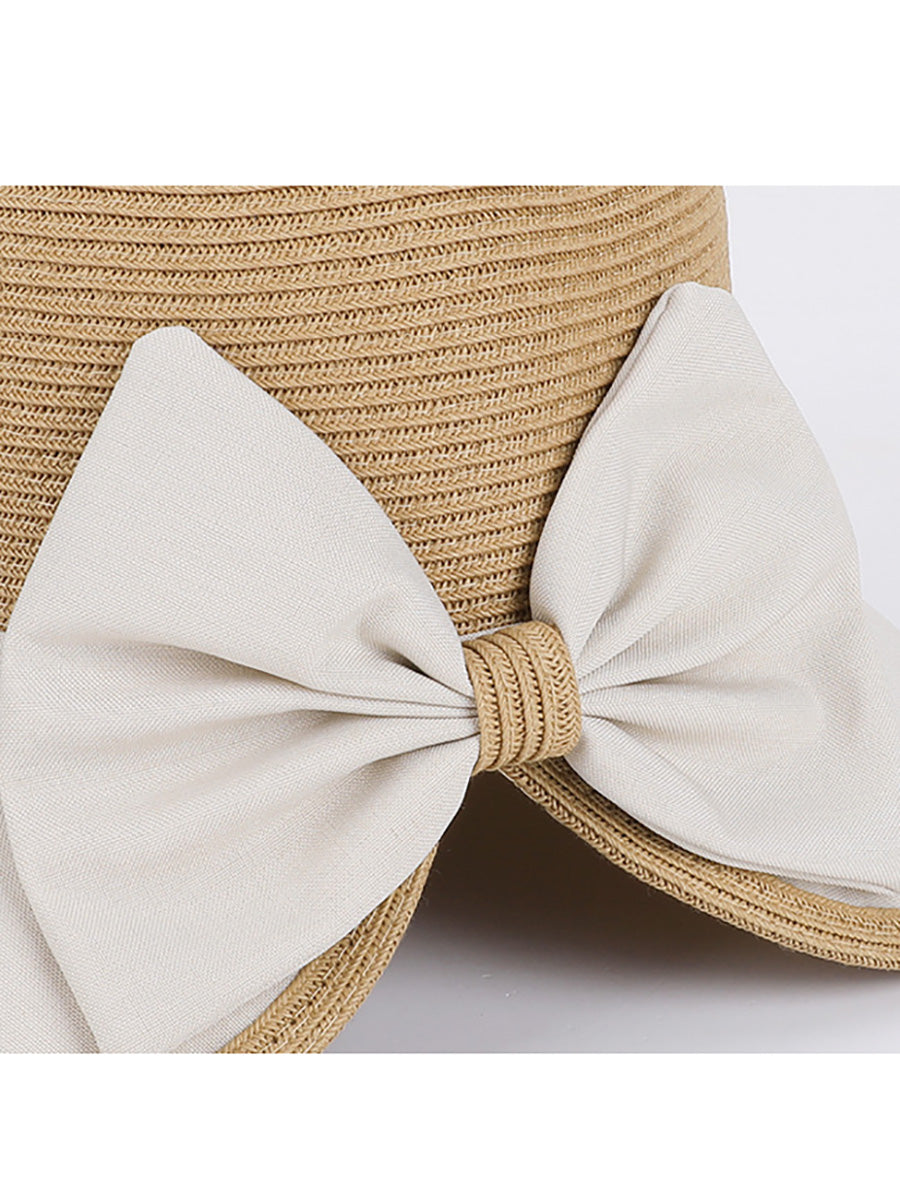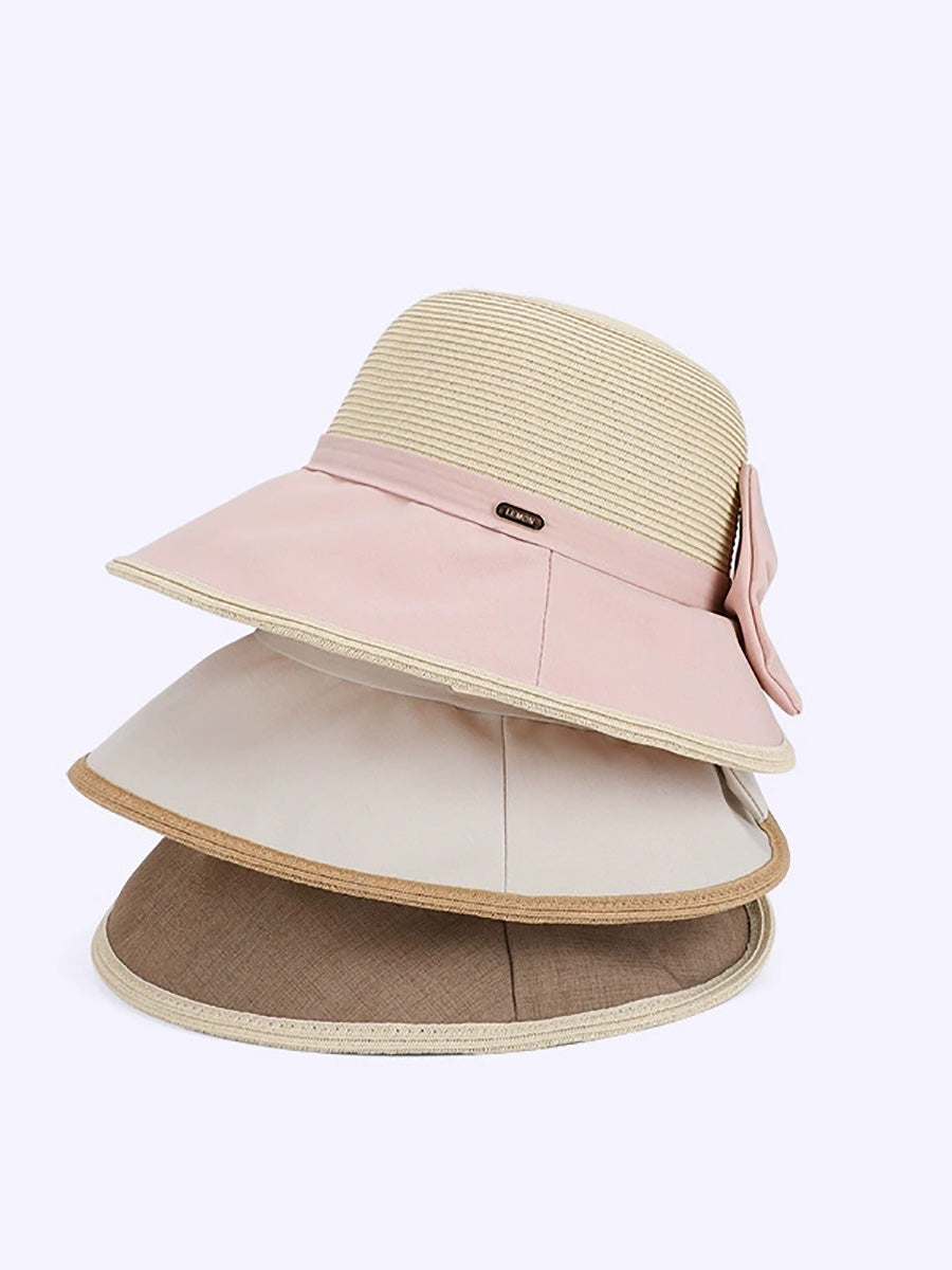 女士夏季撞色蝴蝶結防曬帽
