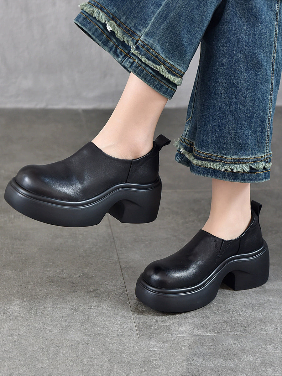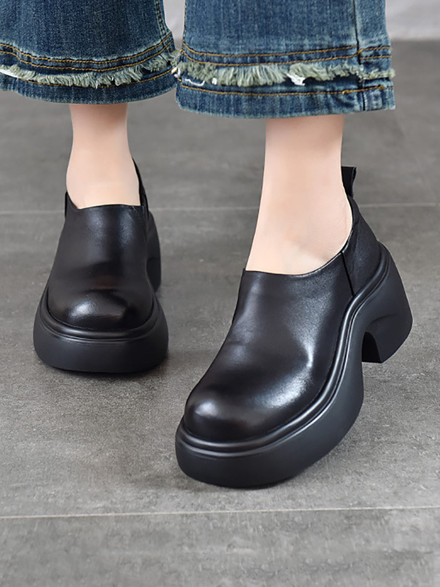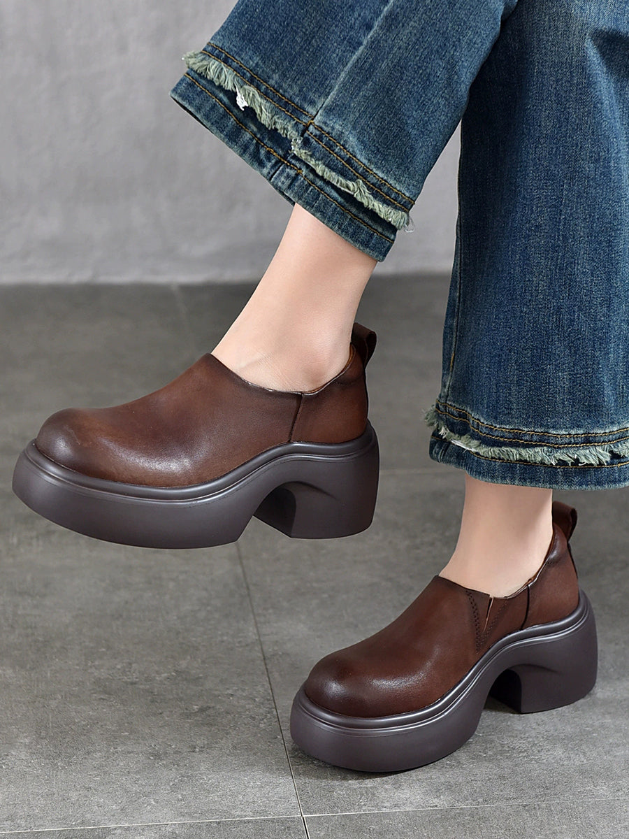 女士夏季真皮厚底鞋