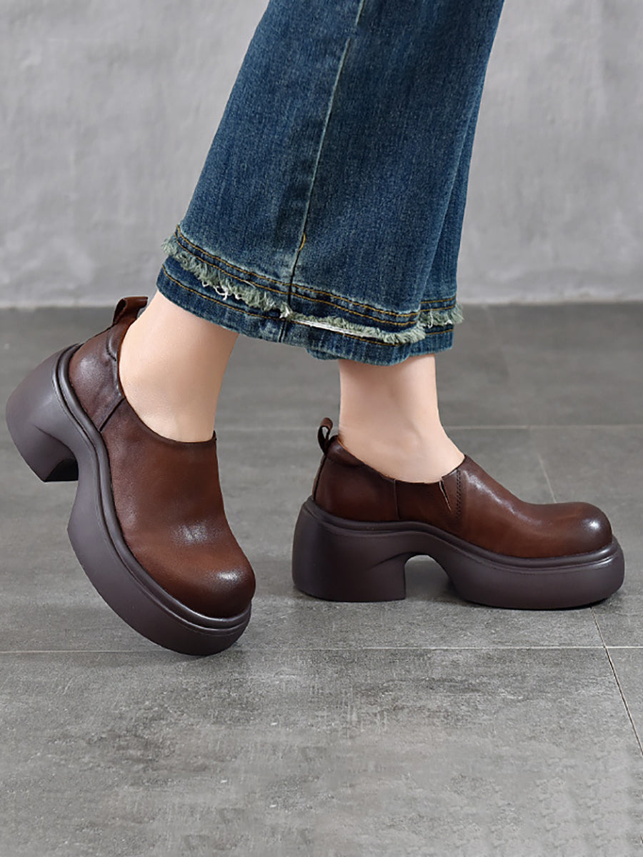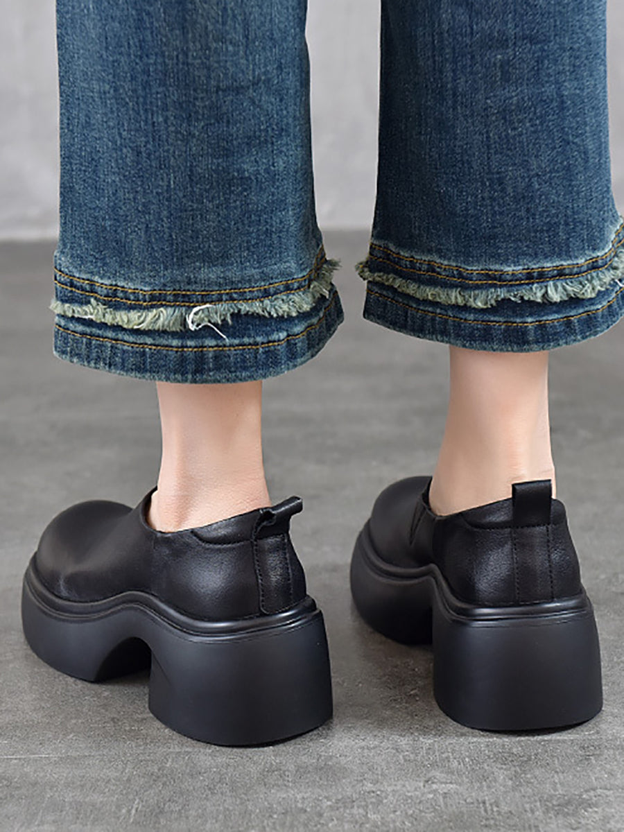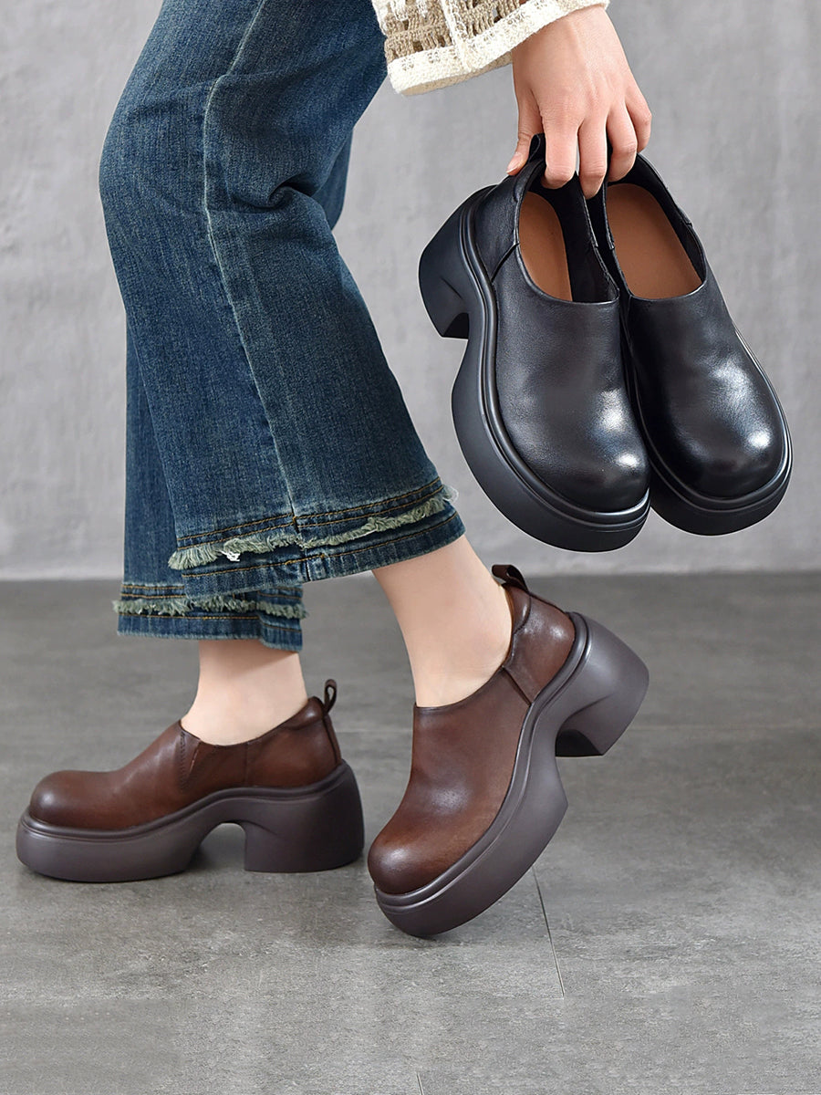 女士夏季真皮厚底鞋
