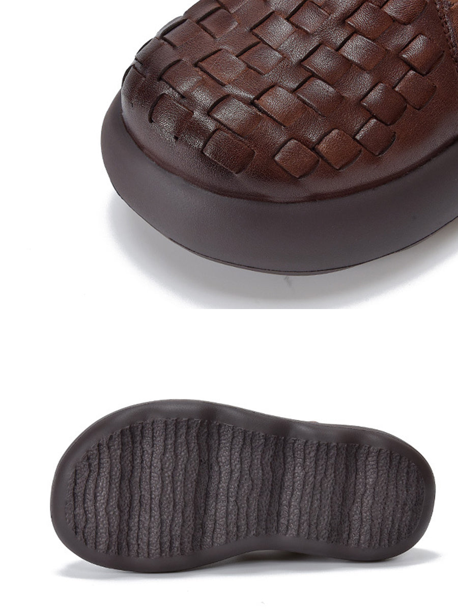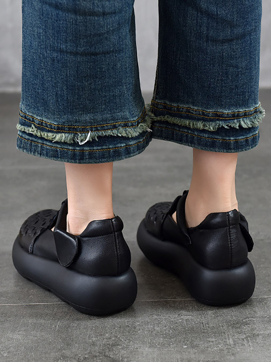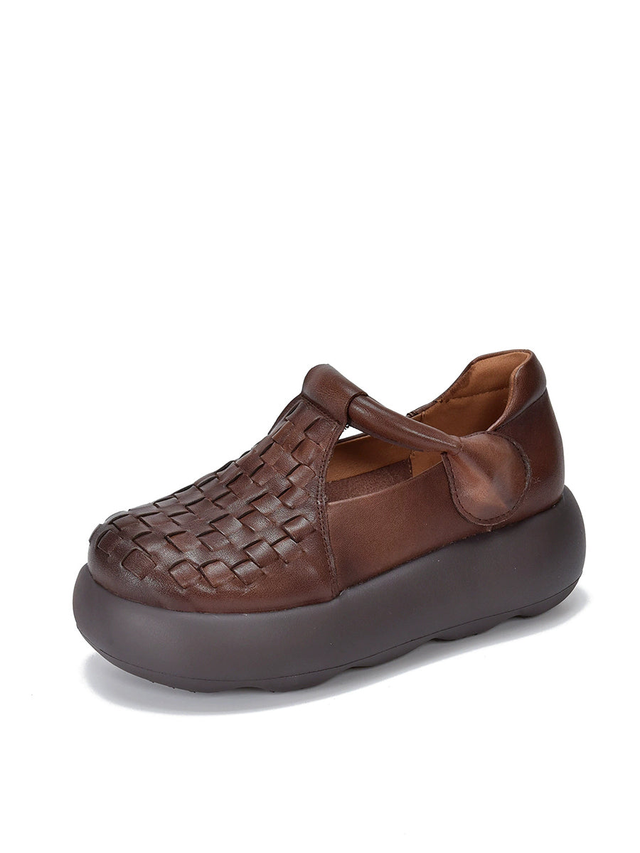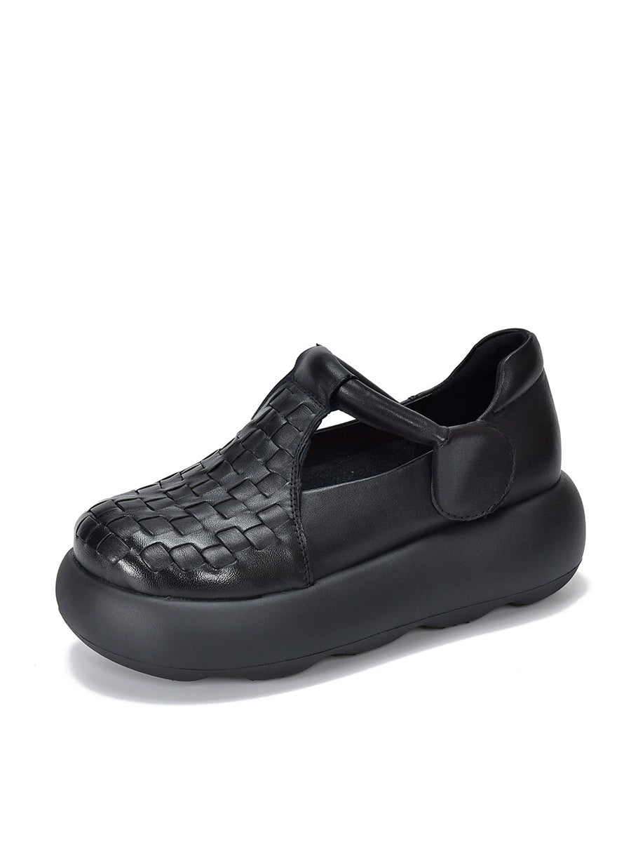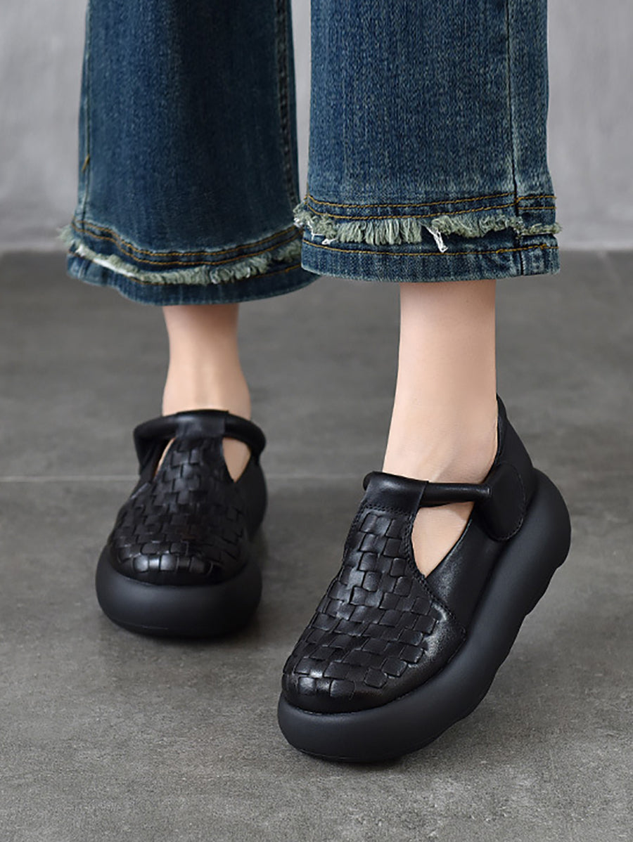 女士夏季真皮編織厚底鞋