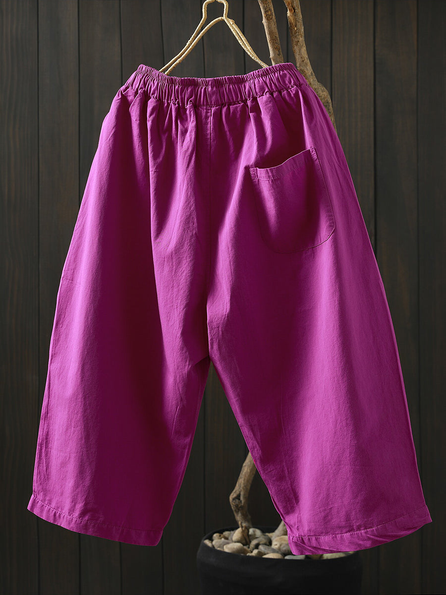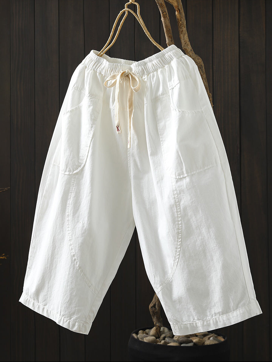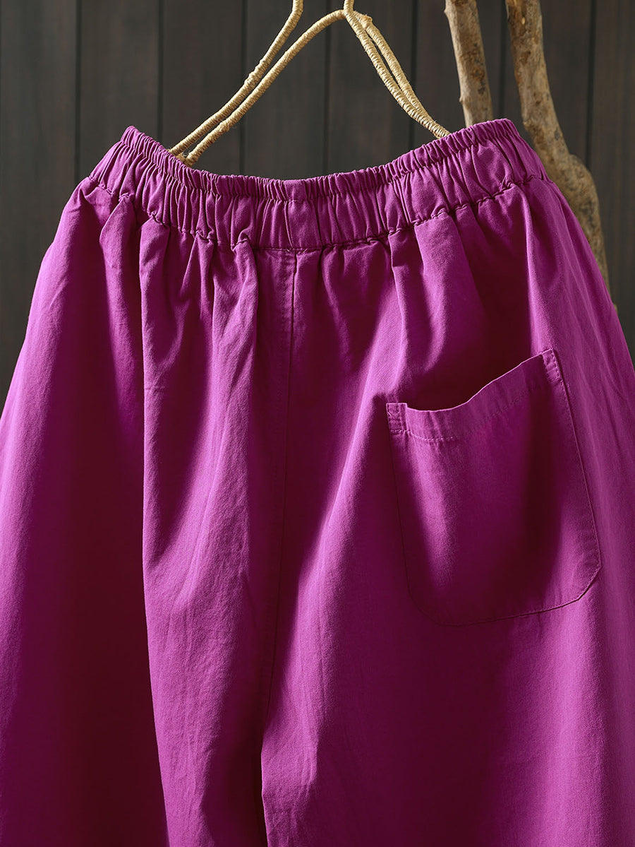 女士夏季純色棉質闊腿褲
