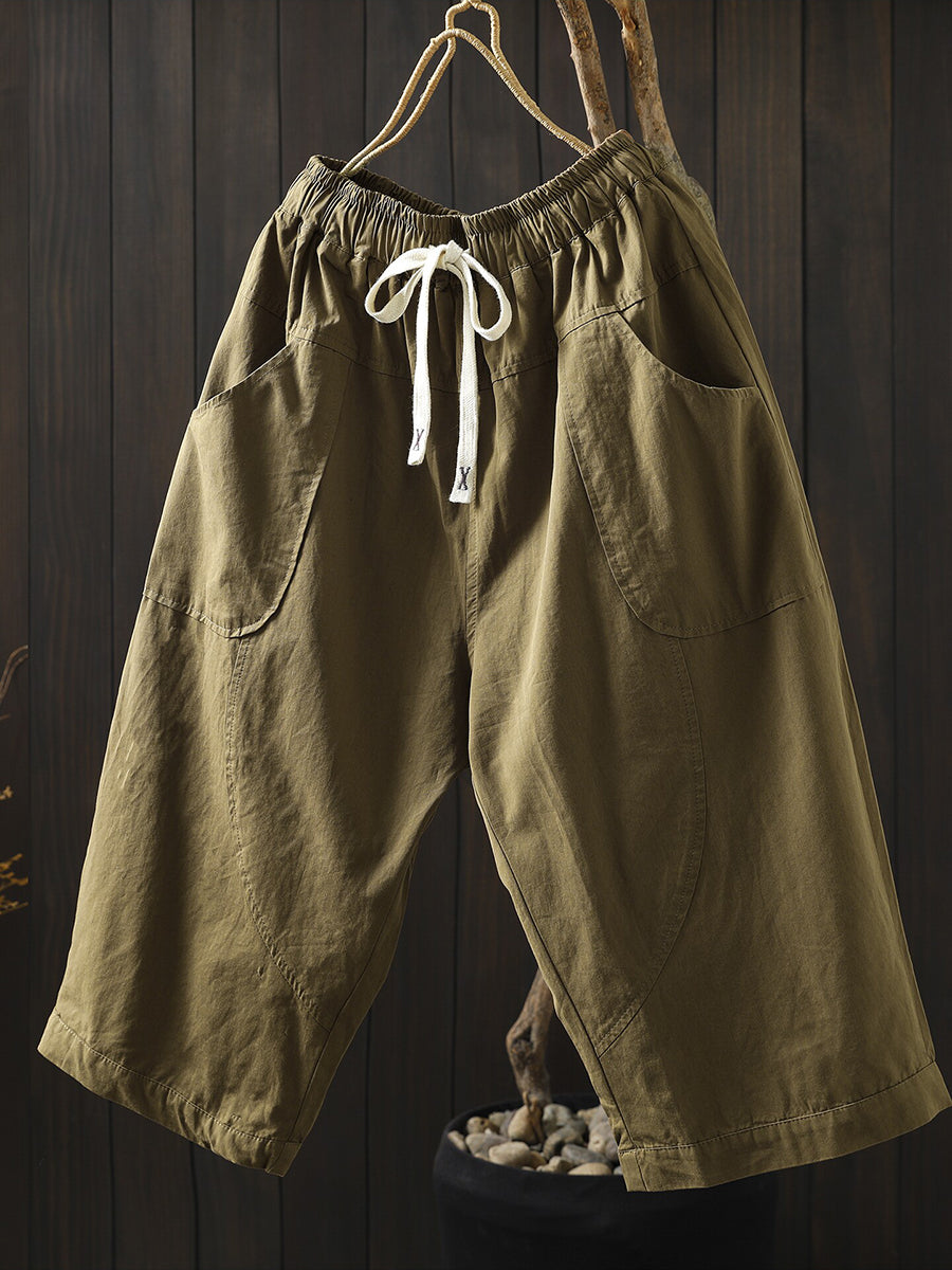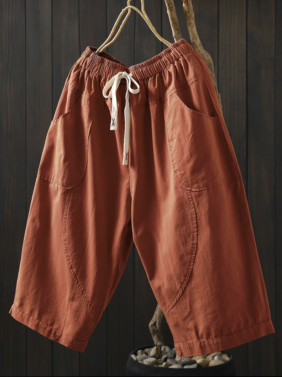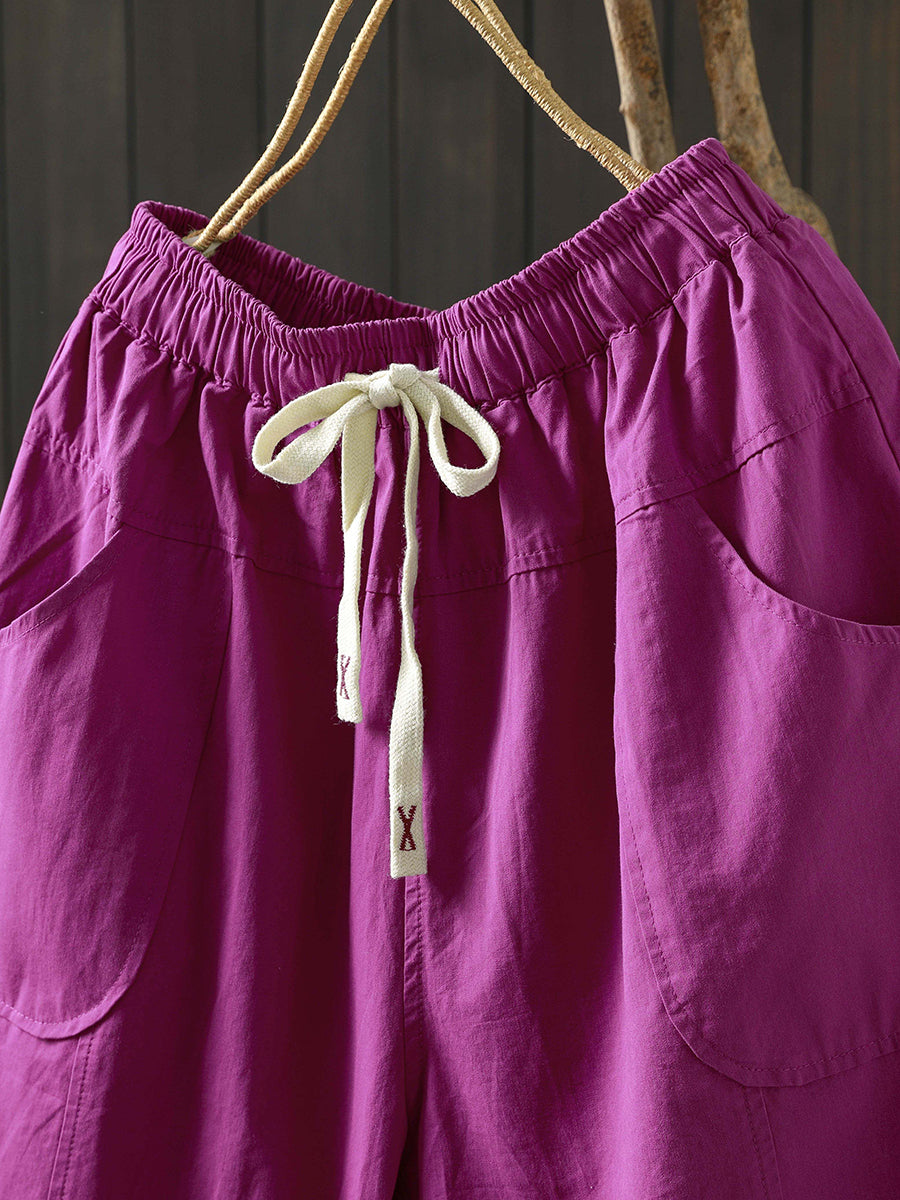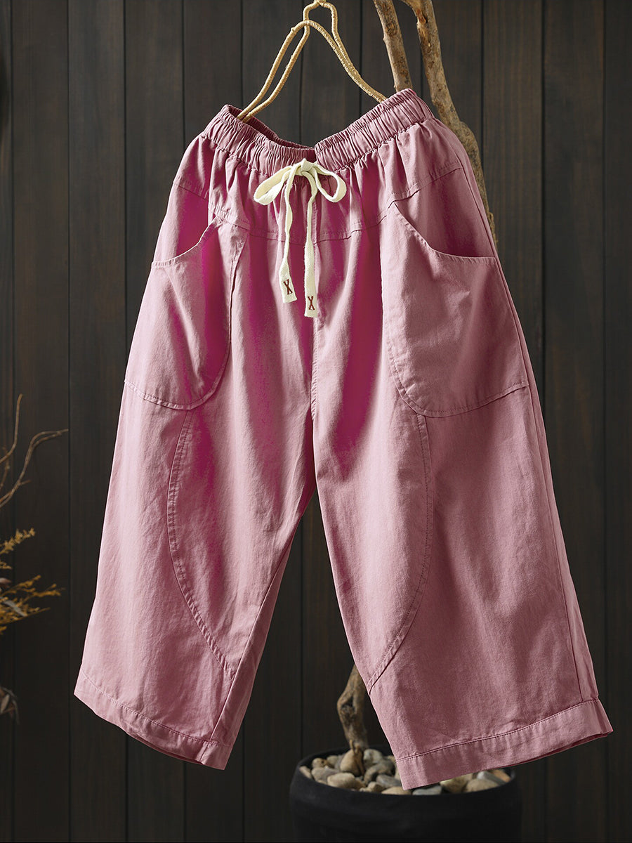 女士夏季純色棉質闊腿褲
