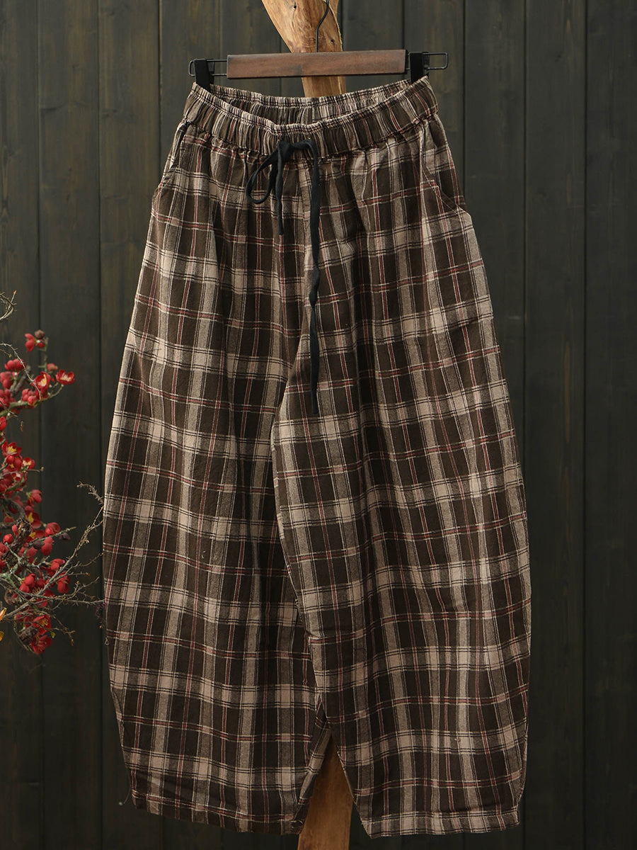 女士夏季復古格子棉哈倫褲