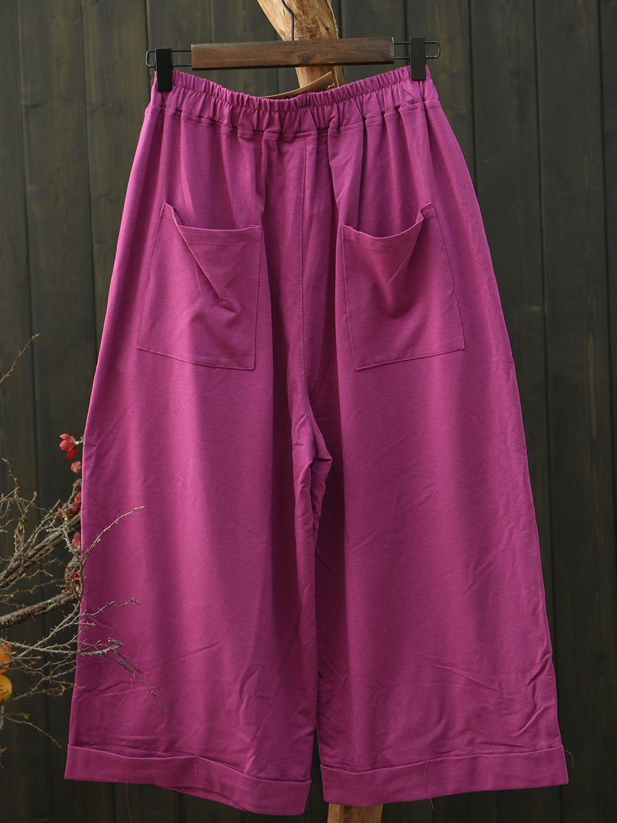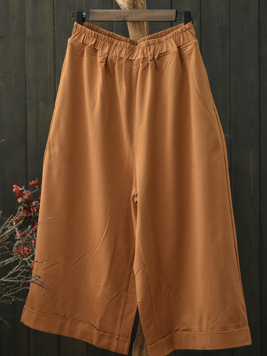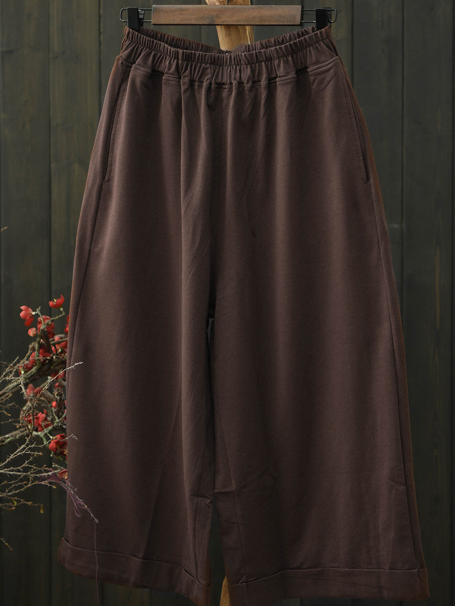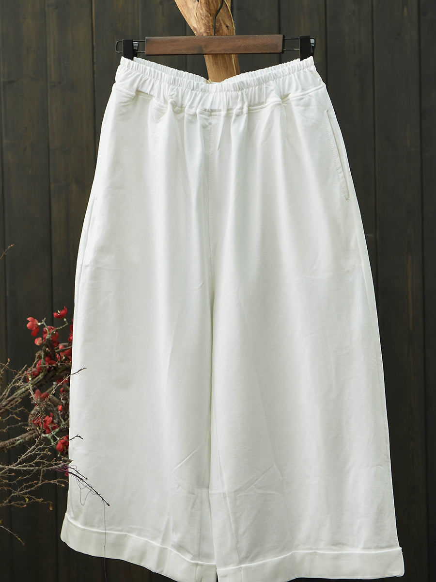 女士夏季復古純色棉質寬褲