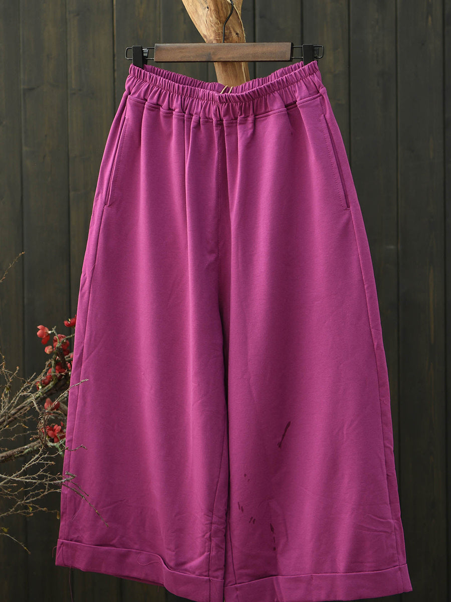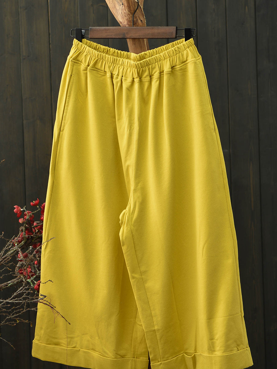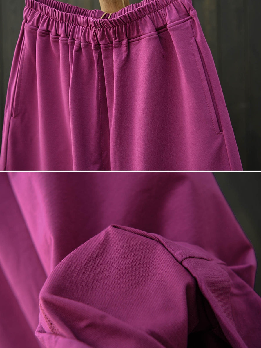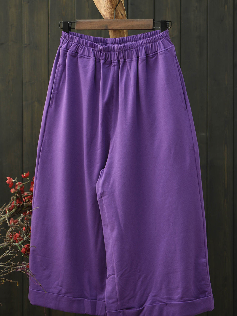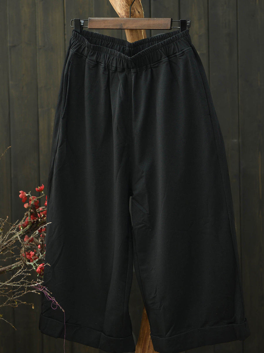 女士夏季復古純色棉質寬褲