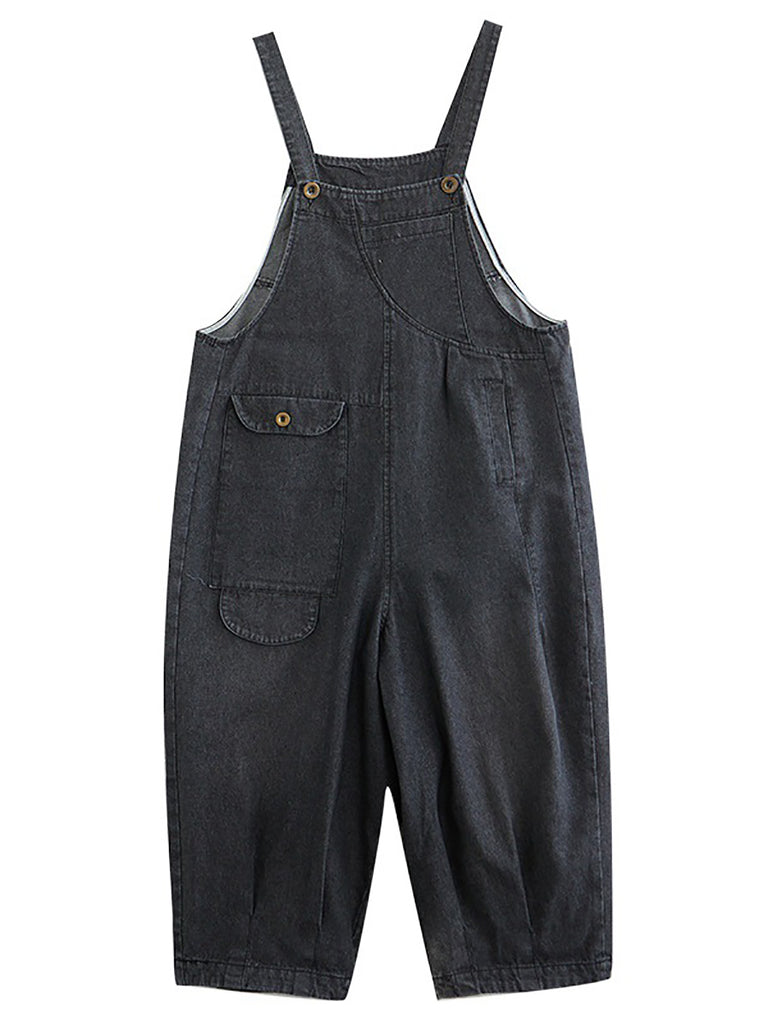 女款夏季純色休閒寬鬆牛仔連身褲
