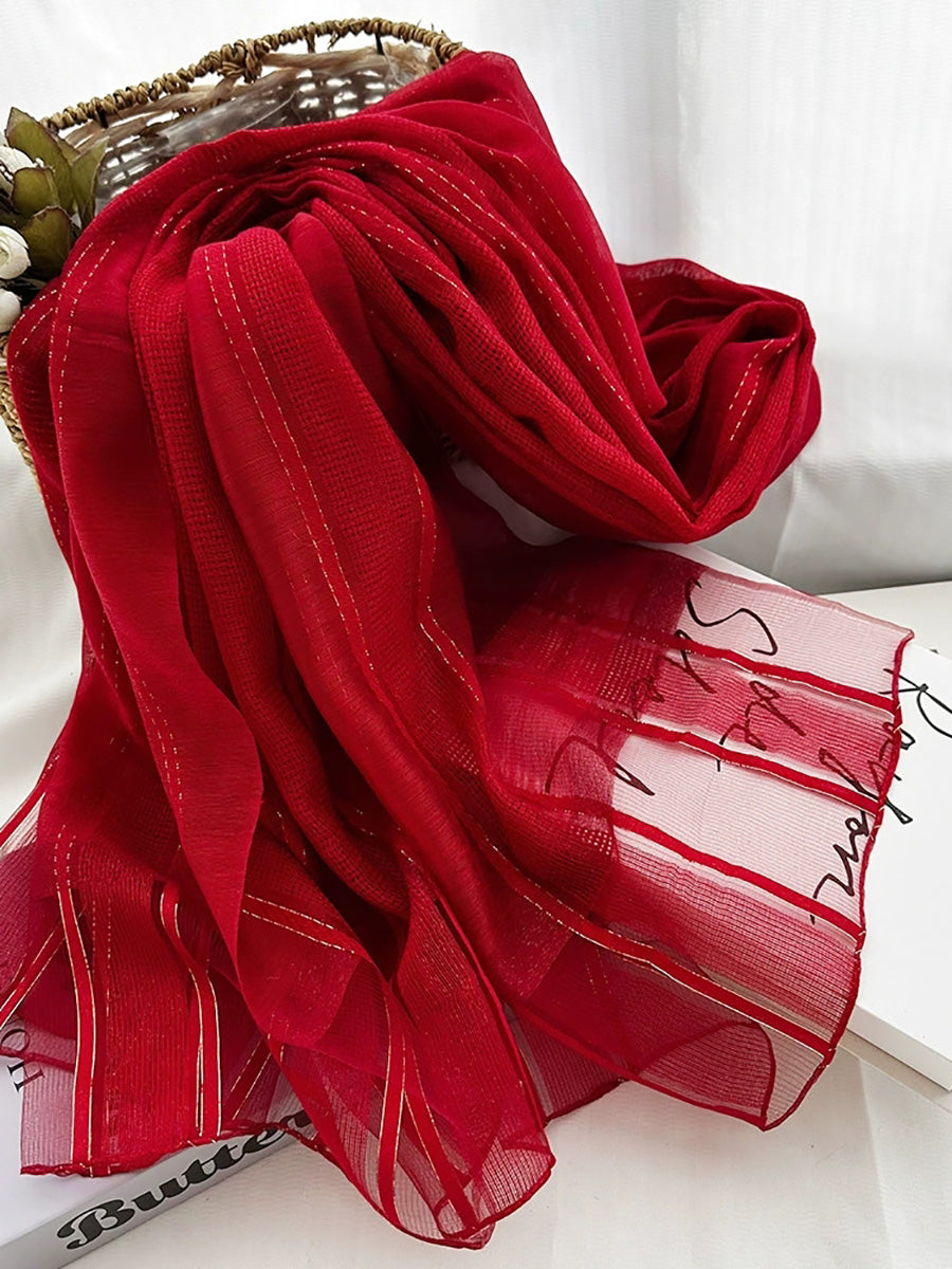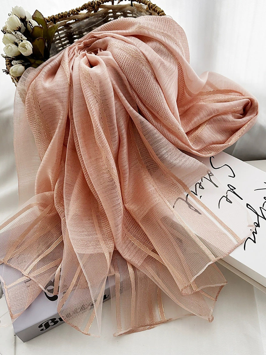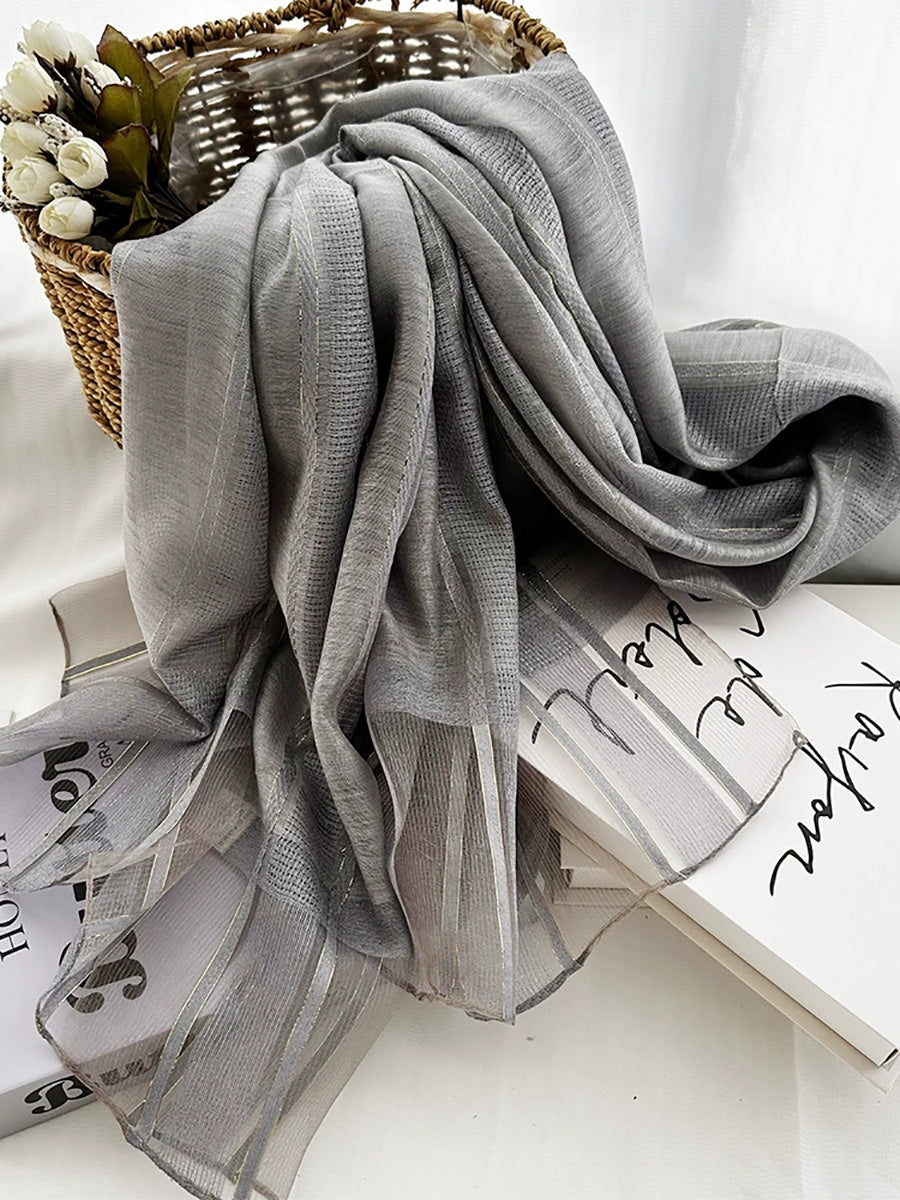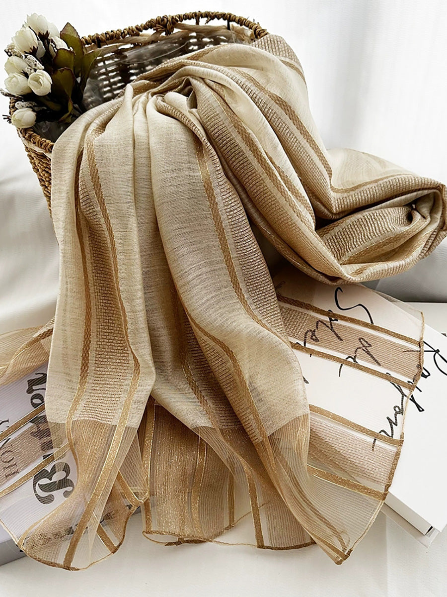 女士夏季薄條紋披肩圍巾