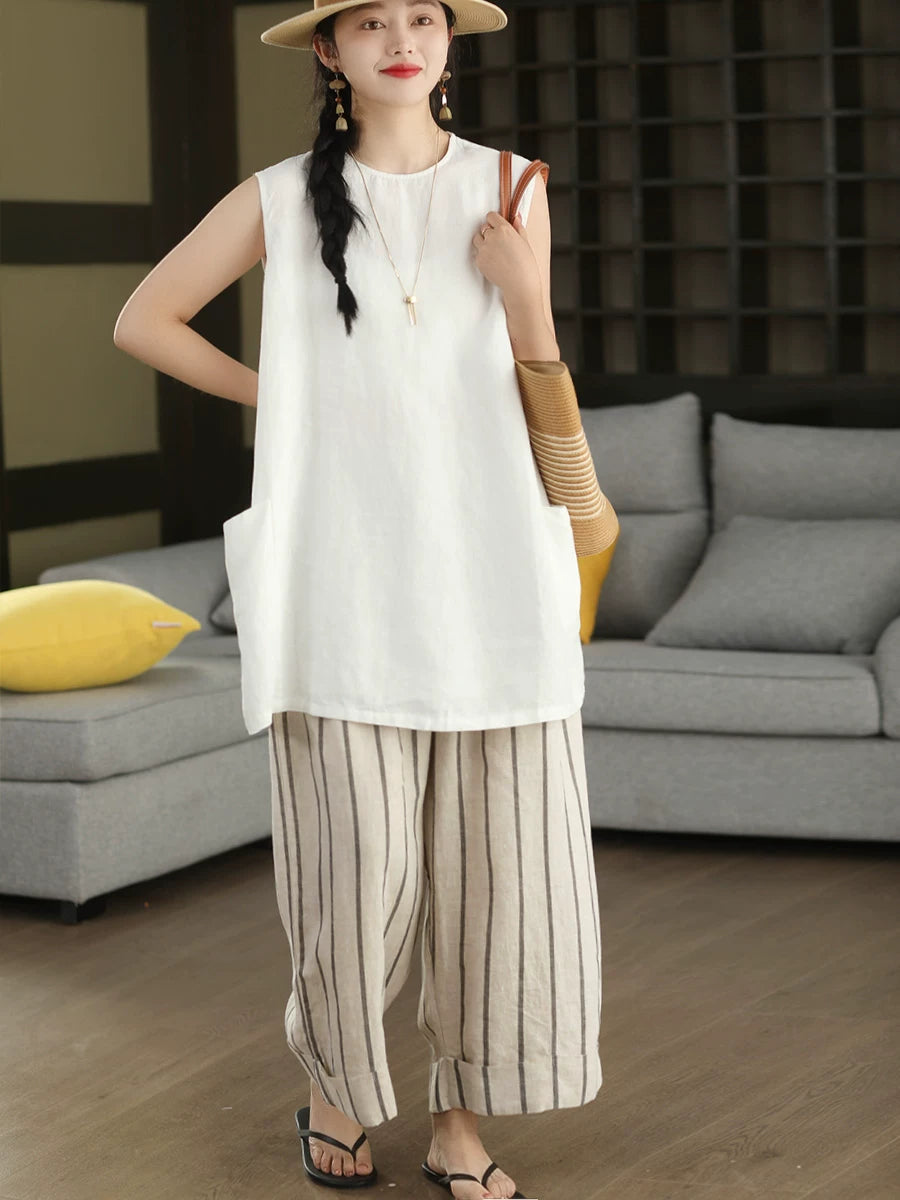 這款優質100%純麻亞麻單品,飾以復古藝術圖案,寬鬆版型,輕鬆打造夏日時尚造型。