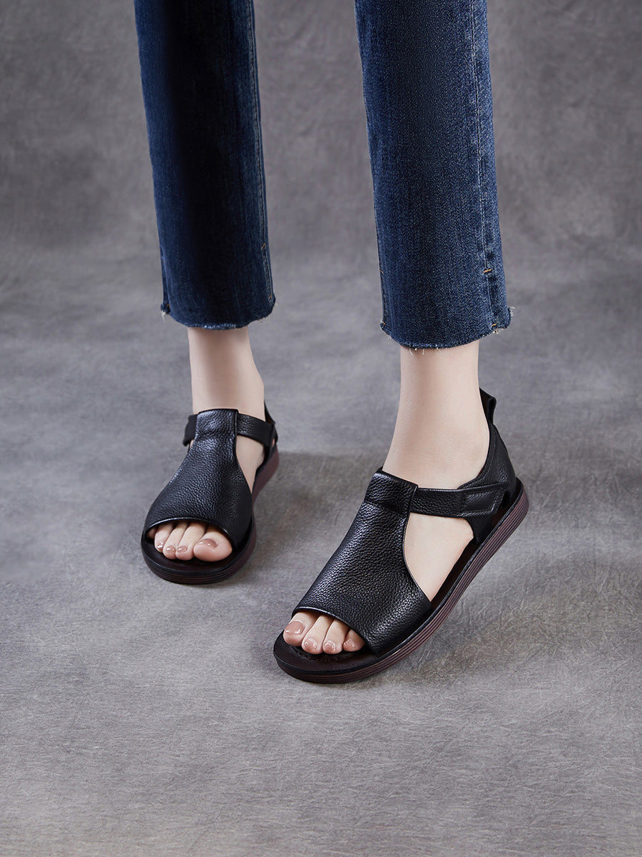 女士夏季復古皮革露趾涼鞋