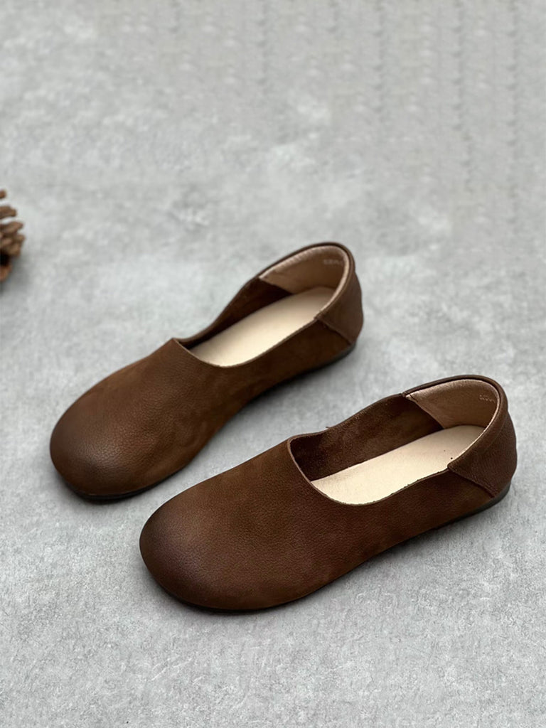 女士夏季復古軟皮平底鞋