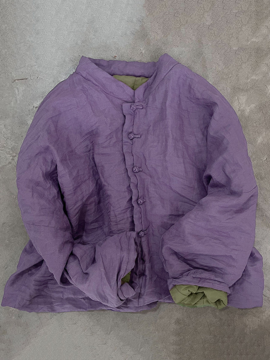 這款襯衫由苧麻製成,具有純色圖案、翻折領和寬大、規則的袖子。其藝術風格使其非常適合春秋季節穿著。