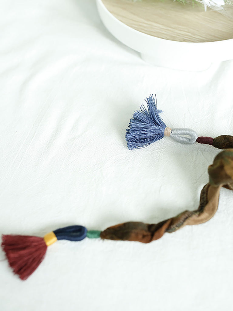 Women Vintage Flower Spliced Embroidery Linen Triangular Scarf