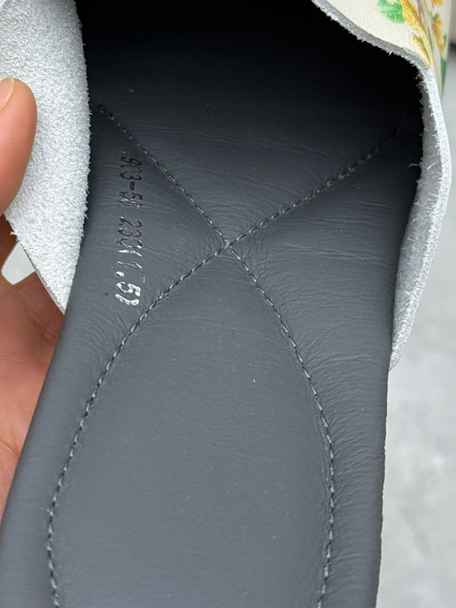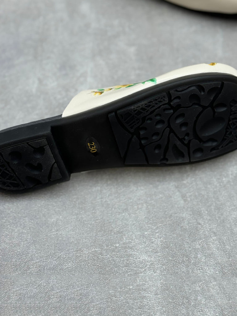 女士復古花卉印花軟皮拖鞋
