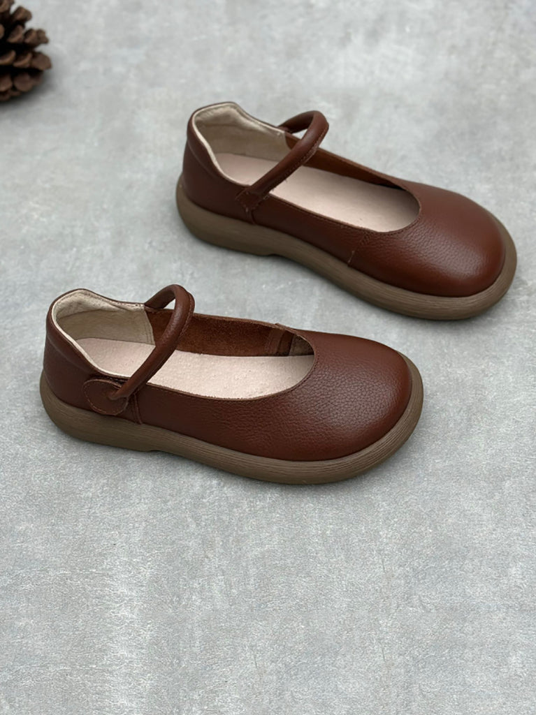 女士復古真皮平底鞋