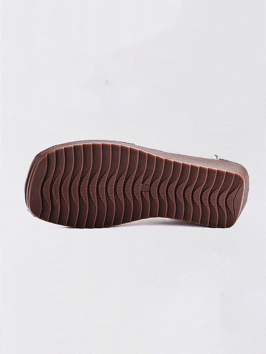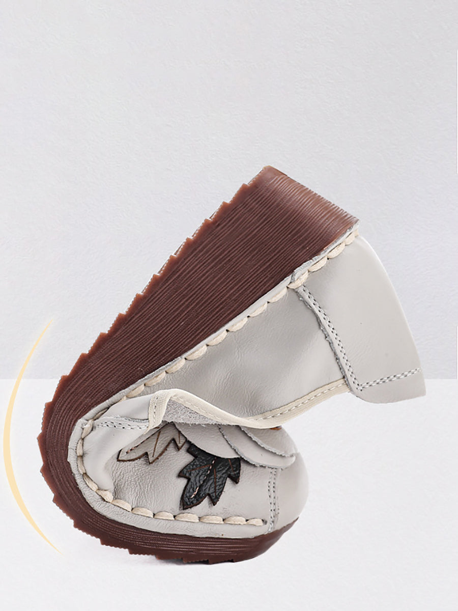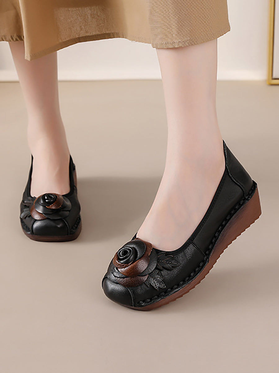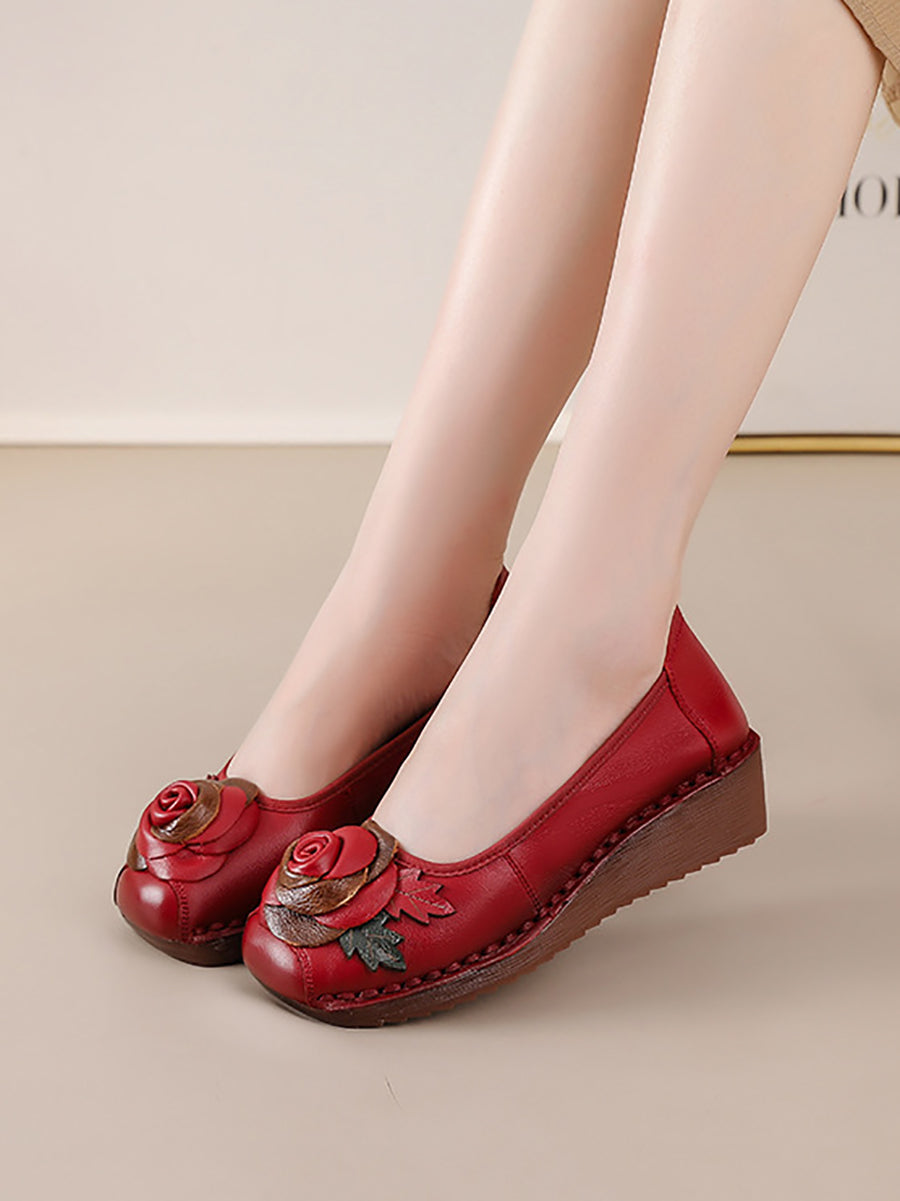 女士復古真皮花朵厚底鞋