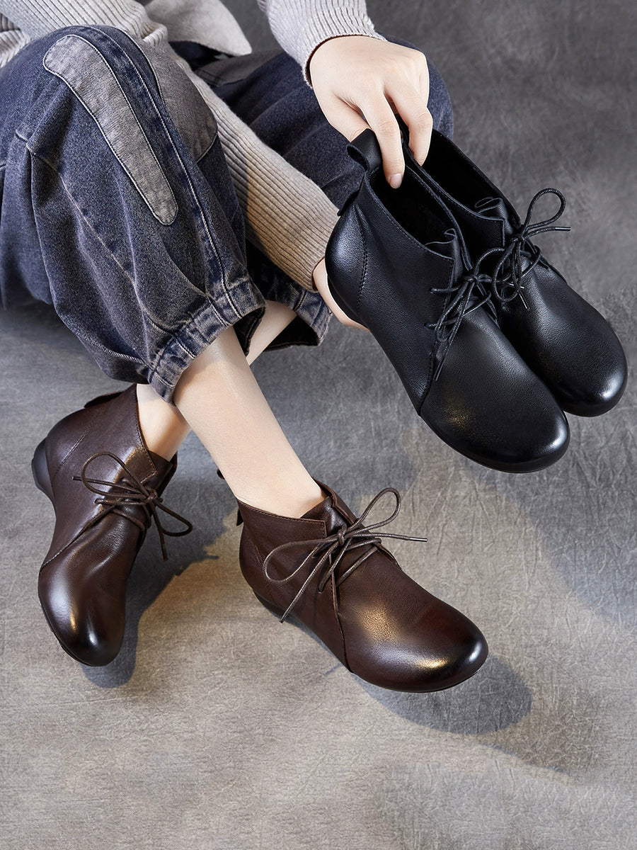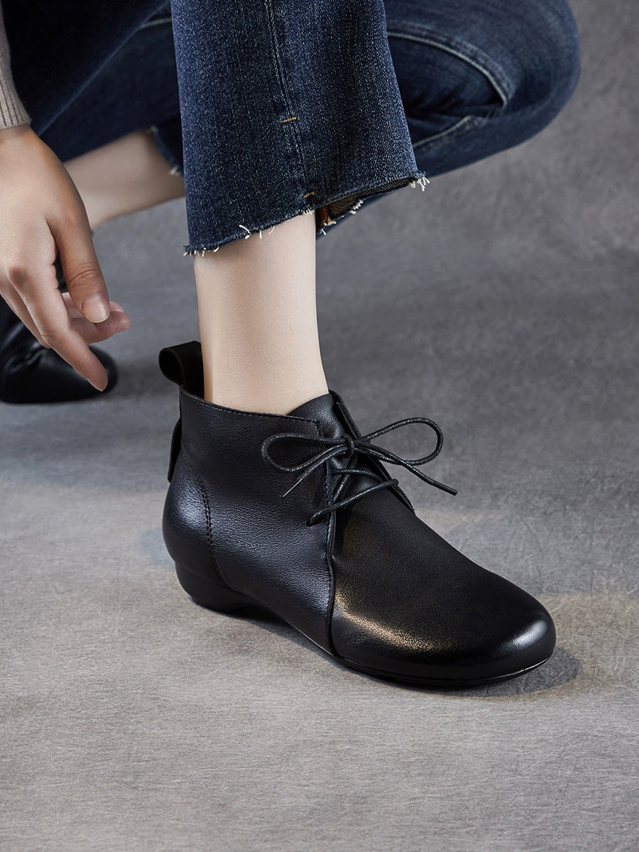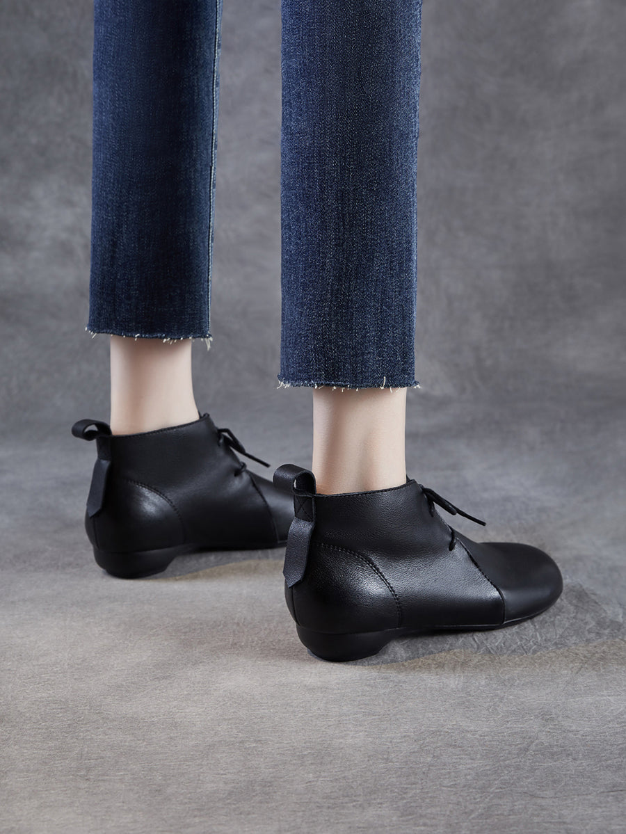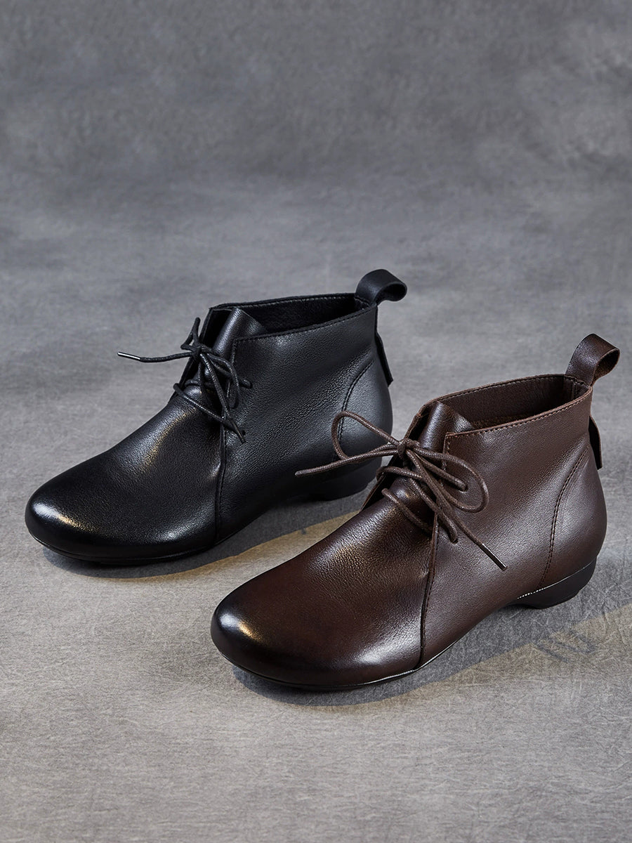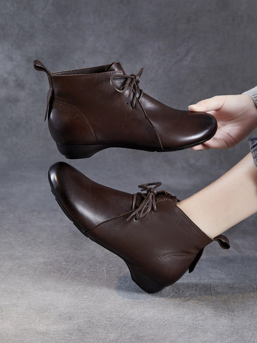 女士復古真皮低跟踝靴