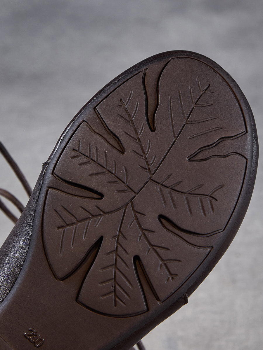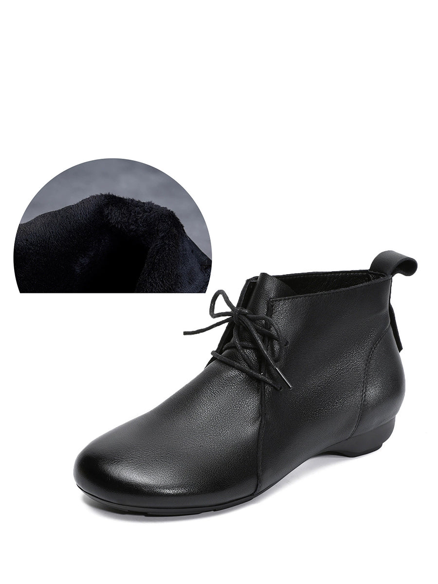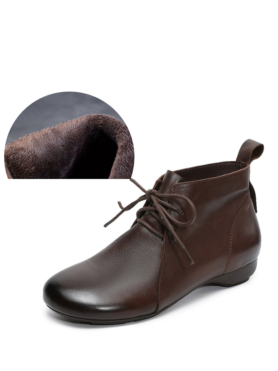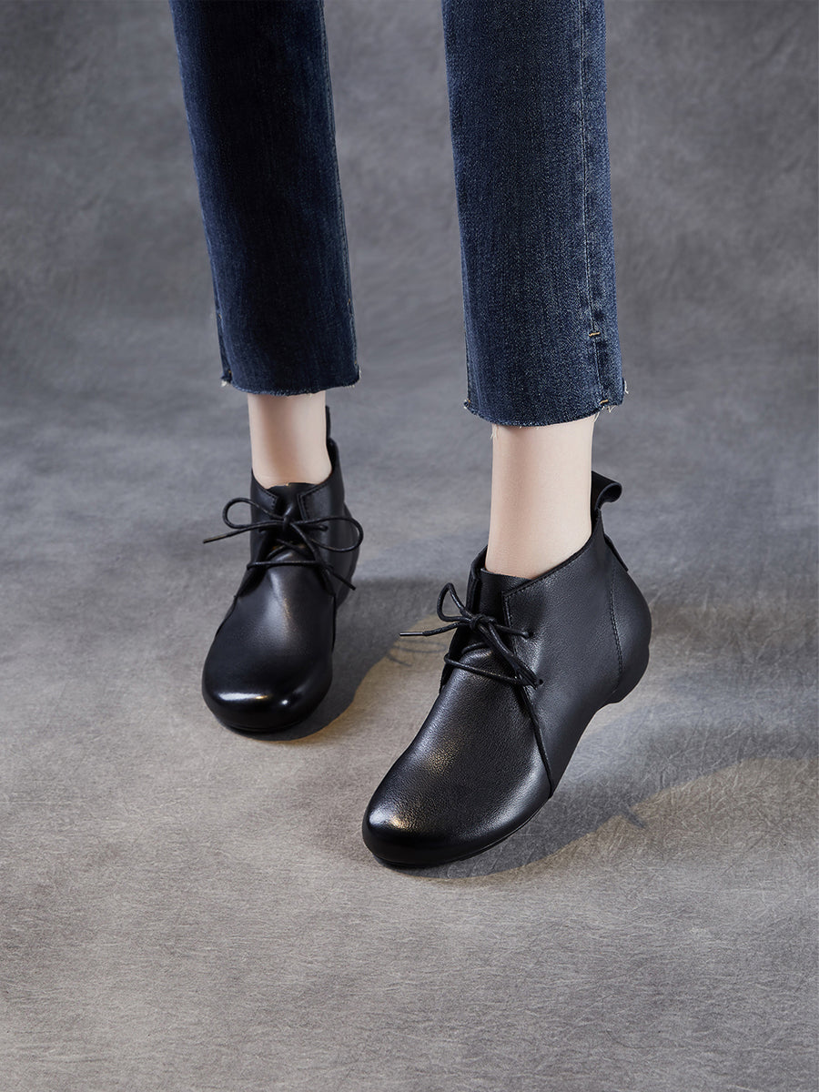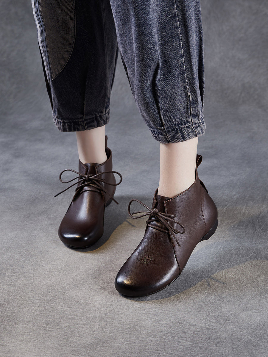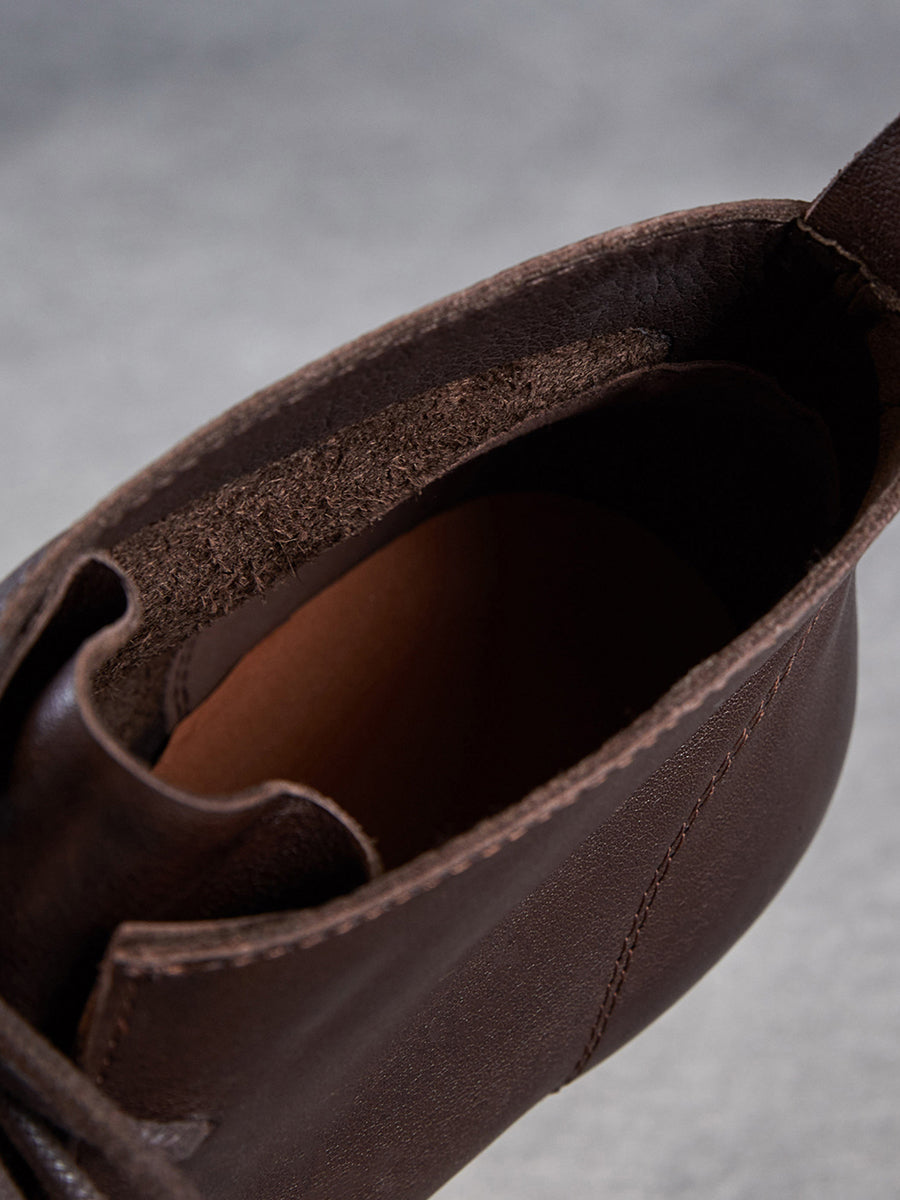 女士復古真皮低跟踝靴