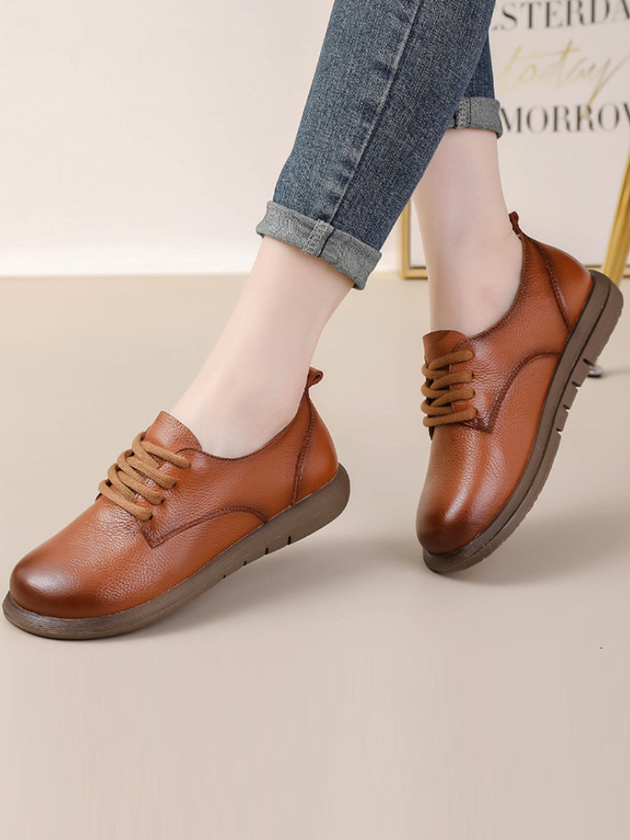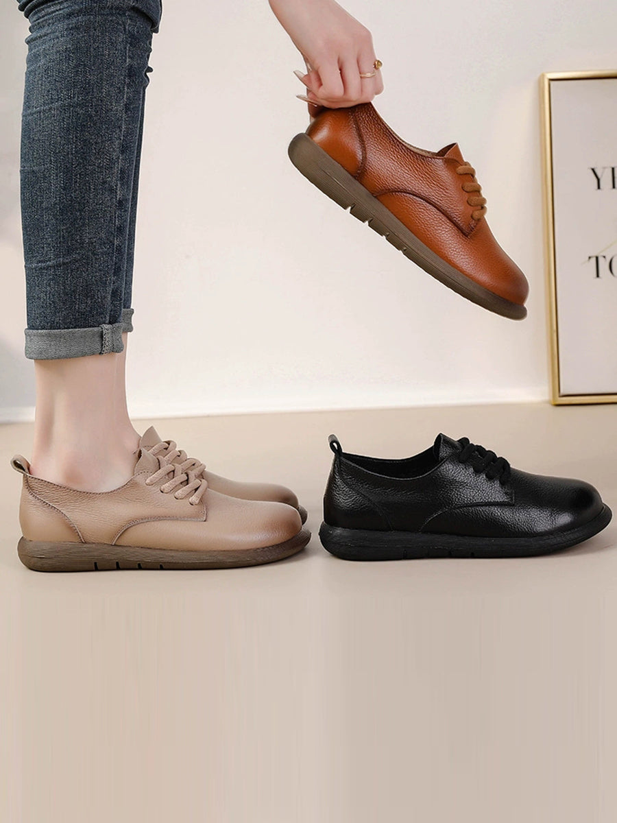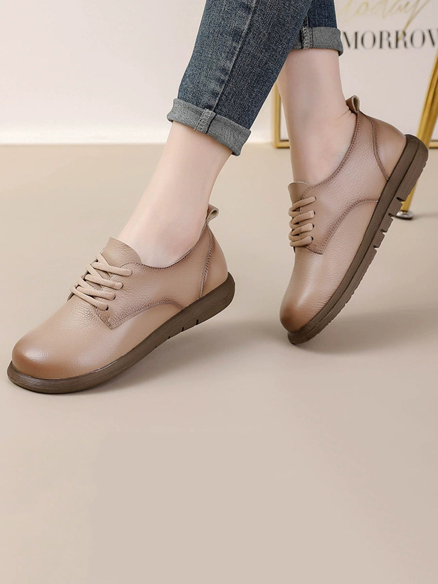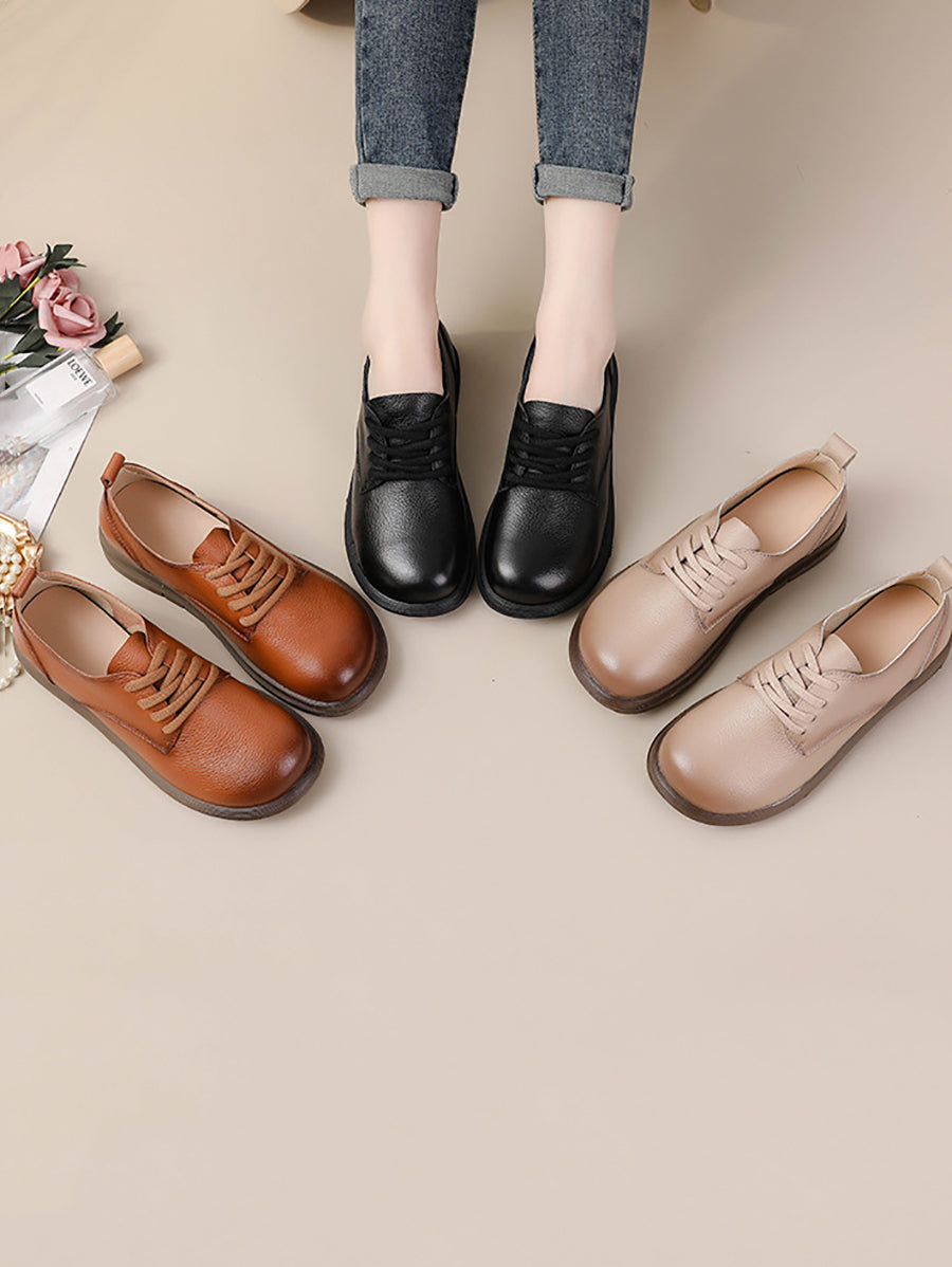 女士復古真皮拼接平底鞋