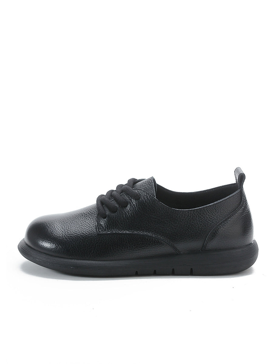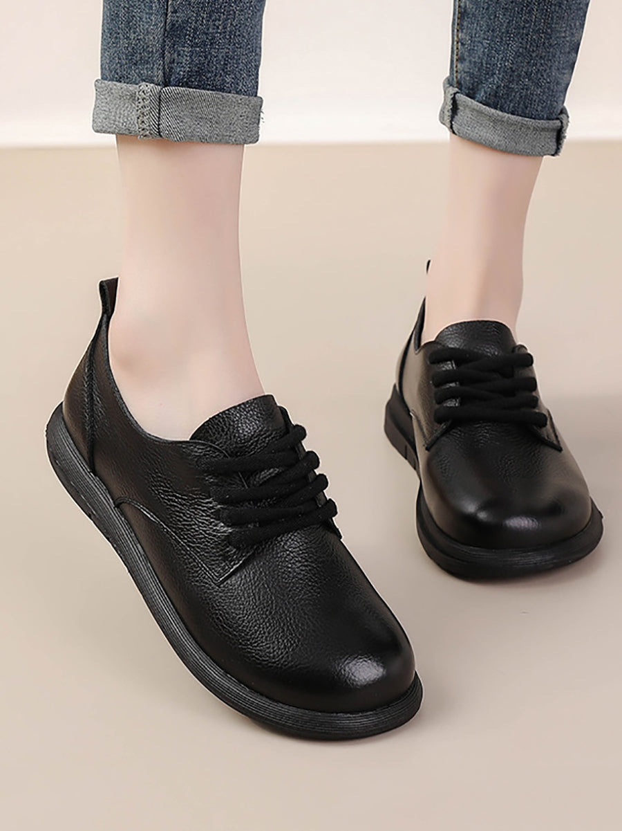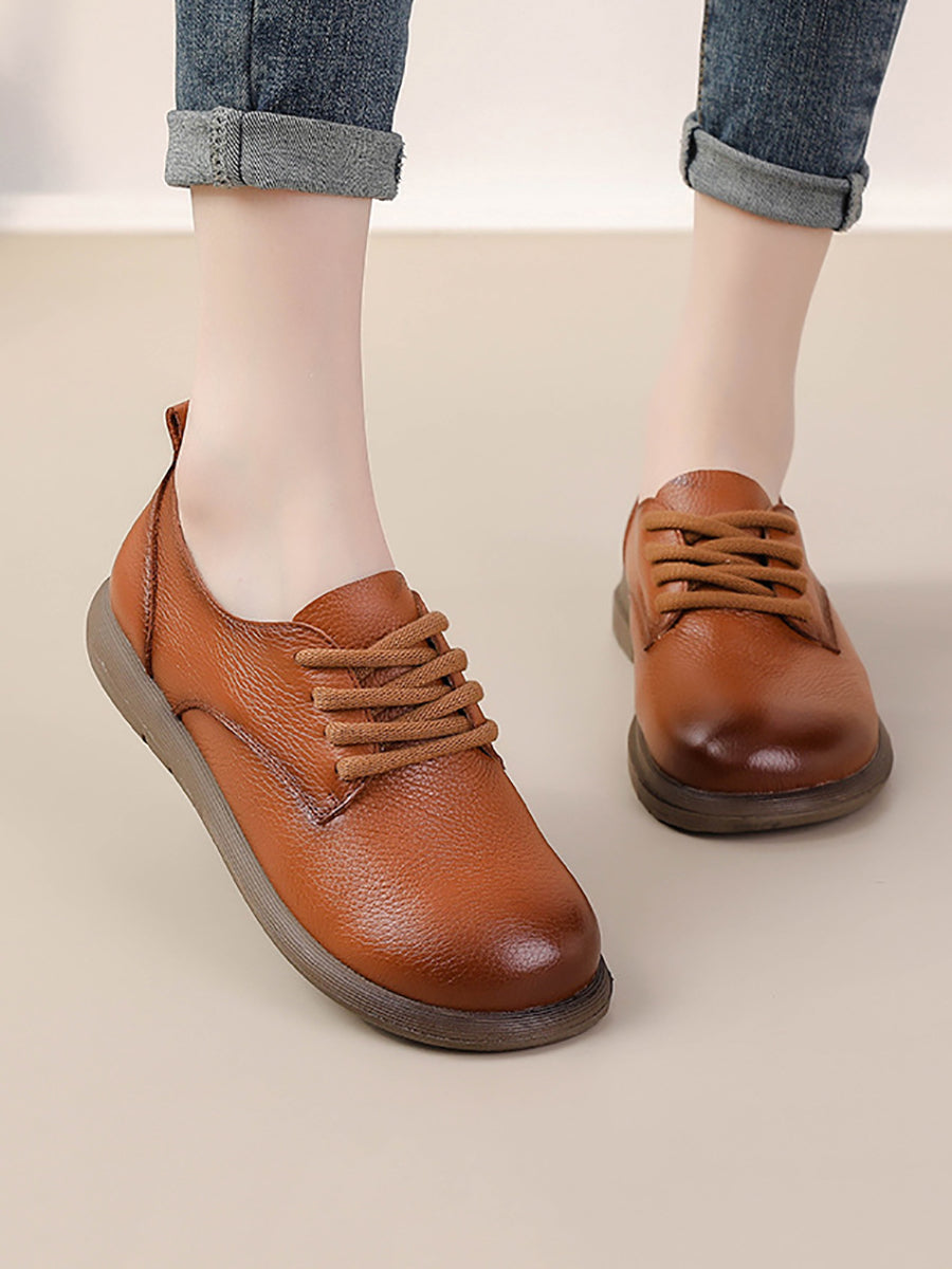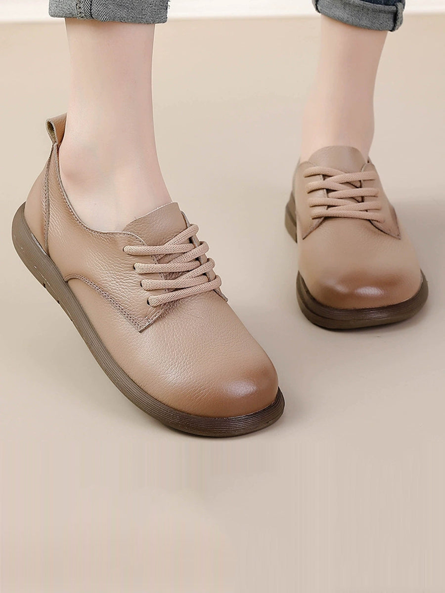 女士復古真皮拼接平底鞋