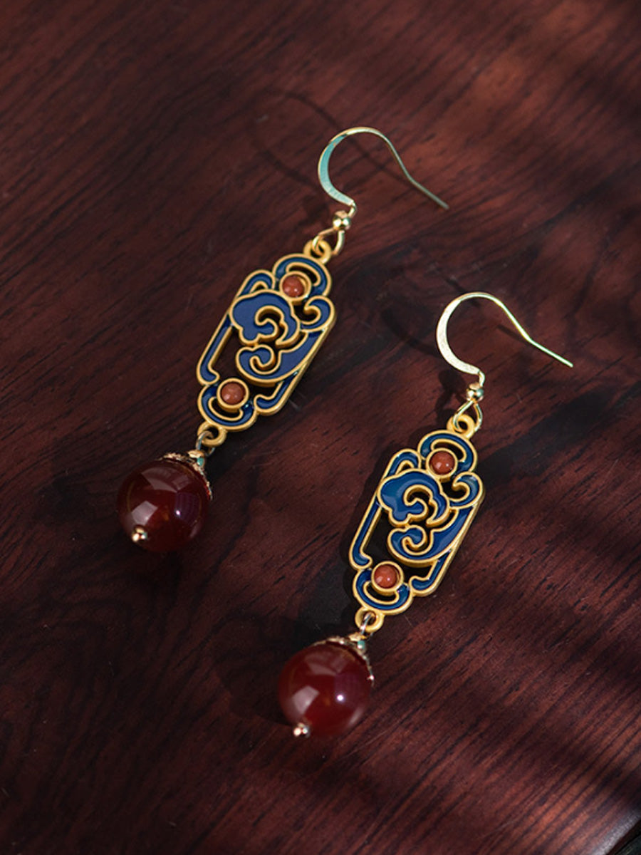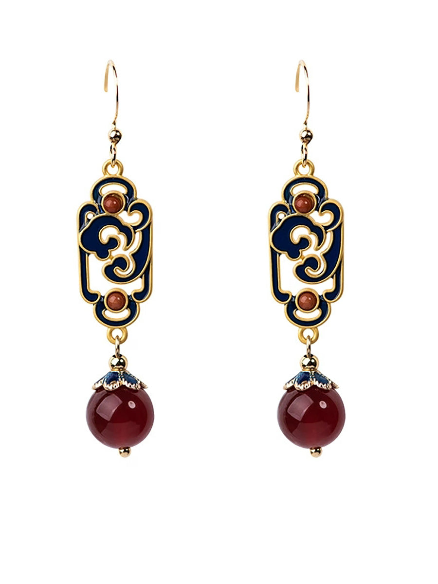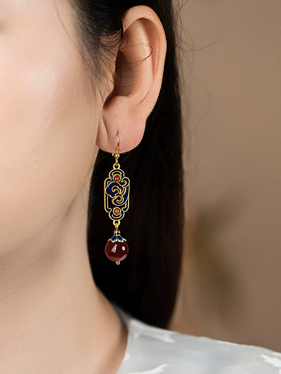 女士復古紅瑪瑙琺瑯合金耳環