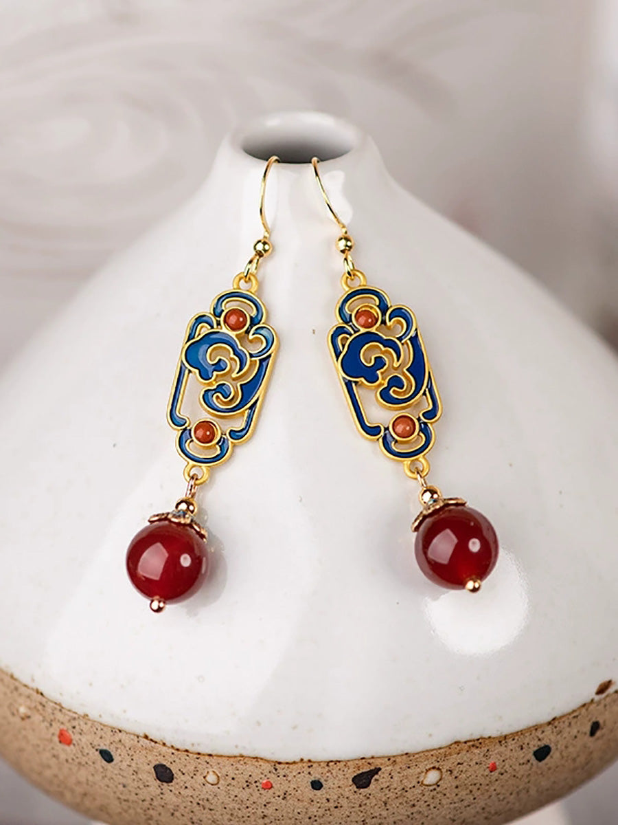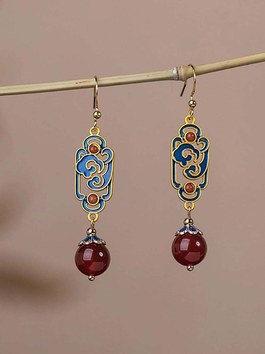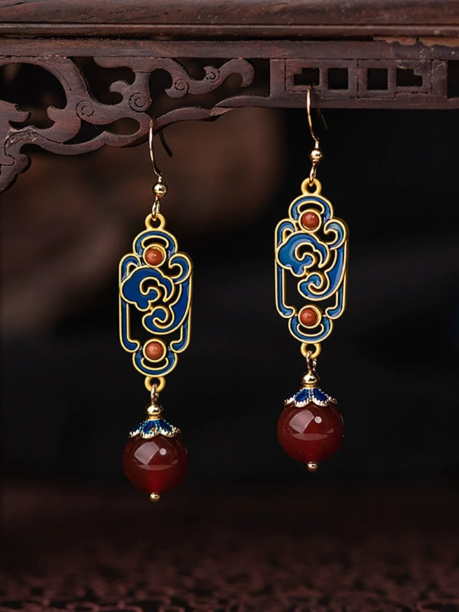 女士復古紅瑪瑙琺瑯合金耳環