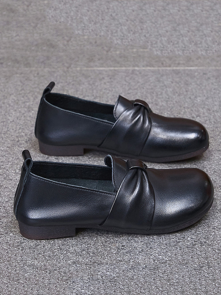 女士復古軟皮結飾低跟鞋