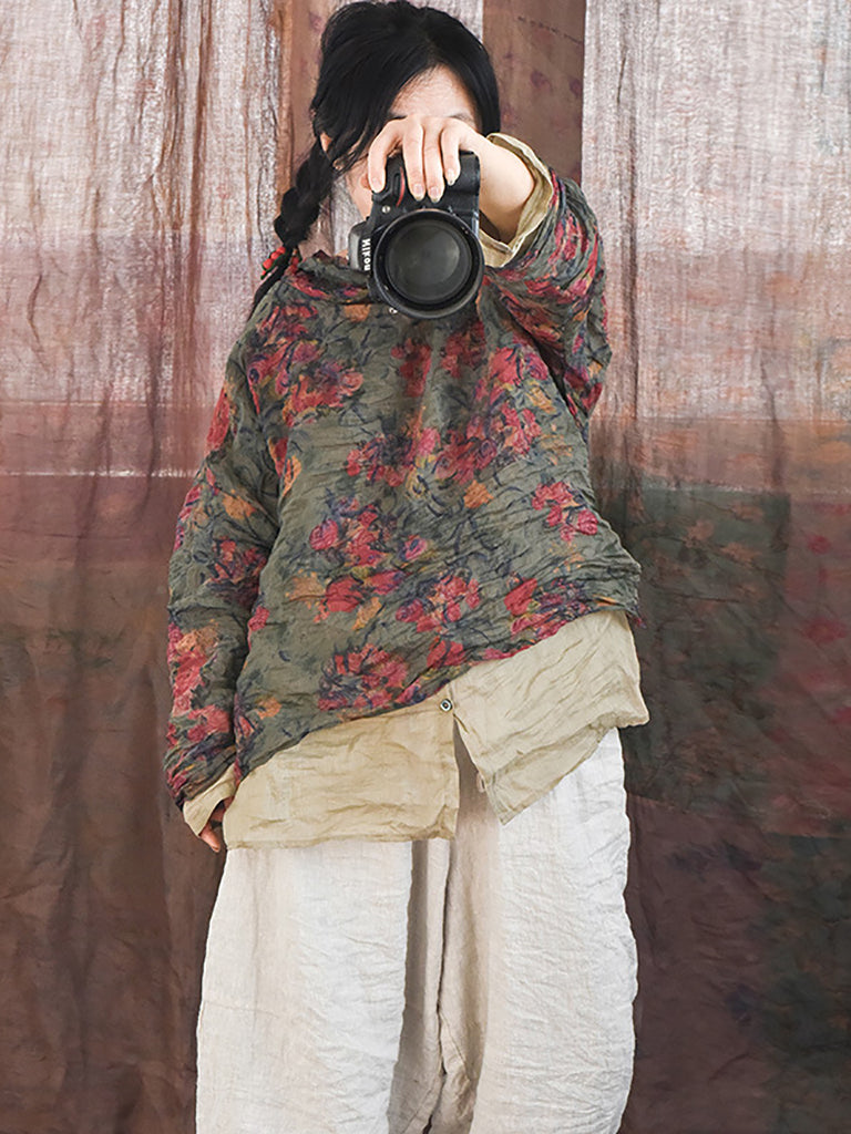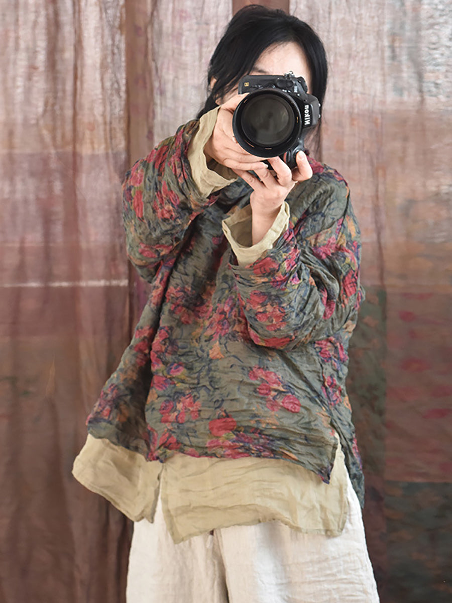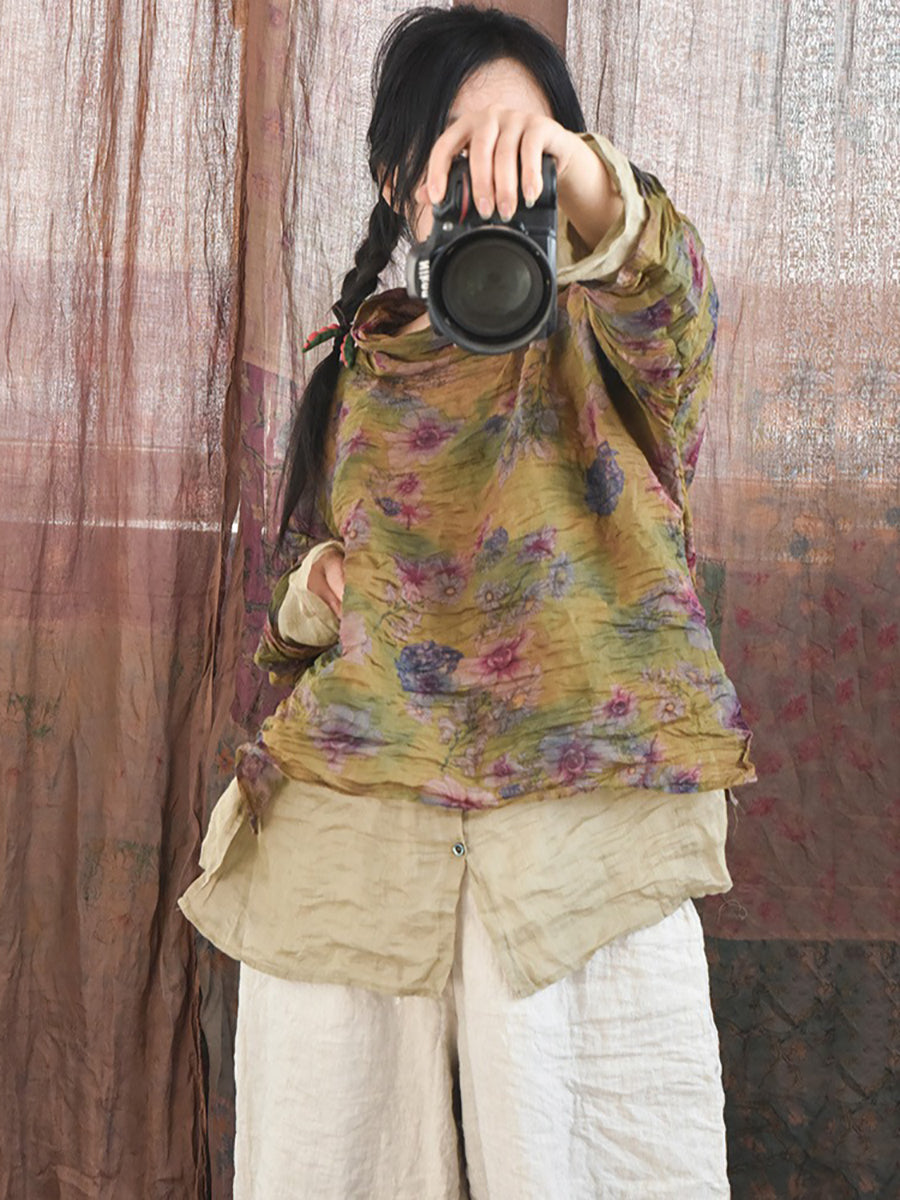 這款高品質襯衫採用苧麻布料製成,採用經典派領和插肩長袖,營造出復古氣息。永恆的花卉圖案增添了一絲優雅,非常適合在春季或秋季穿著。