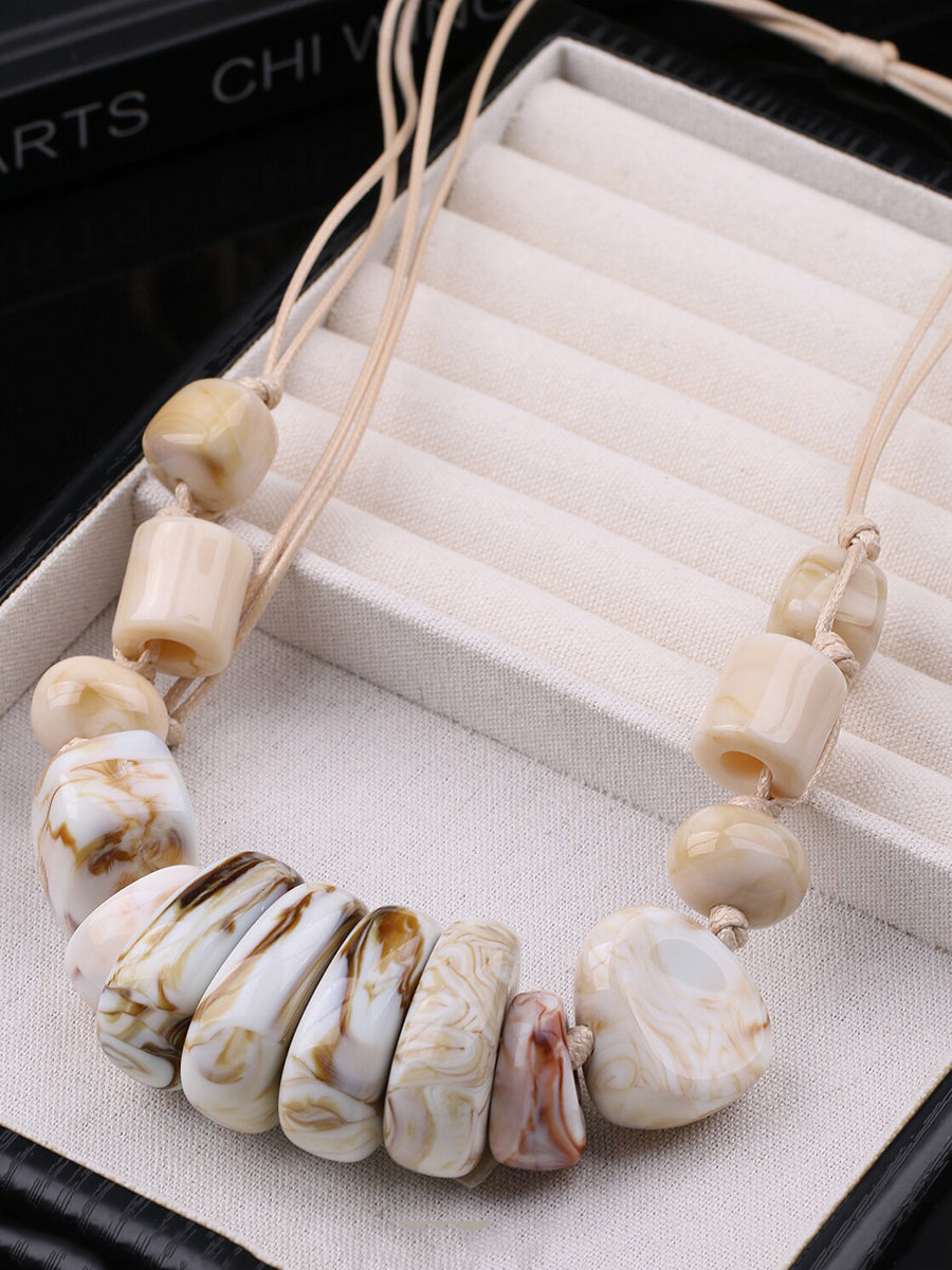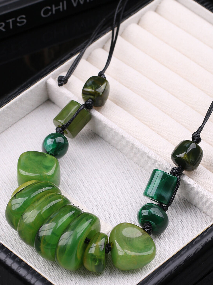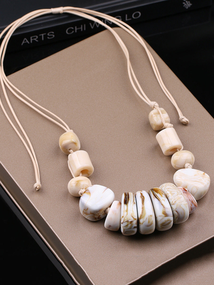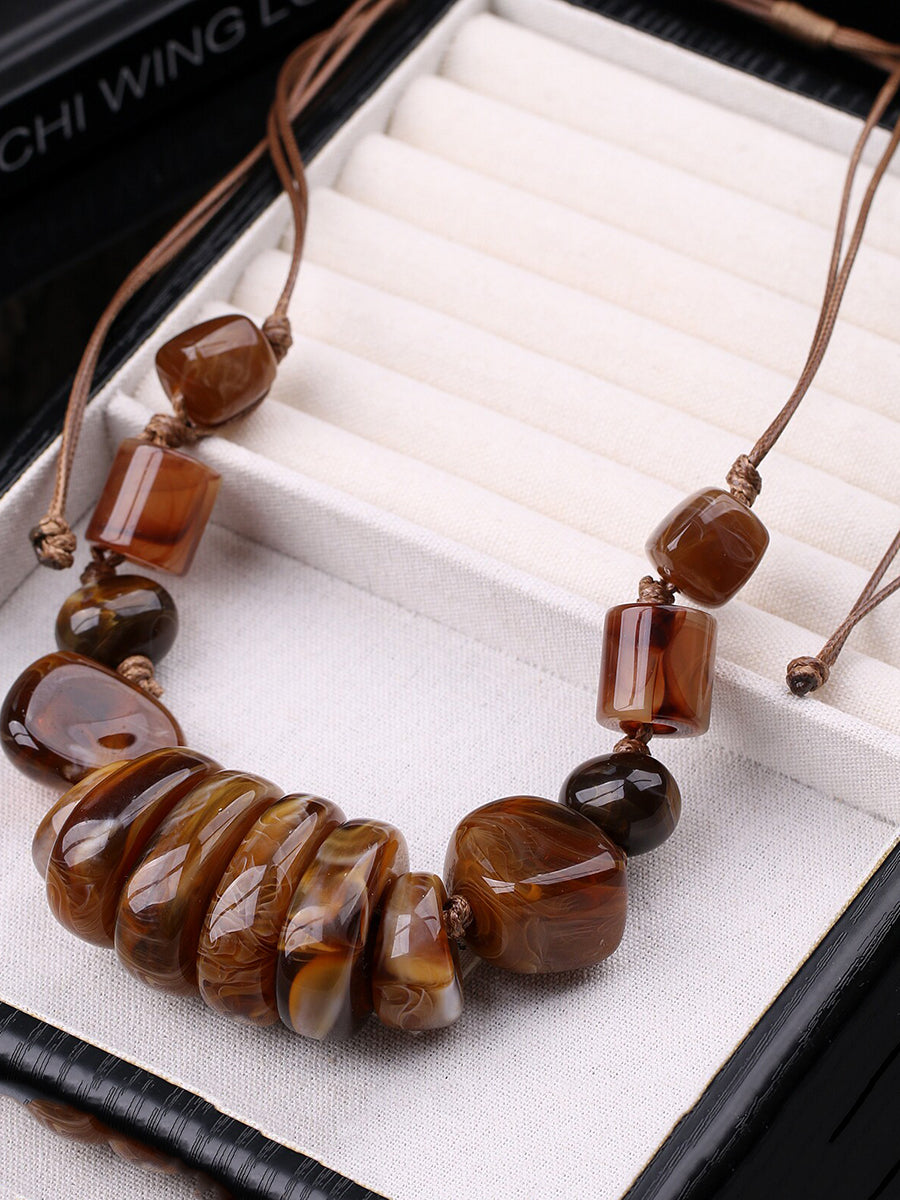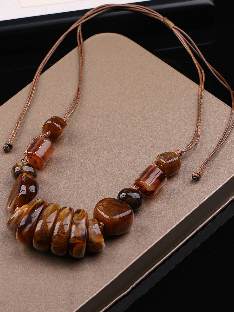 女士復古石紋編織吊墜項鍊