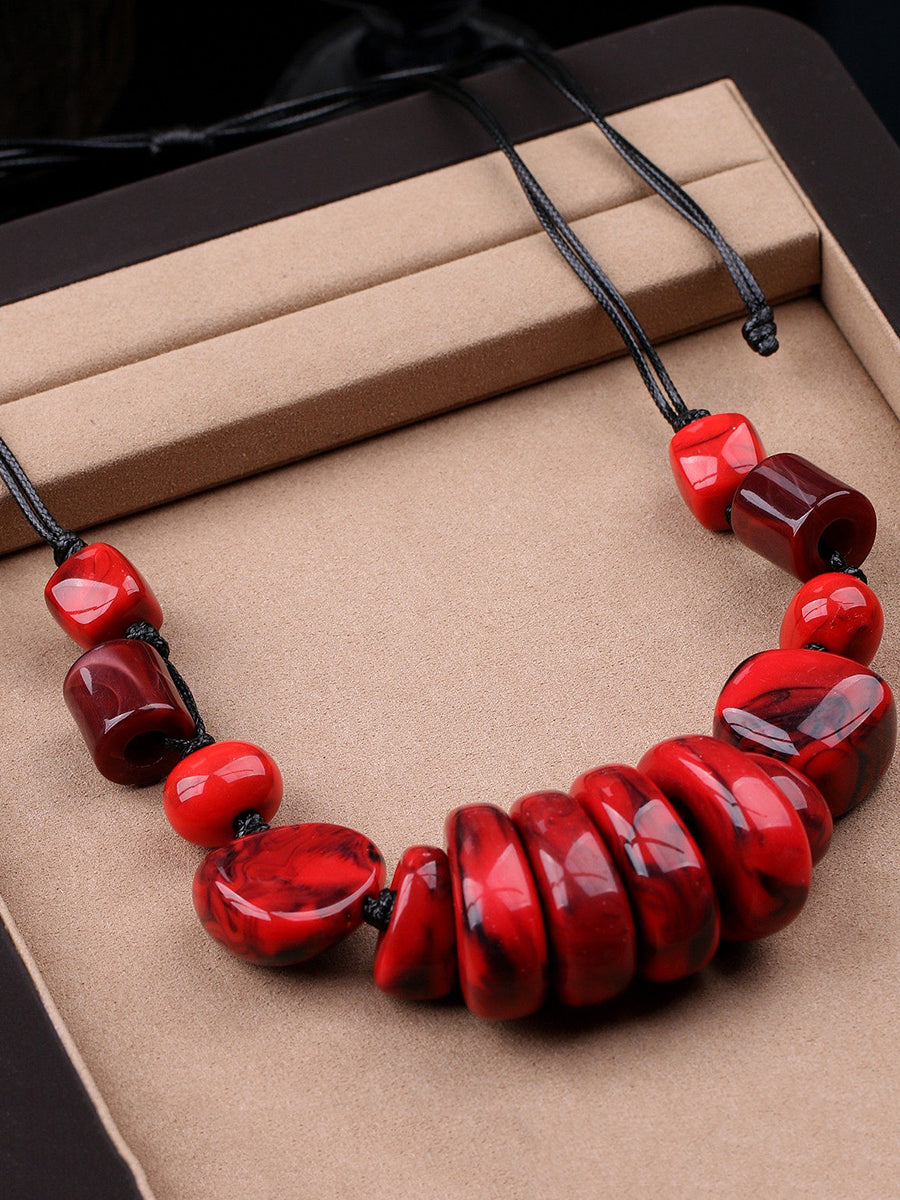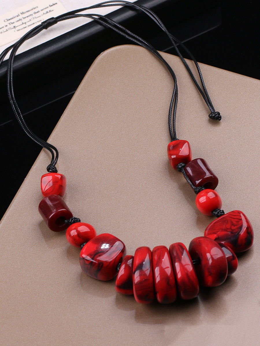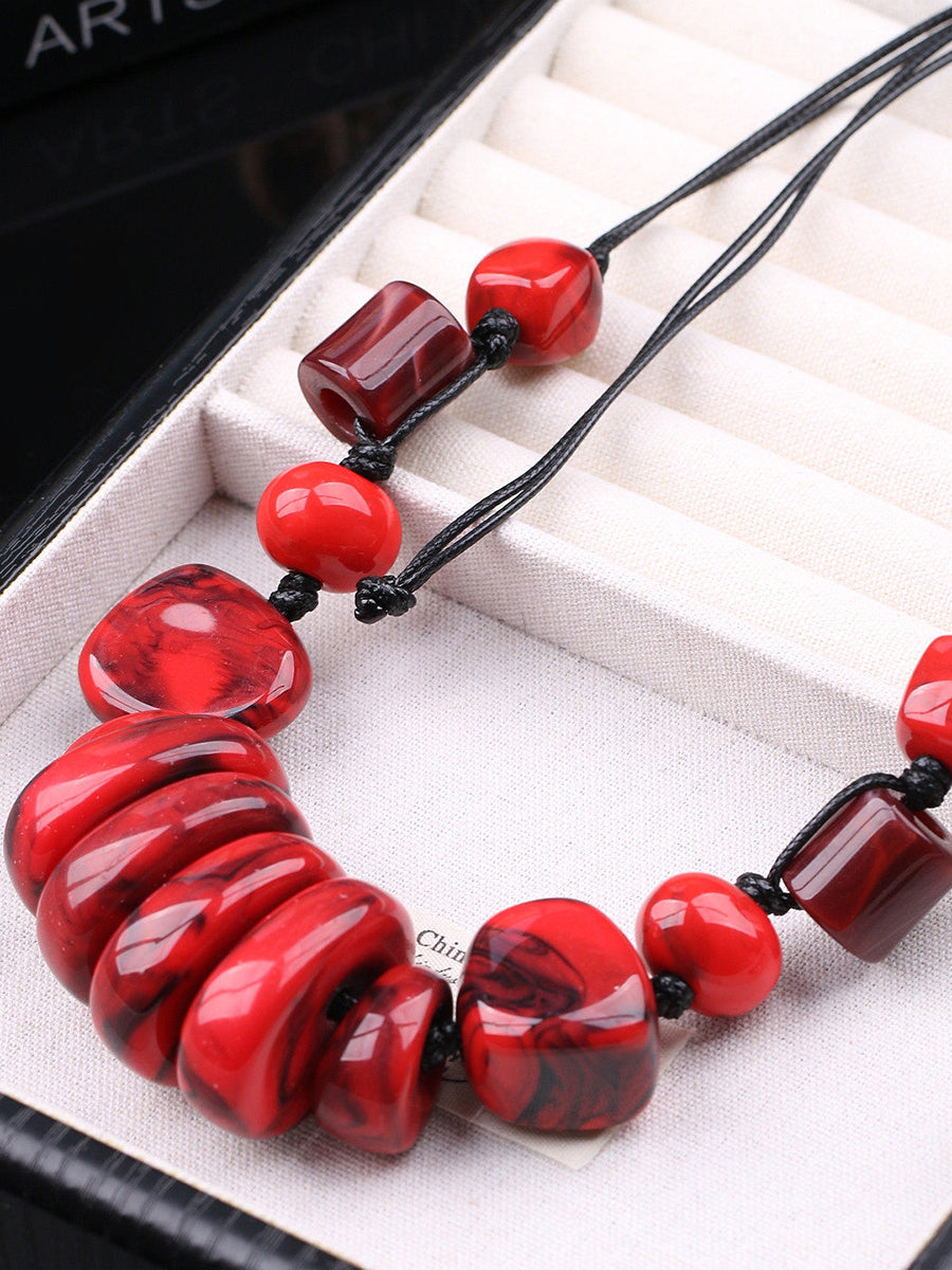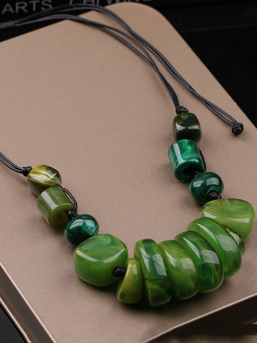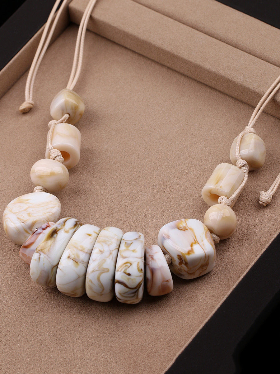 女士復古石紋編織吊墜項鍊