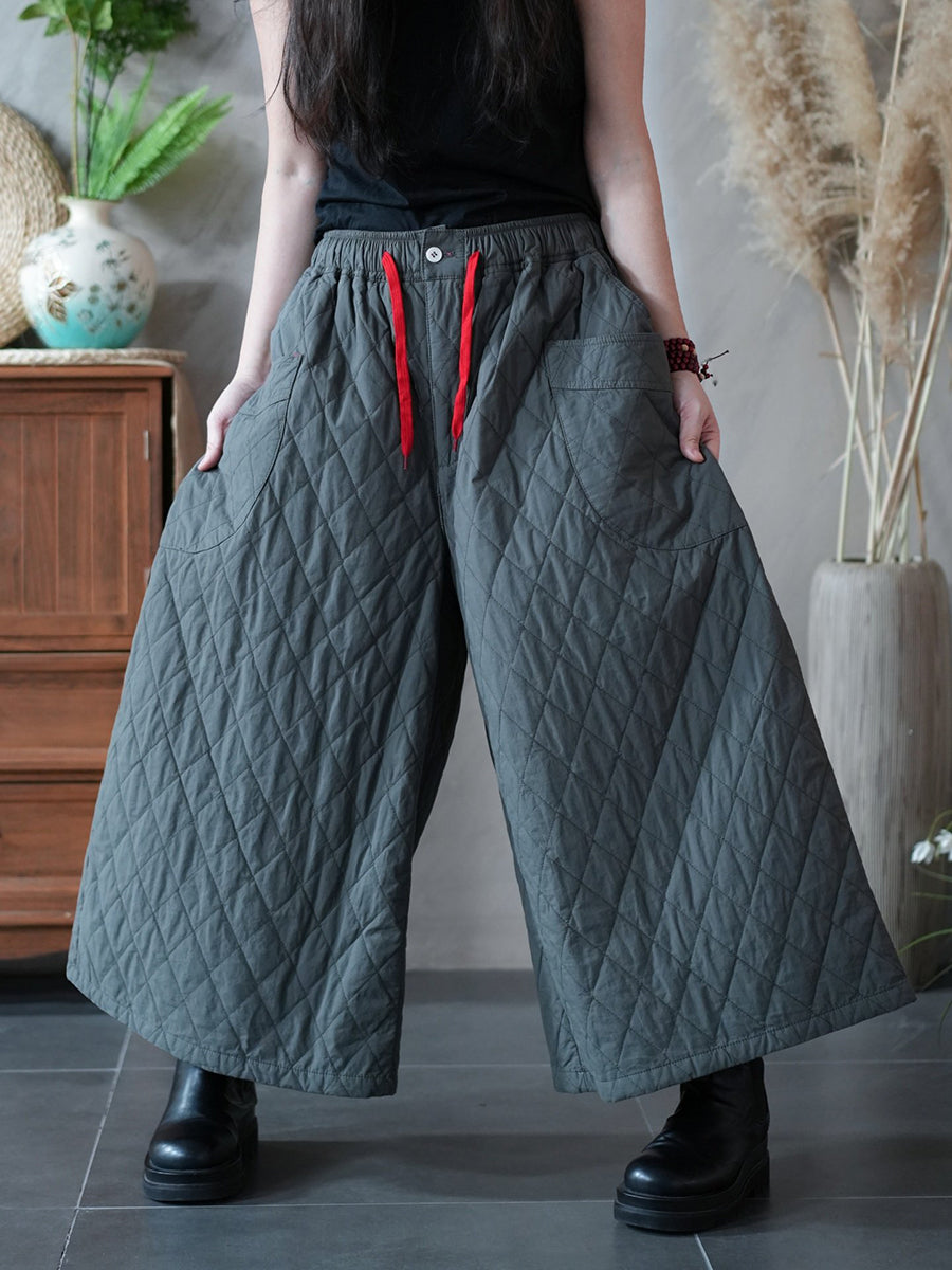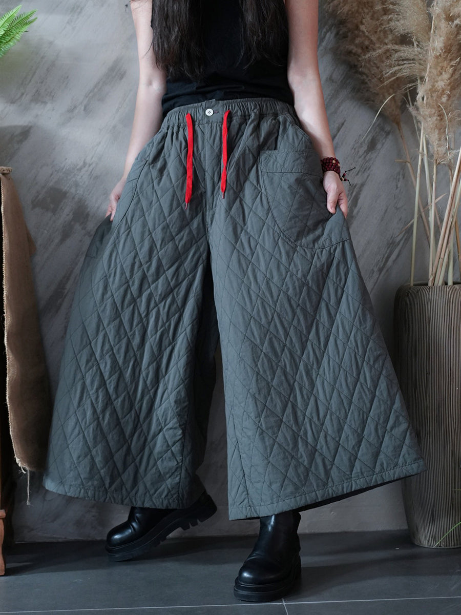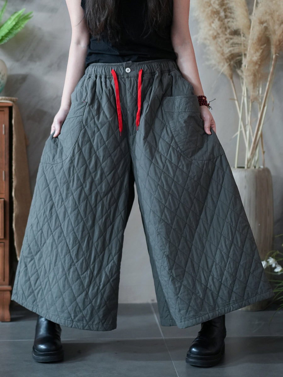 女士冬季藝術純色絎縫闊腿褲