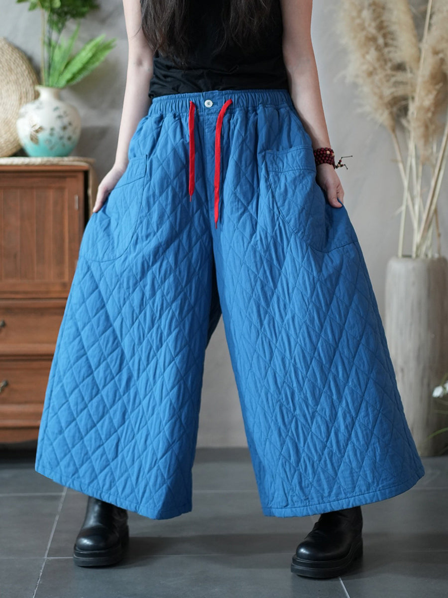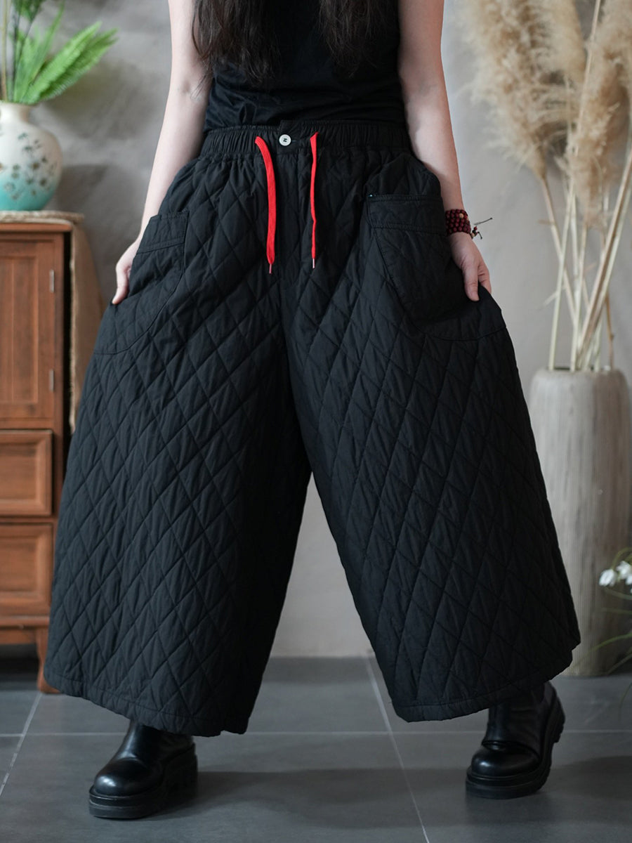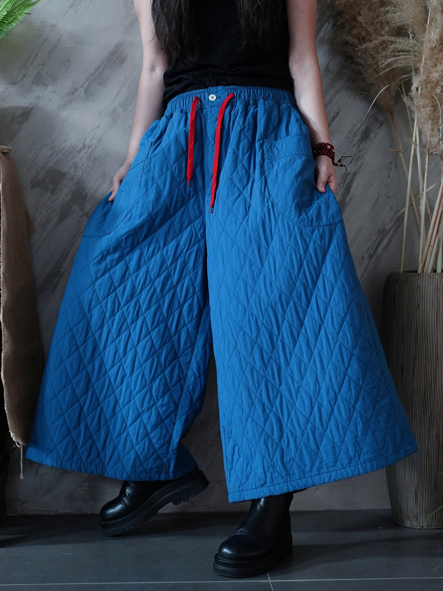 女士冬季藝術純色絎縫闊腿褲