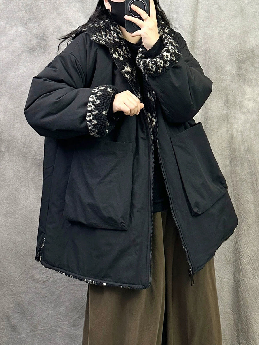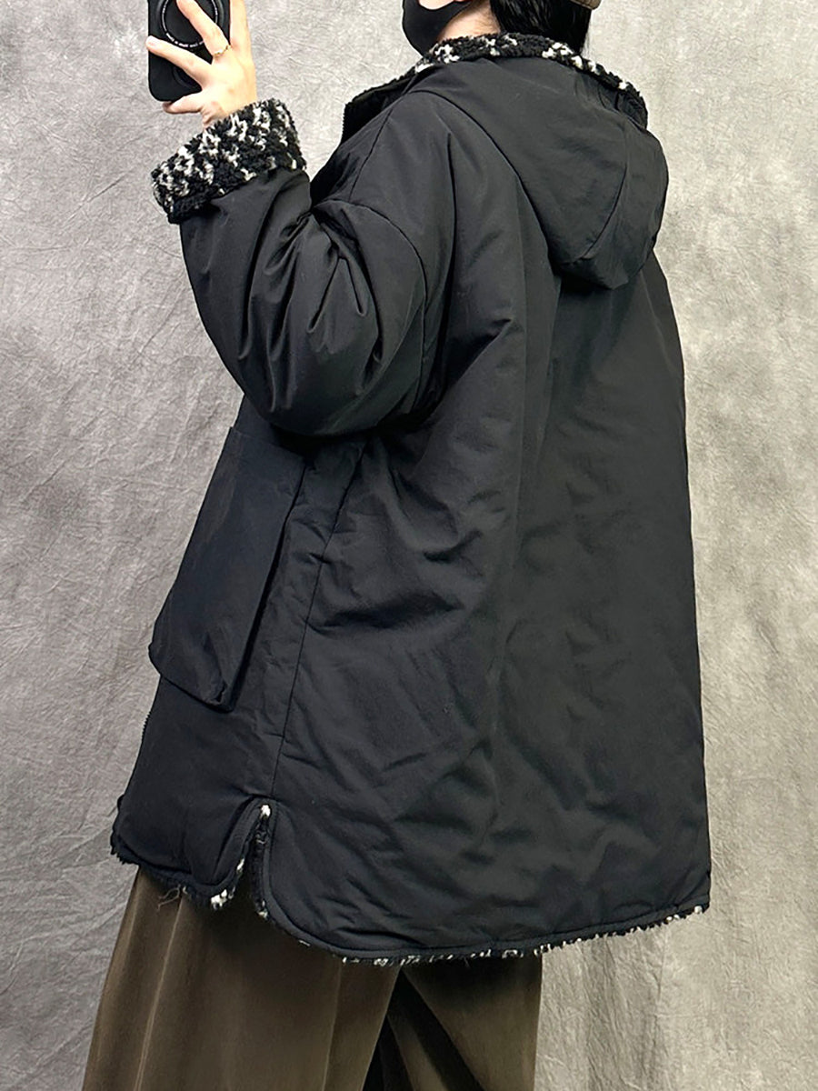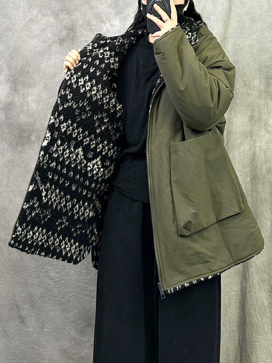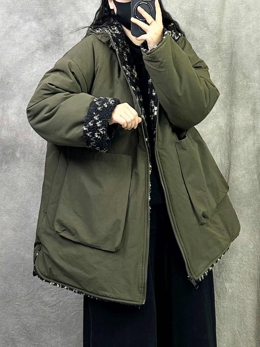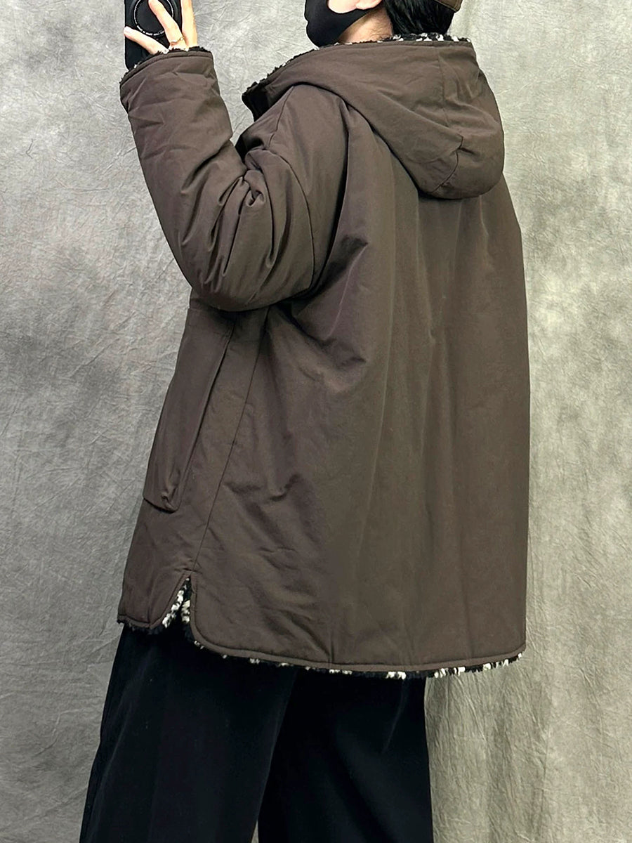 女士冬季休閒雙面穿抓絨連帽外套
