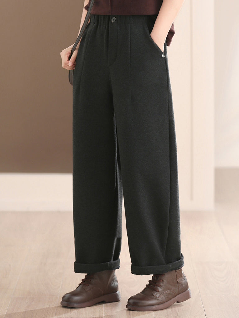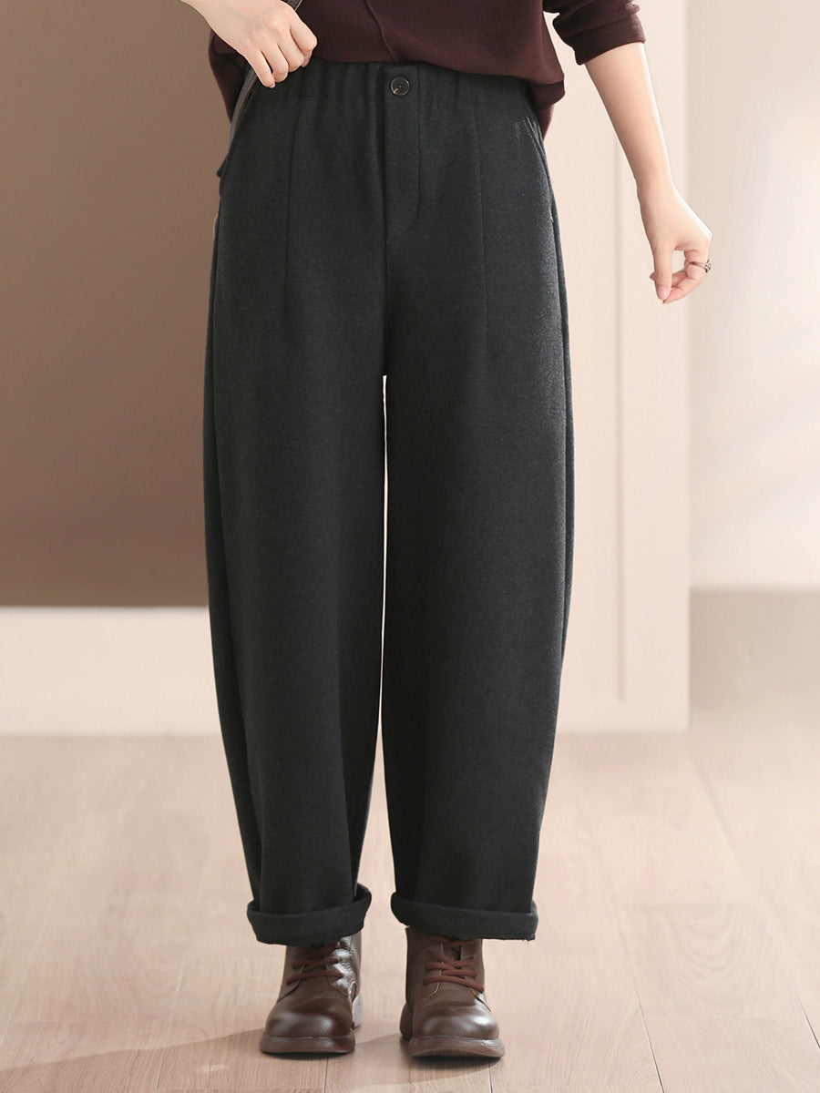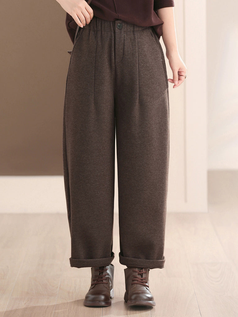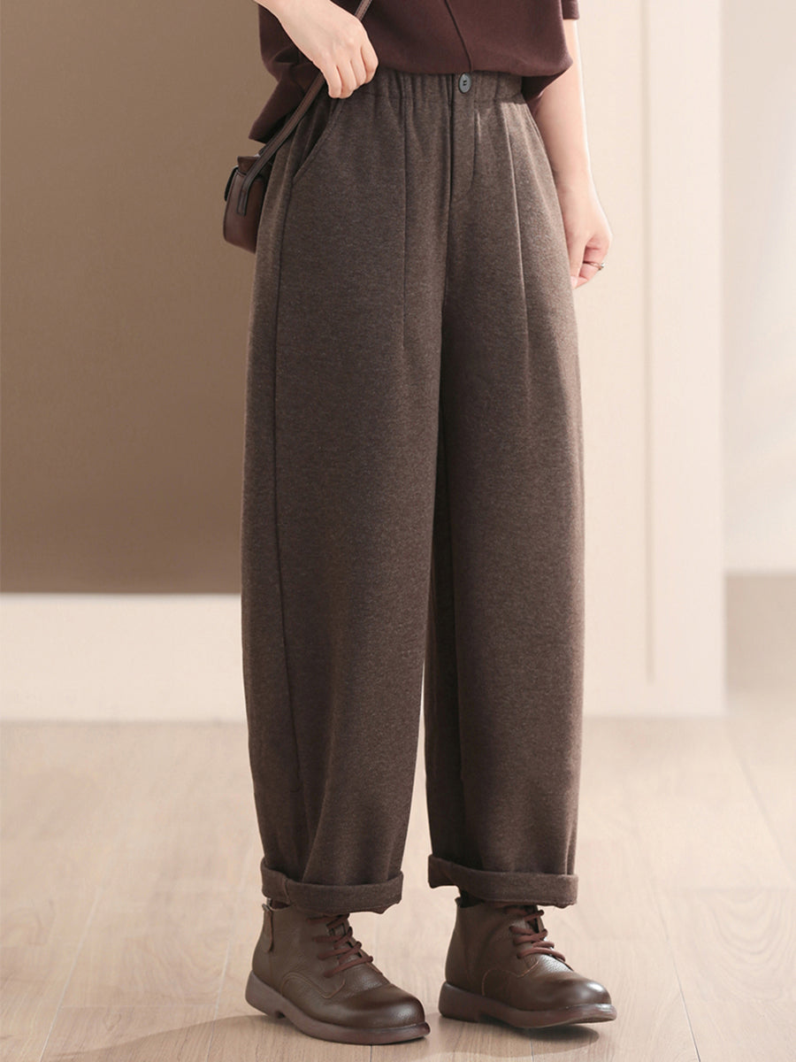 女士冬季休閒純色加絨哈倫褲