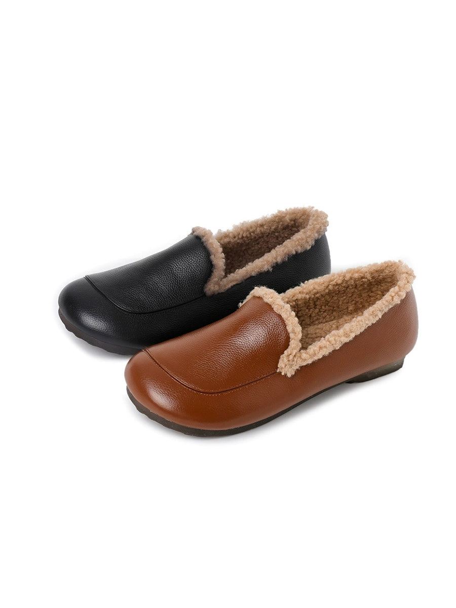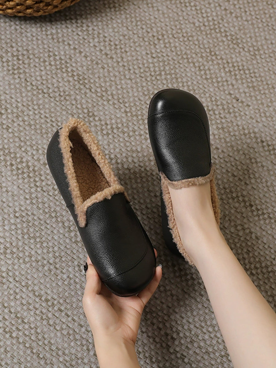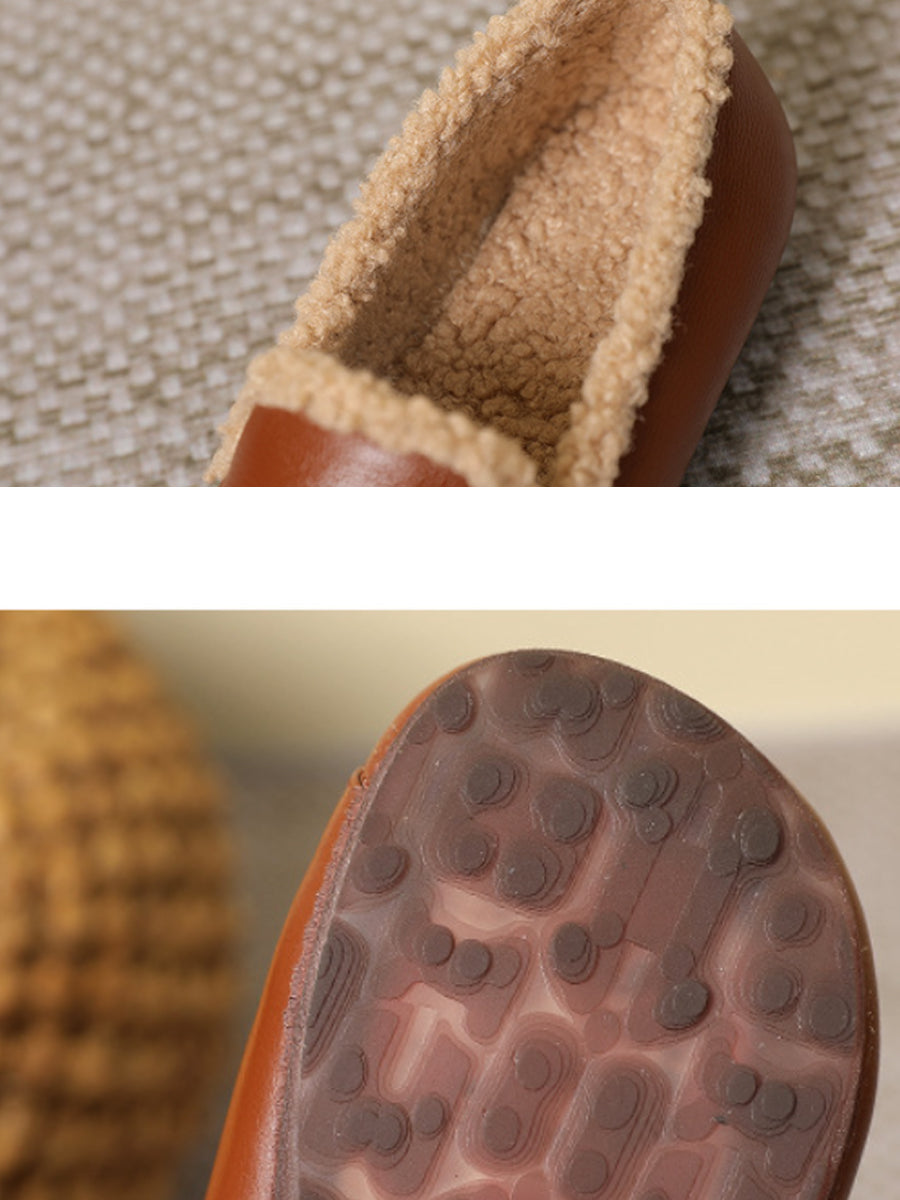 女士冬季真皮羊毛內襯低跟鞋