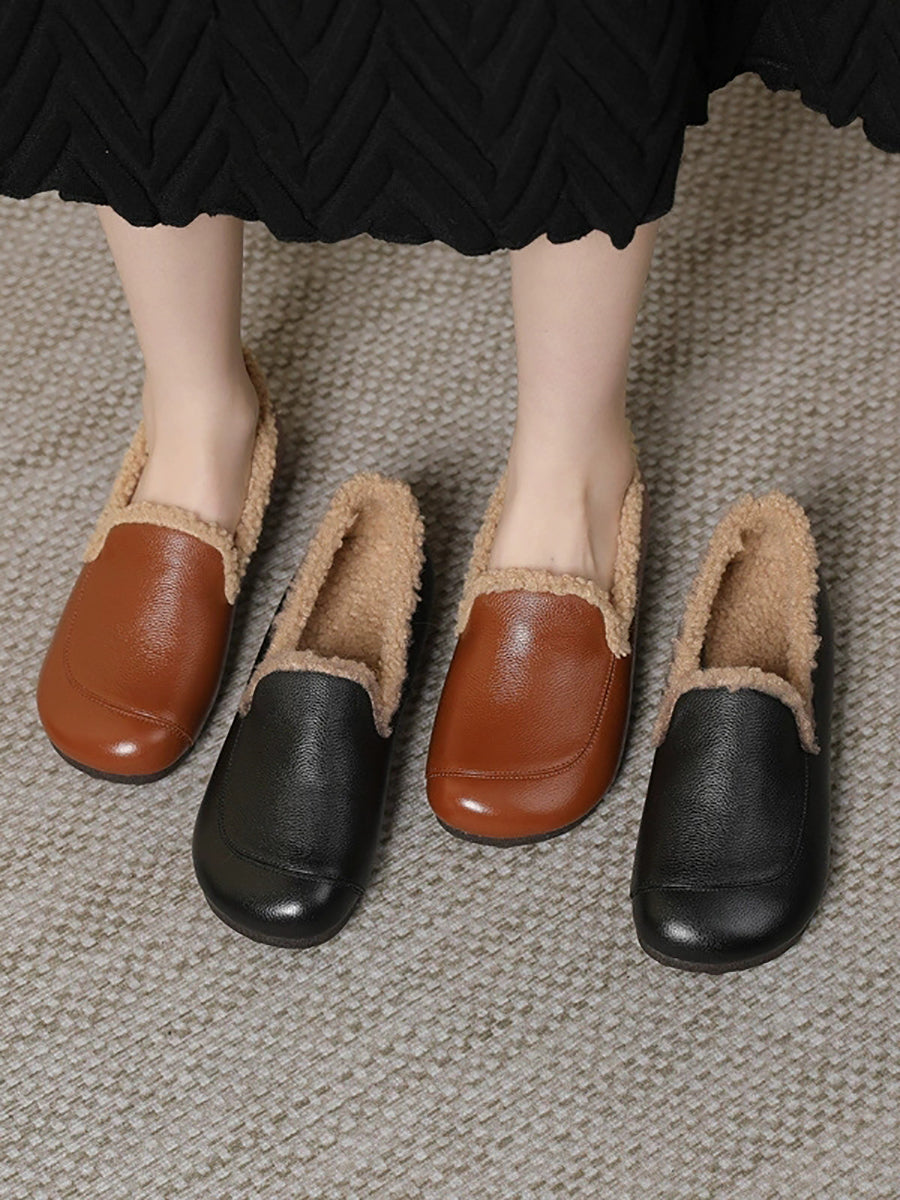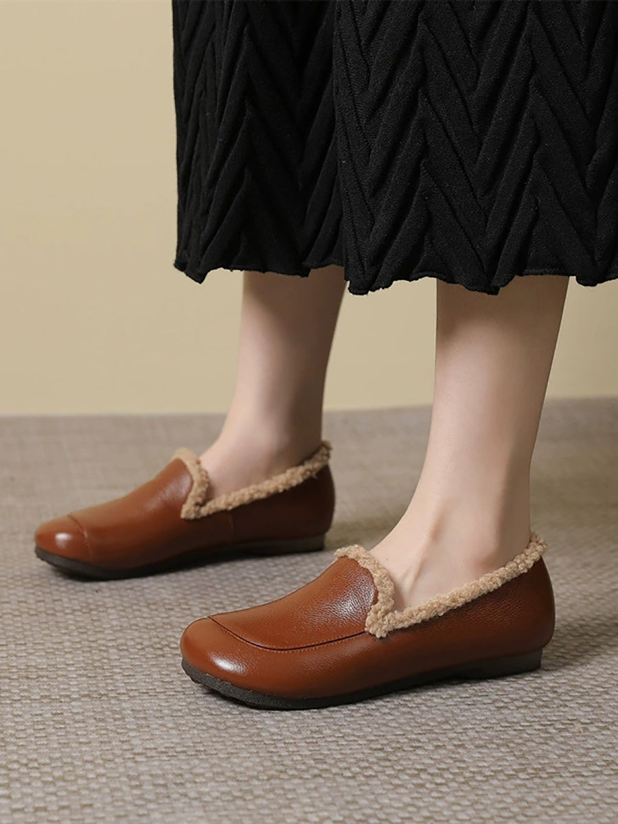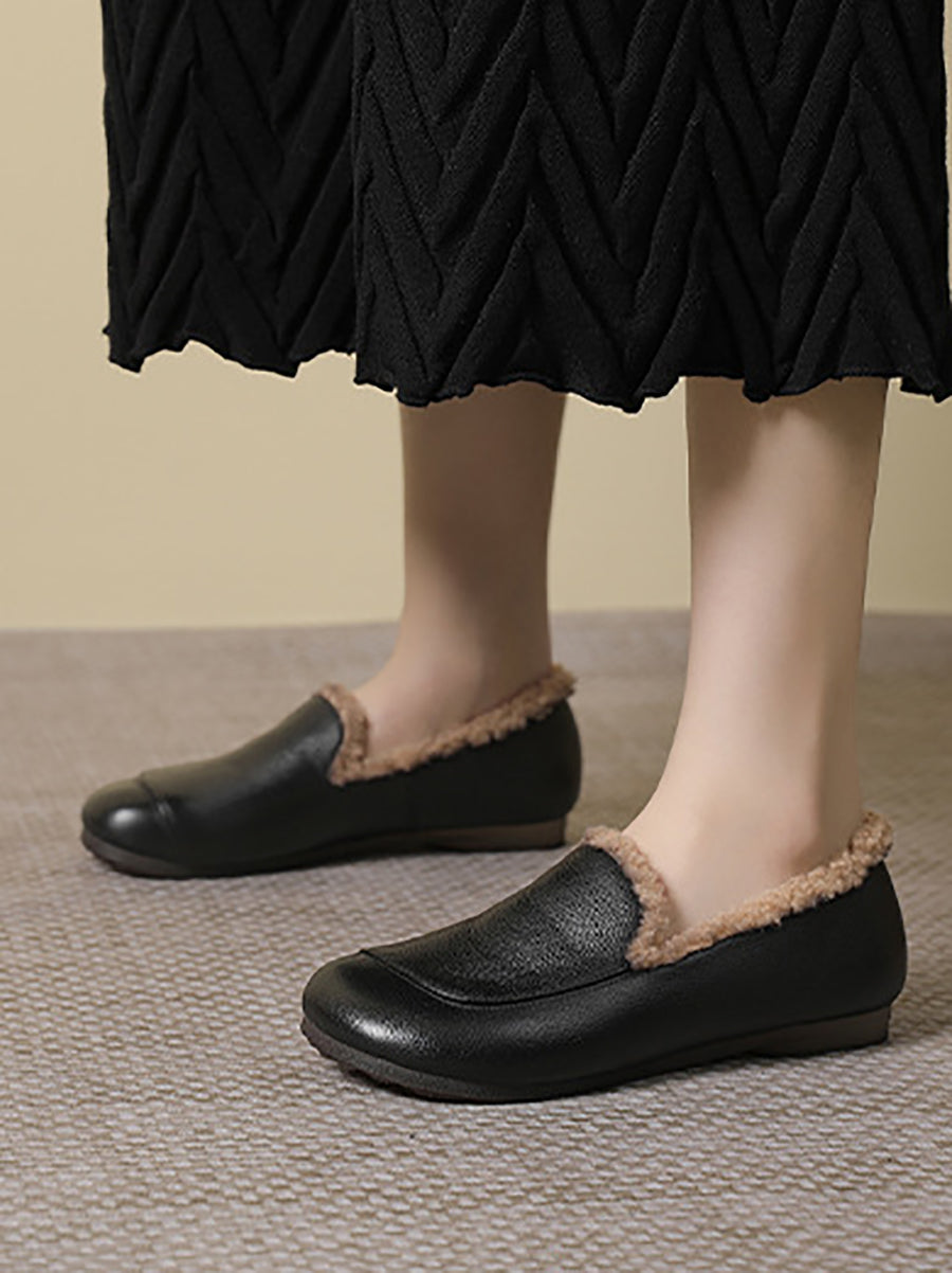 女士冬季真皮羊毛內襯低跟鞋