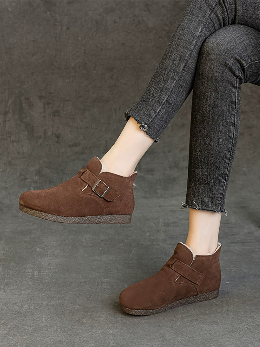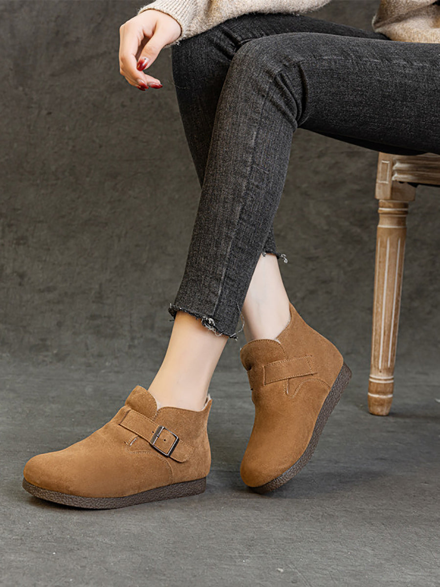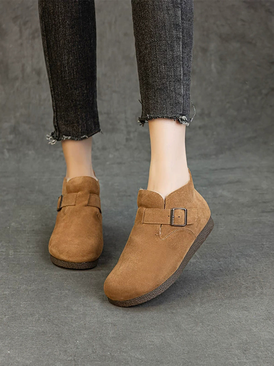 女士冬季真皮羊毛內襯鞋