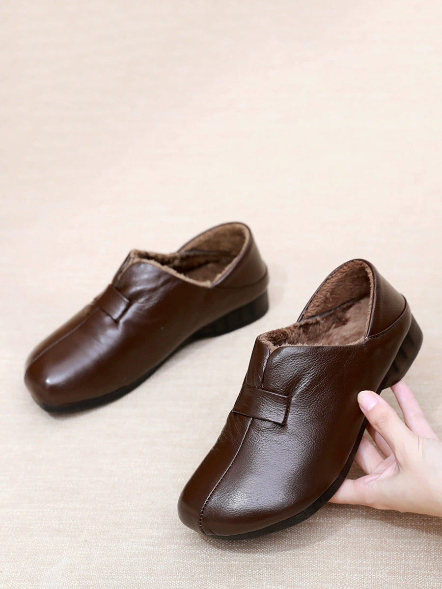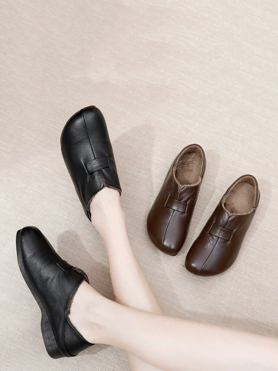 女士冬季真皮羊毛內襯鞋