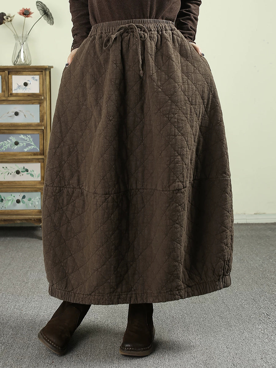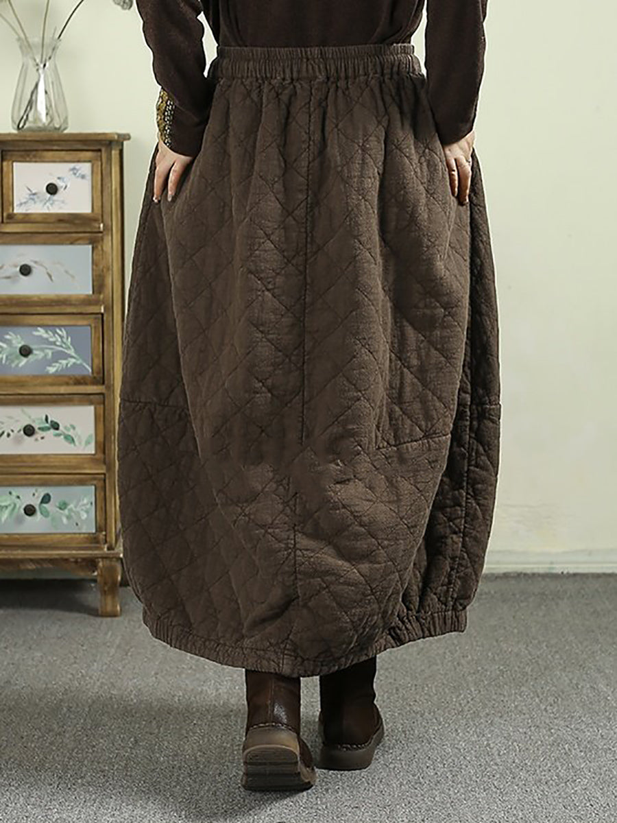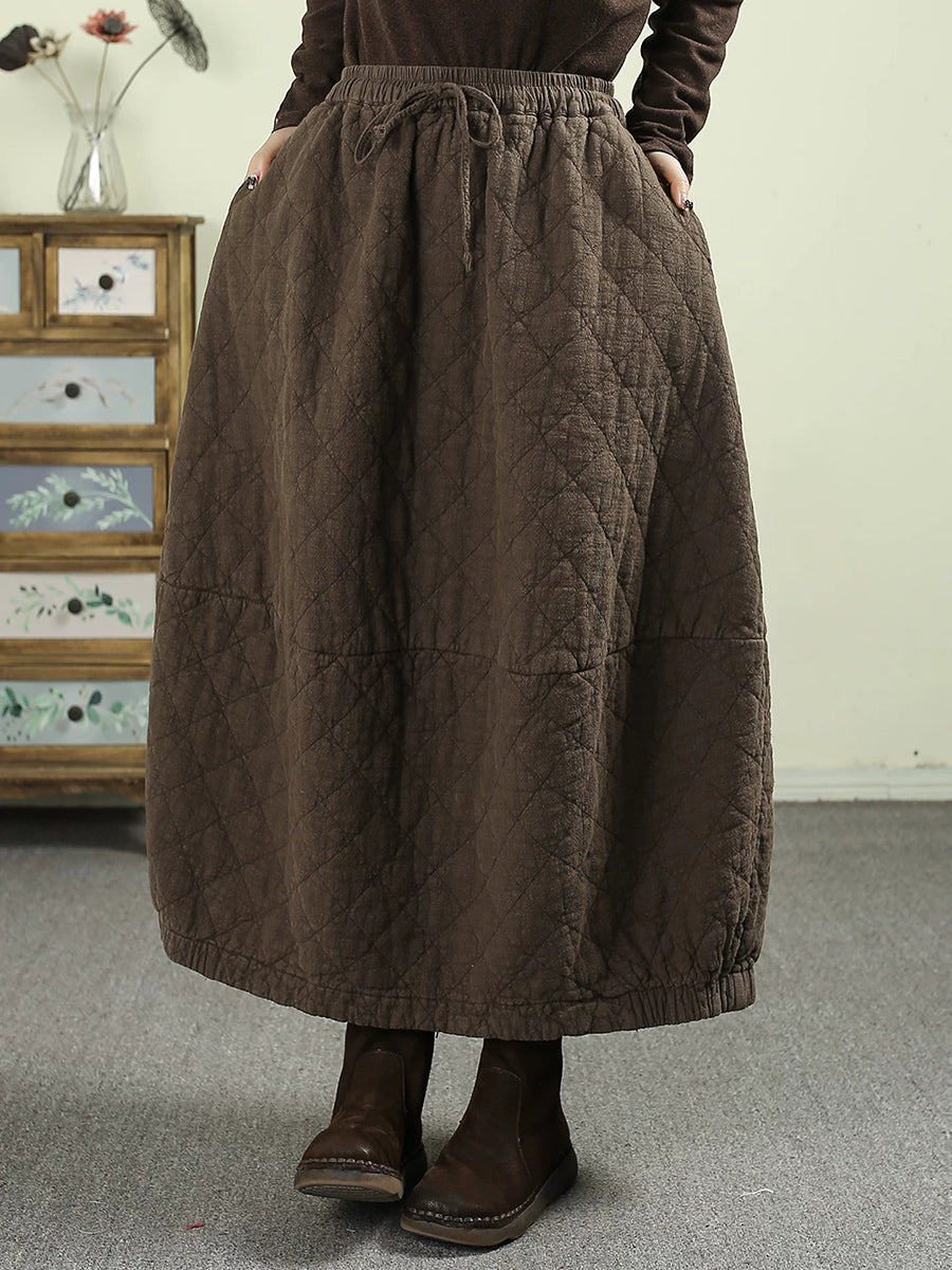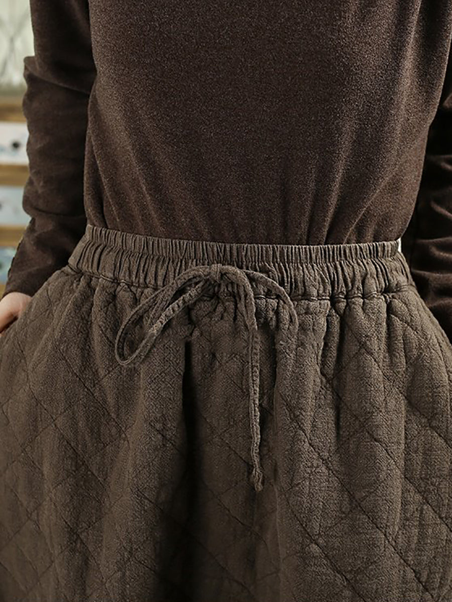 女士冬季純色100%亞麻絎縫裙