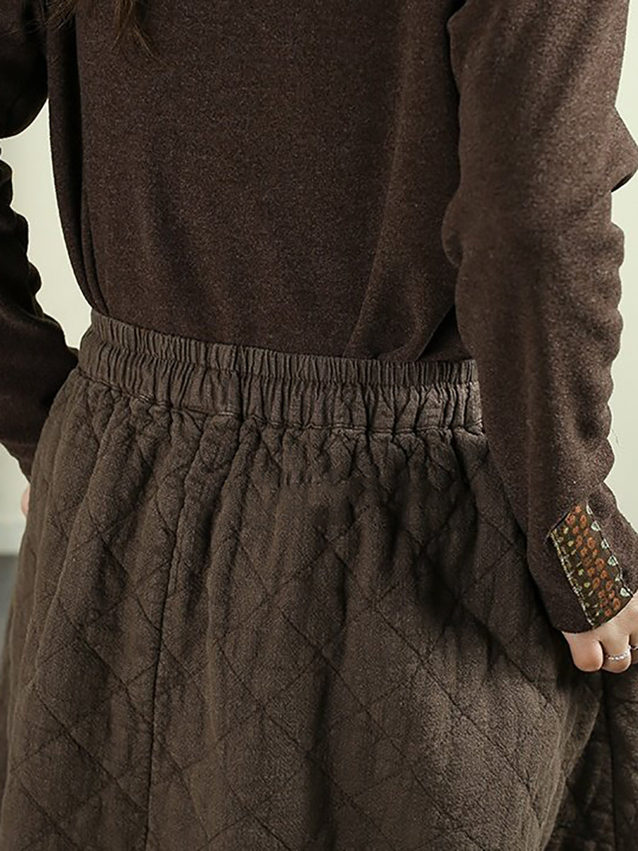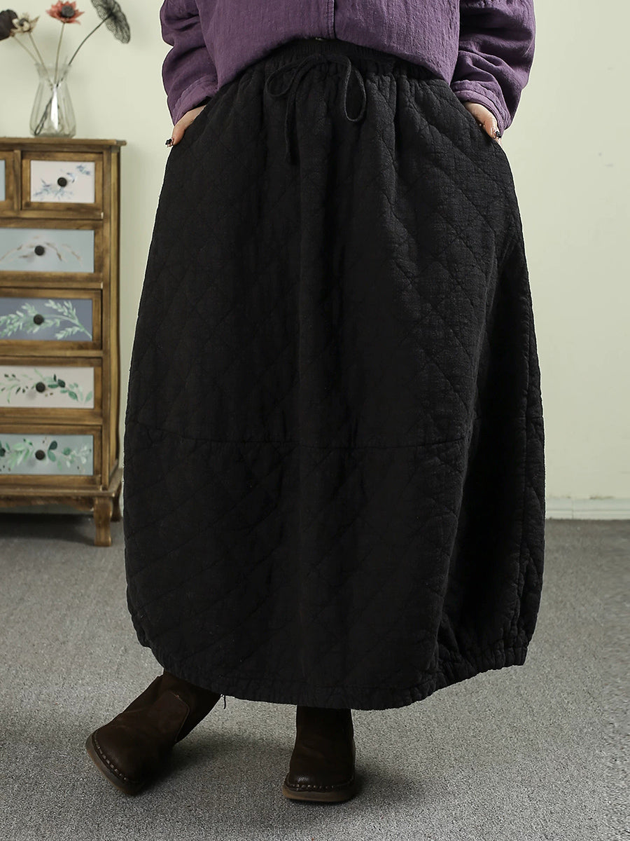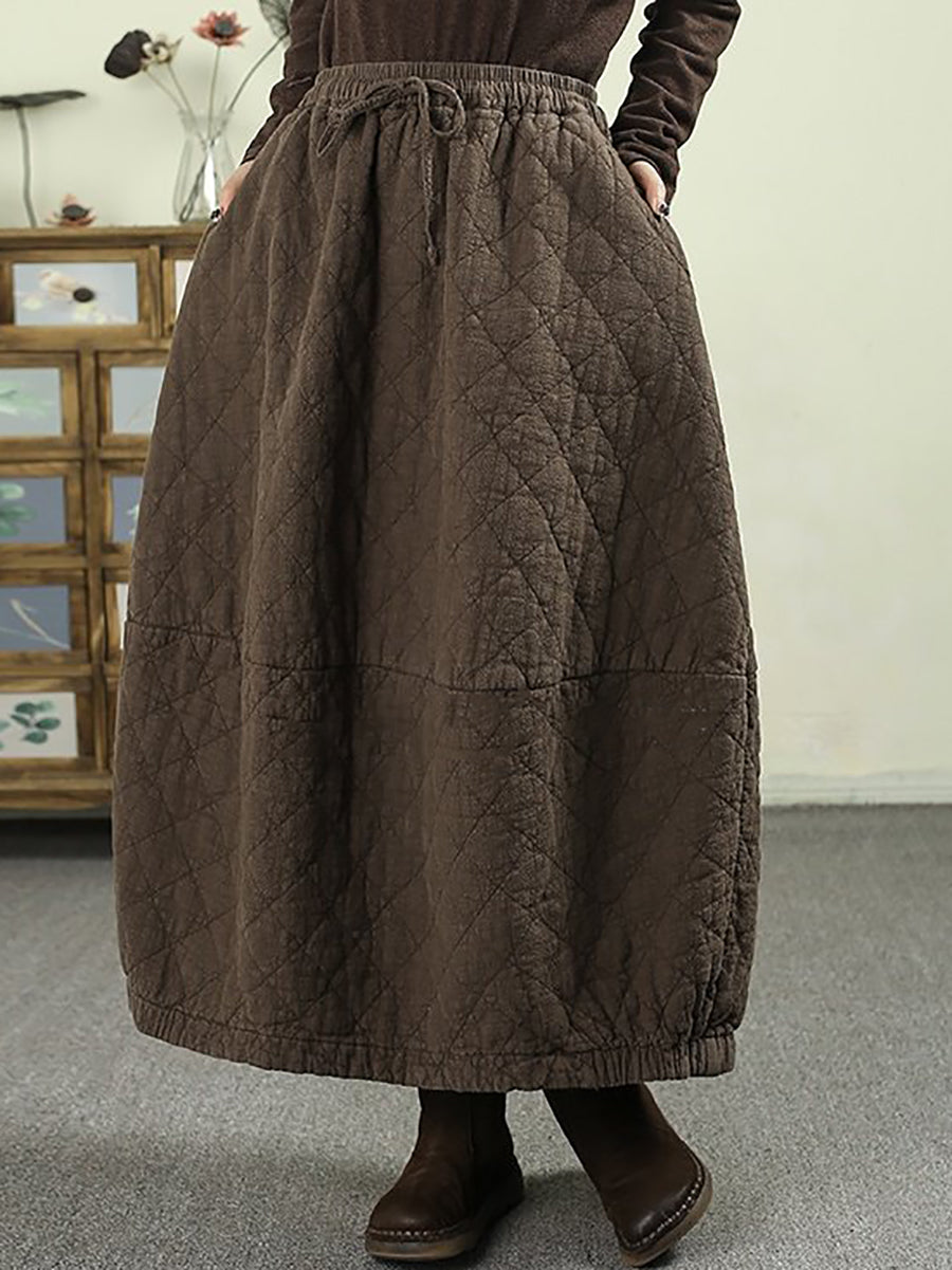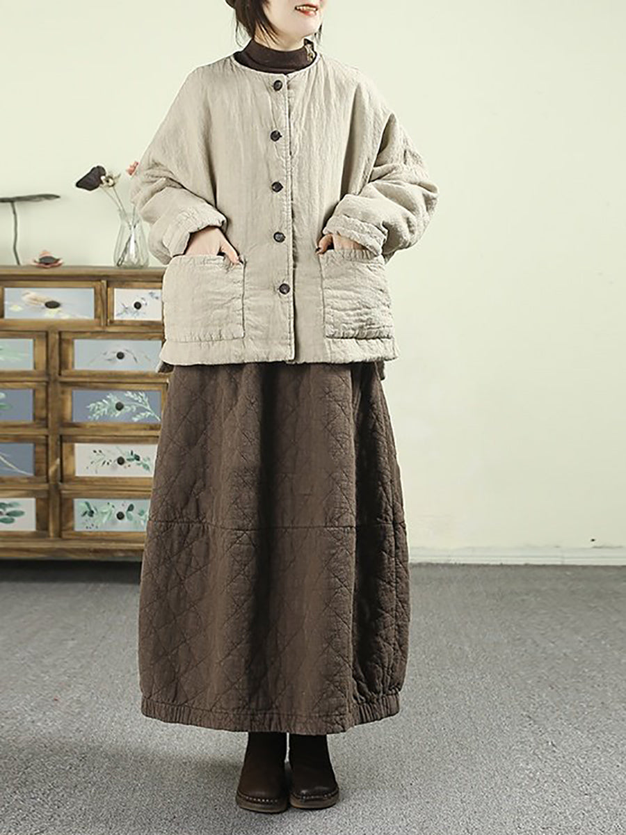 女士冬季純色100%亞麻絎縫裙