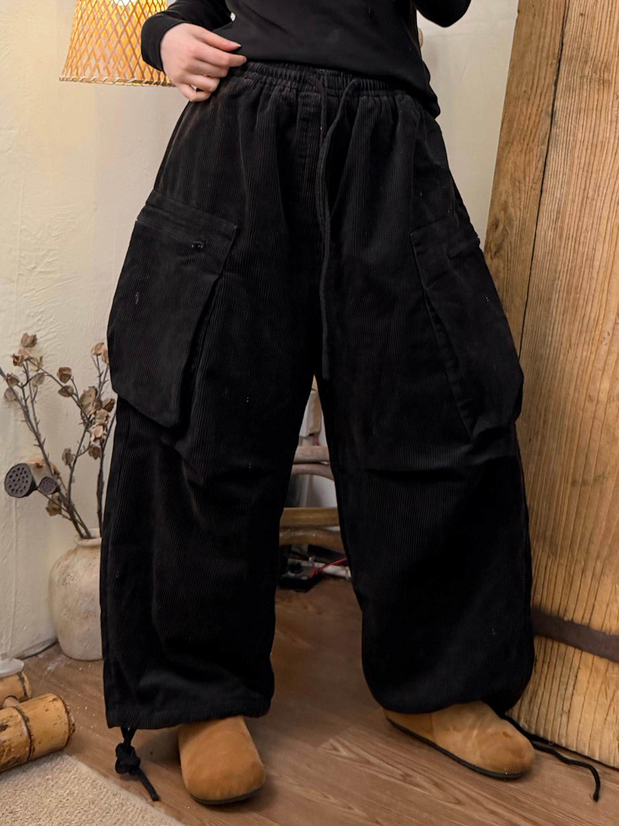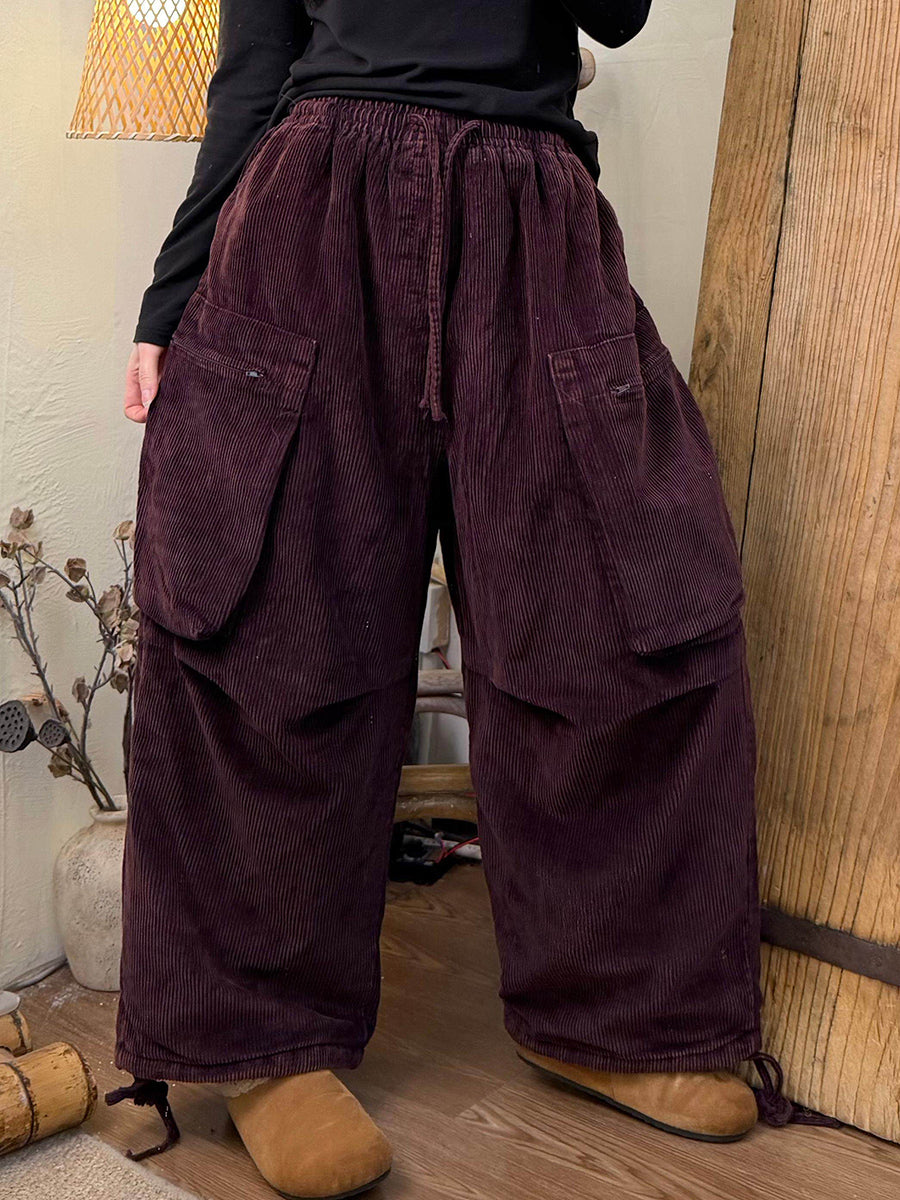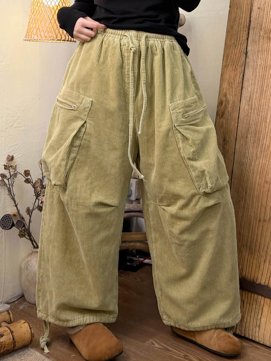 女士冬季復古純色燈芯絨闊腿褲